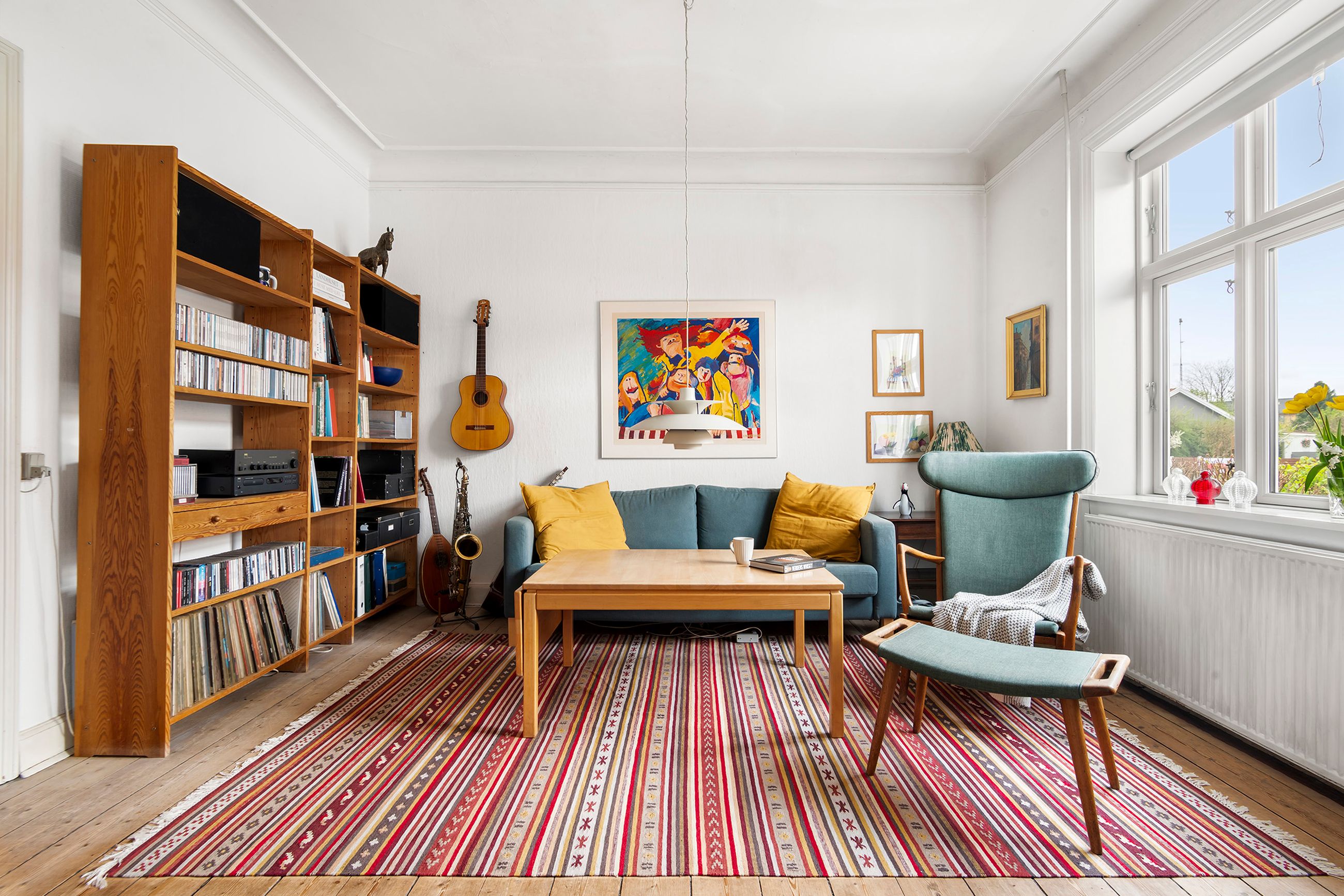 Huset hjerte er de to skønne stuer en suite. Stuerne har den helt rigtige stil med plankegulve, højt til loftet, stuklofter og rosetter. Stuerne har god plads og mange indretningsmuligheder og mulighed for spisestue og opholdsstue.