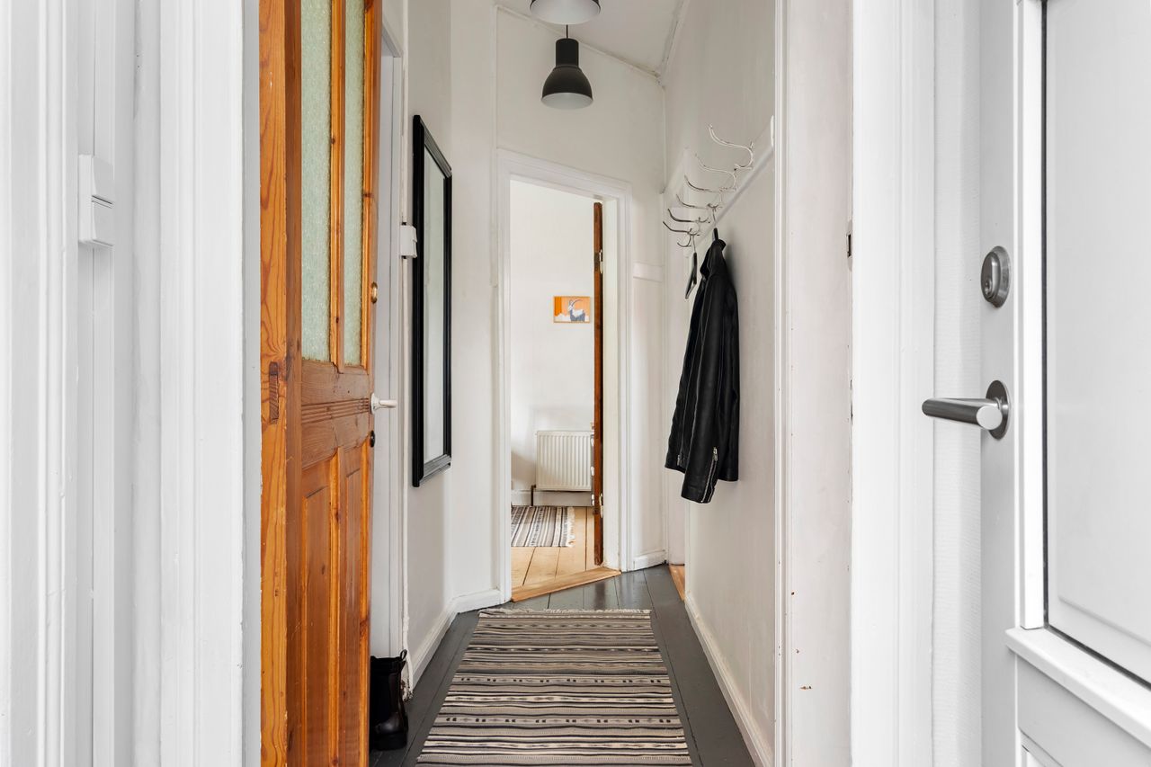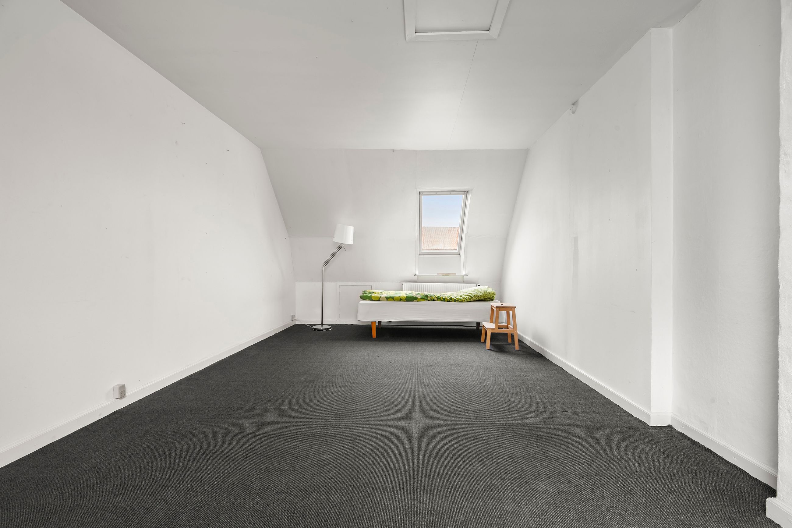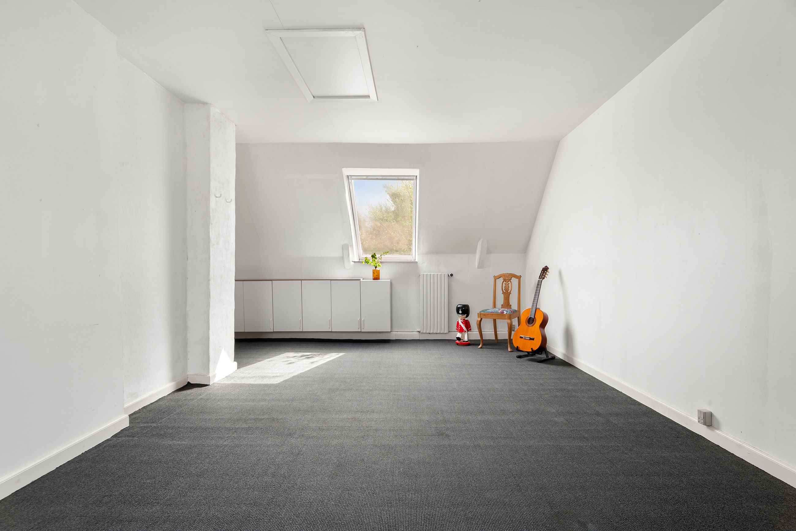 1. salen indeholder et pænt gæstetoilet samt to store værelser. Begge værelser har en god størrelse og kan efter behov opdeles, hvis man ønsker tre separate værelser.