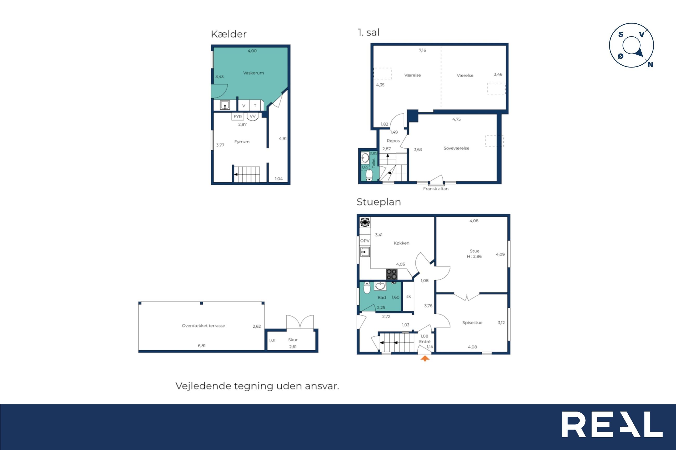 Underetagen rummer et godt disponibelt rum samt et vaskerum/bryggers med direkte udgang til haven – praktisk for både hverdagsbrug og som ekstra opbevaringsplads.