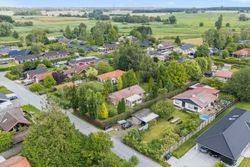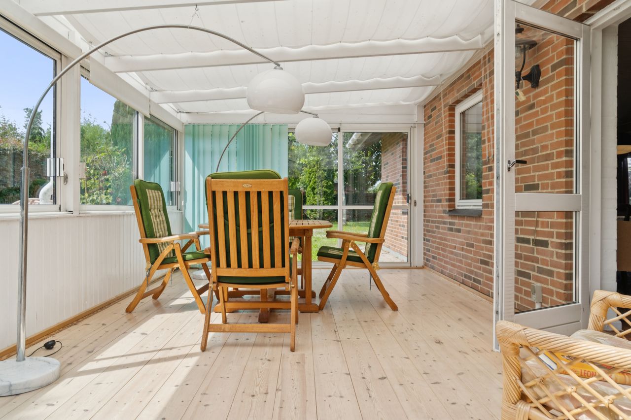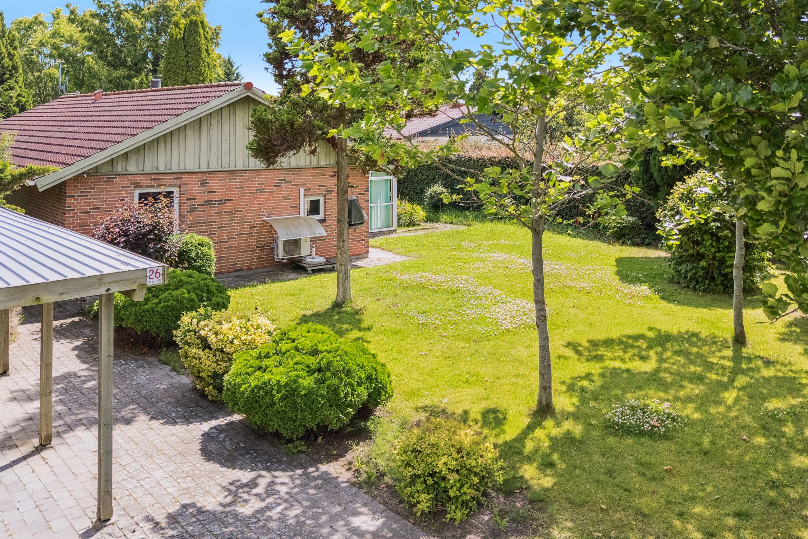 Boligen er opført i 1996 og er løbende blevet vedligeholdt. Huset er opført i rød/brune sten med betontagsten. Du får 103 velindrettede kvadratmeter, hvor hver en kvadratmeter er udnyttet. Til boligen hører en god carport med plads til bilen samt indbygget udhus. Læg hertil et stort anneks i bunden af haven, hvor familien langt fra kan overnatte samt et stort værksted. Herudover får du en skøn og overkommelig have med sti hele vejen rundt om boligen. Haven er sydvest vendt, så du kan nyde de skønne danske sommeraftener med hele familien på terrassen.
