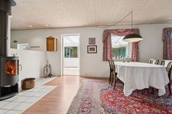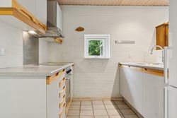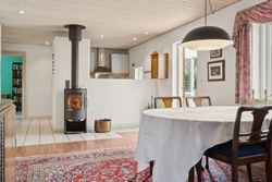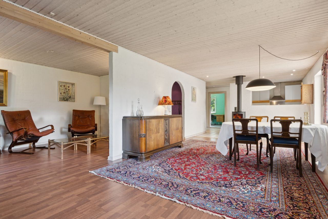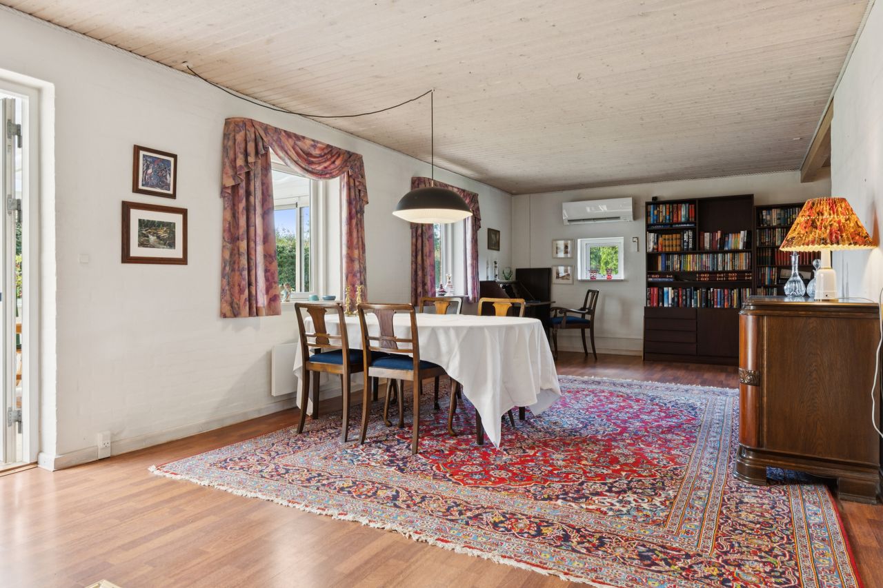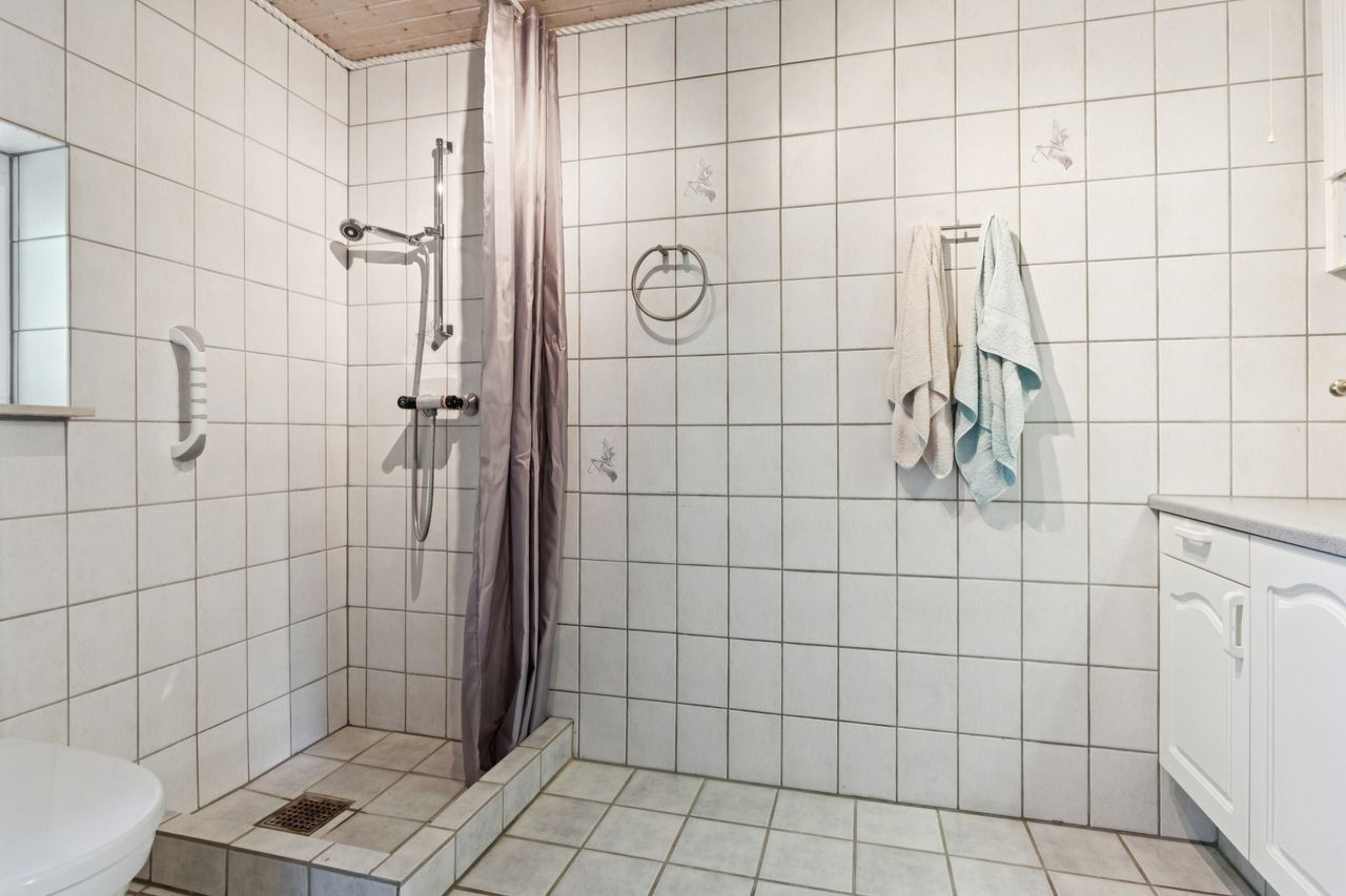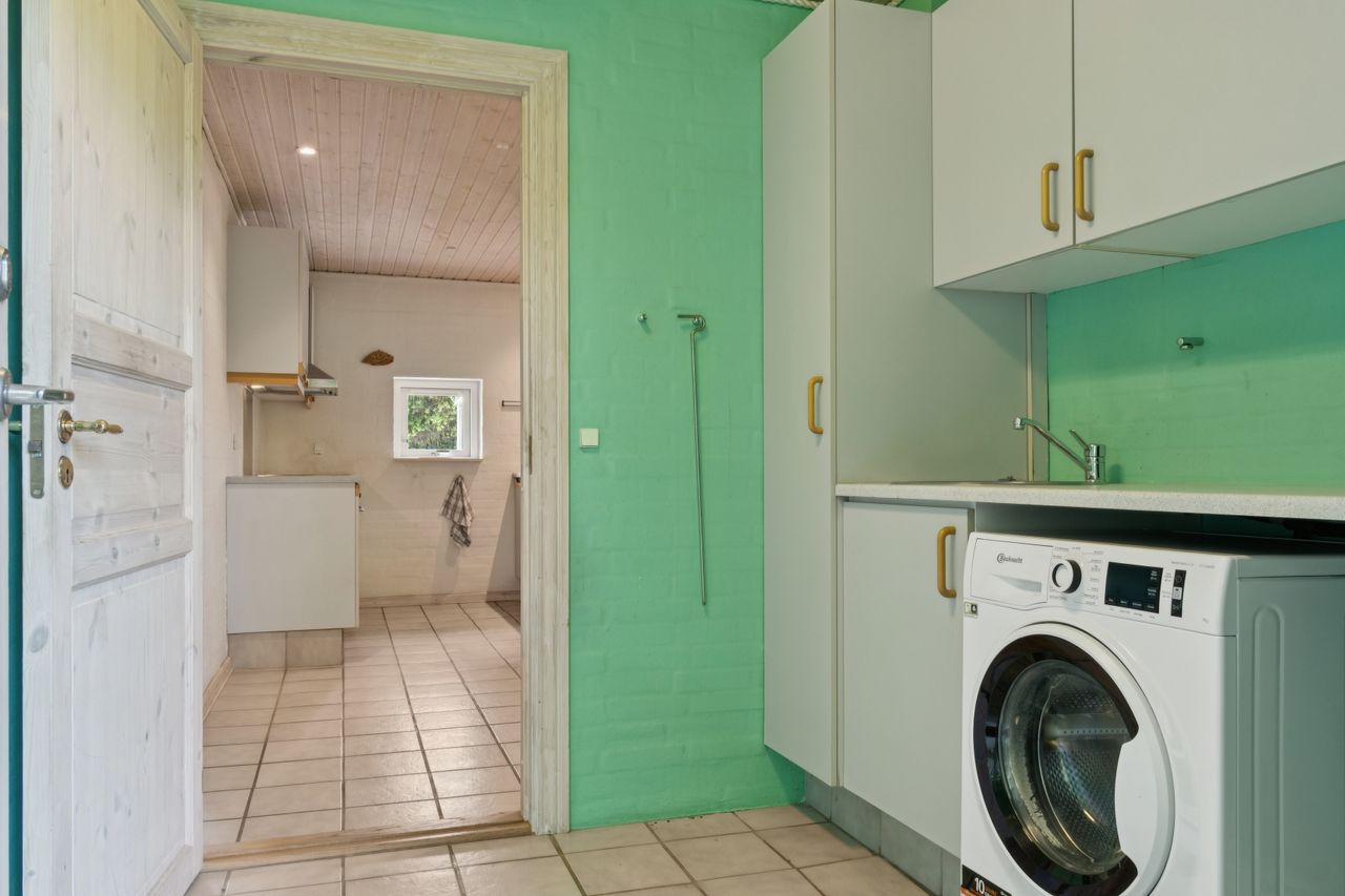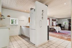 Man bydes velkommen i en entré, hvorfra der er adgang til badeværelse med brus i pæne neutrale klinker. Fra entréen har du adgang til det store køkken/alrum, hvor hele familien kan samles rundt om spisebordet. Fra stuen har du adgang til udestuen, som ligger sydvest. I stuen kan der yderligere let etableres et soveværelse, hvis man ønsker dette. Køkkenet er lyst og pænt med greb i træfarver og god opbevaringsplads. Læg hertil et praktisk bryggers med vaskefaciliteter og hverdagsindgangen samt et kæmpe soveværelse, som nemt kan opdeles i to, så der er mulighed for 3 soveværelser i alt.