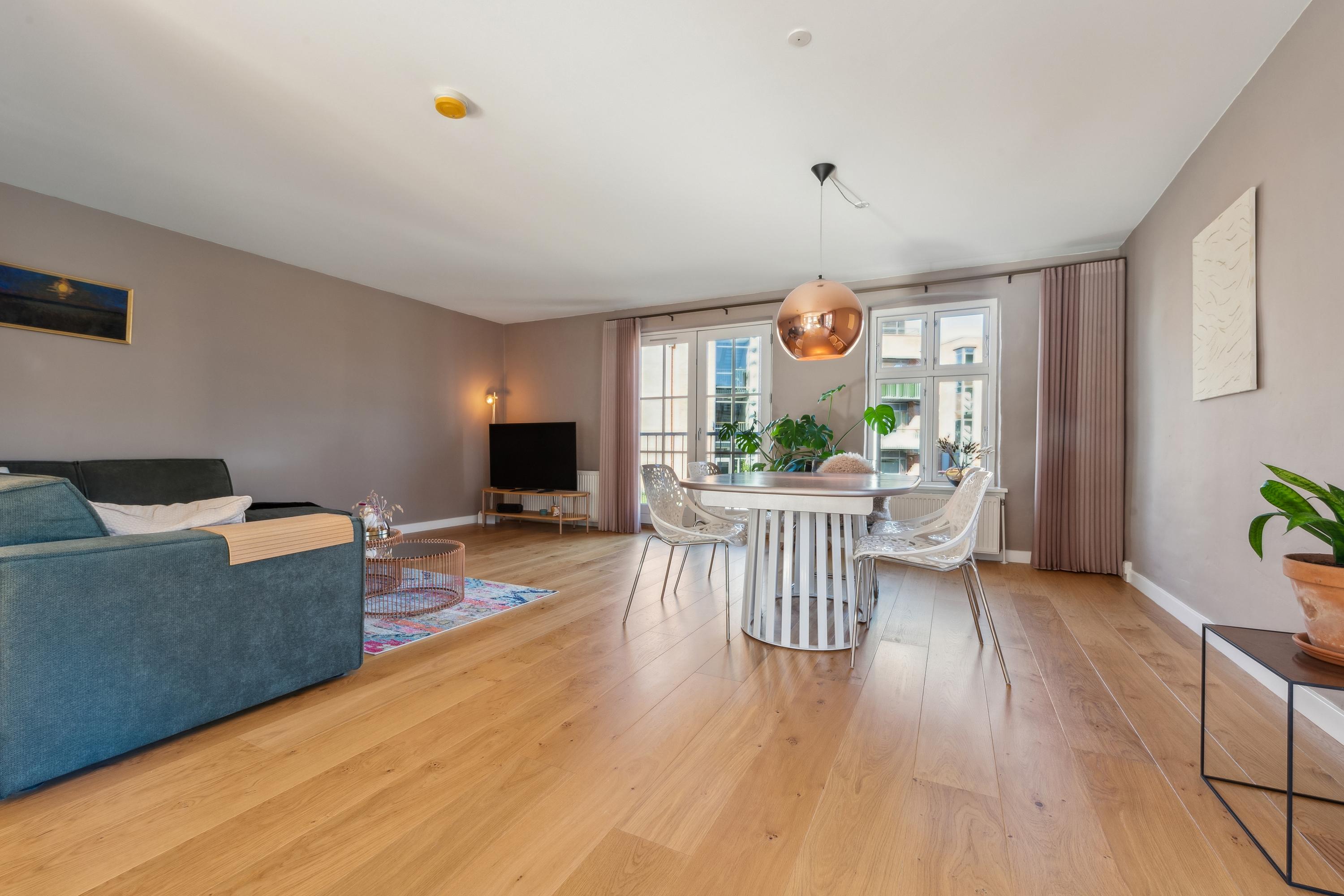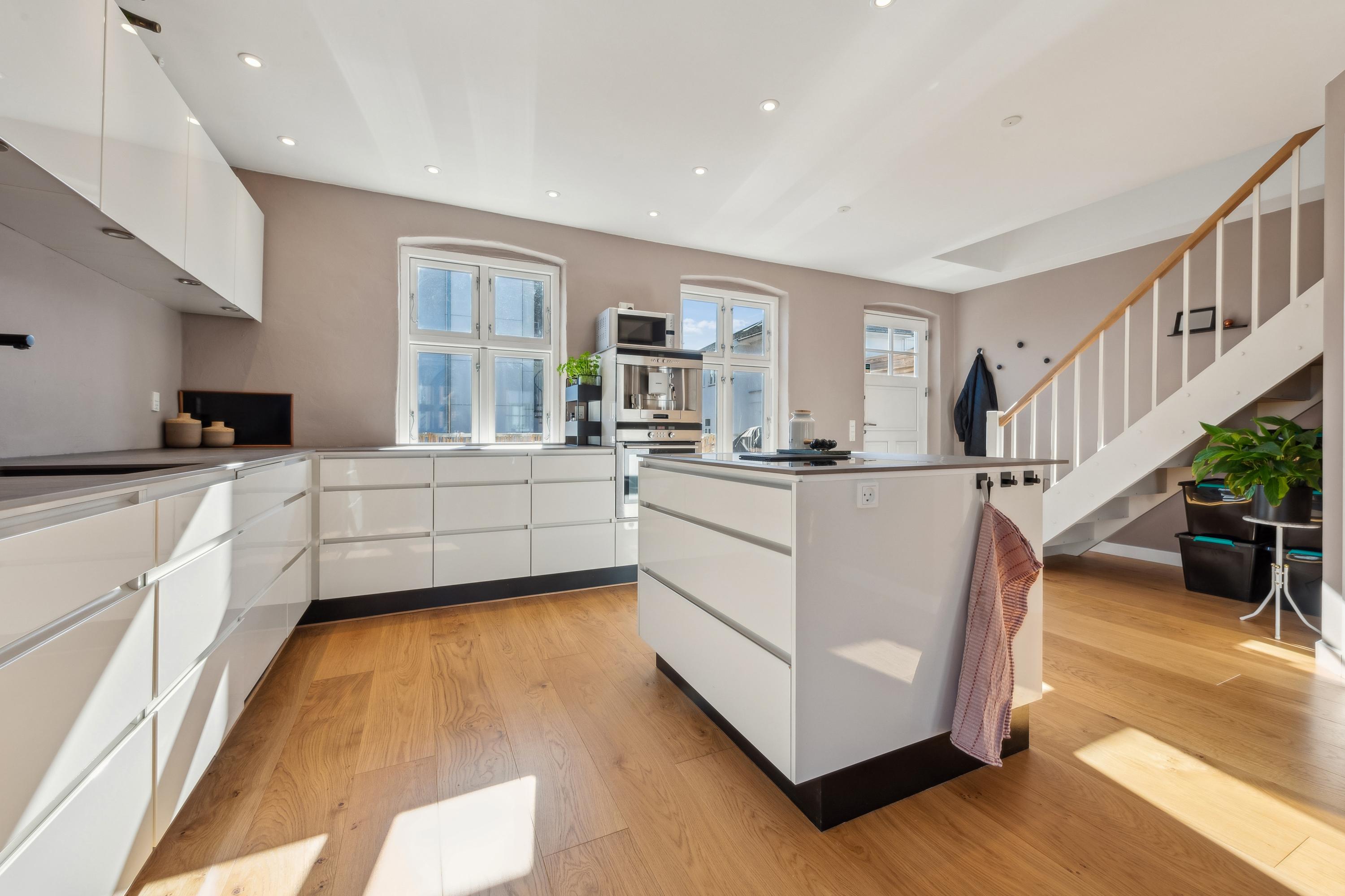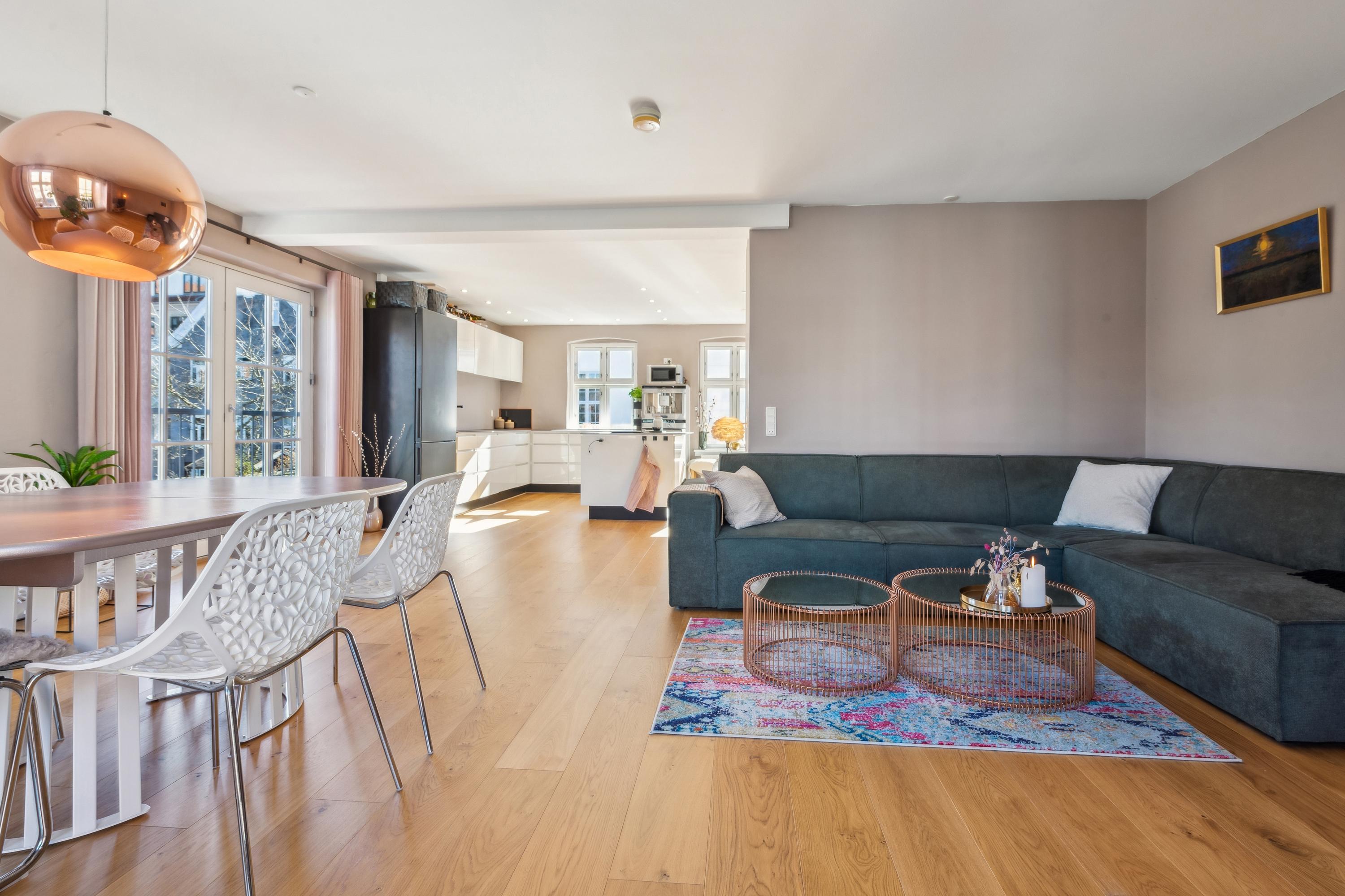 Ejendommen blev konverteret og totalrenoveret i 2006, hvilket betyder, at du kan forvente moderne faciliteter og en stilfuld indretning. Lejligheden strækker sig over to plan og tilbyder et rummeligt boligareal på hele 114 kvadratmeter.