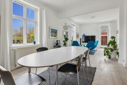 Velkommen til denne smukke villa, der er opført i 1920 og byder på en imponerende mængde kvadratmeter. Denne ejendom er ideel for dem, der ønsker både charme og funktionalitet i deres hjem. Når du træder ind i entréen, bliver du mødt af en varm atmosfære, der straks får dig til at føle dig hjemme. Fra entréen har du adgang til den rummelige stue, hvorfra der er udgang til en dejlig træterrasse – perfekt til hyggelige sommeraftener eller morgenkaffen.
