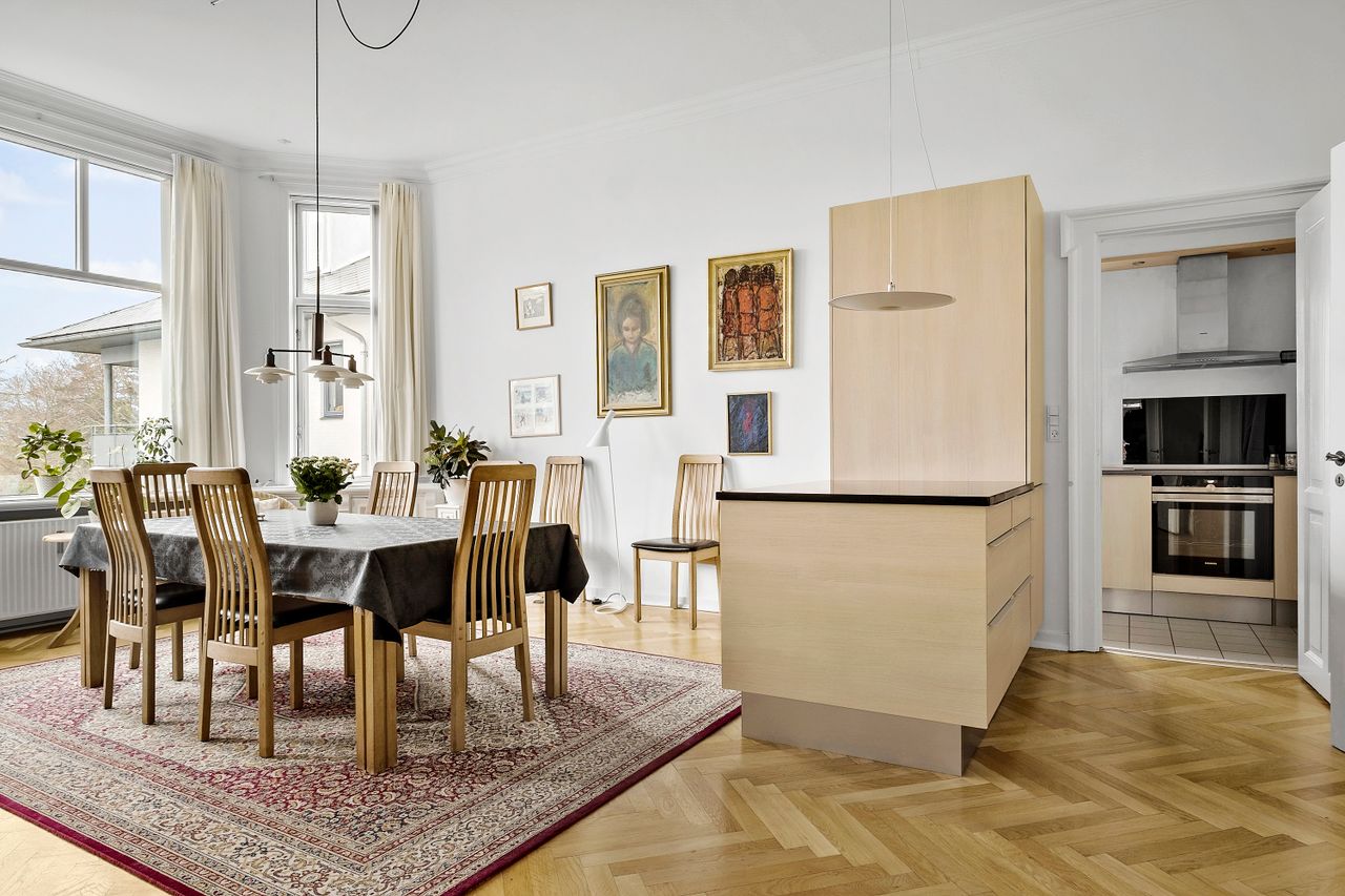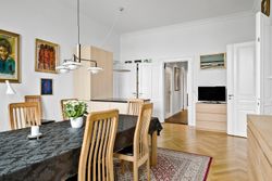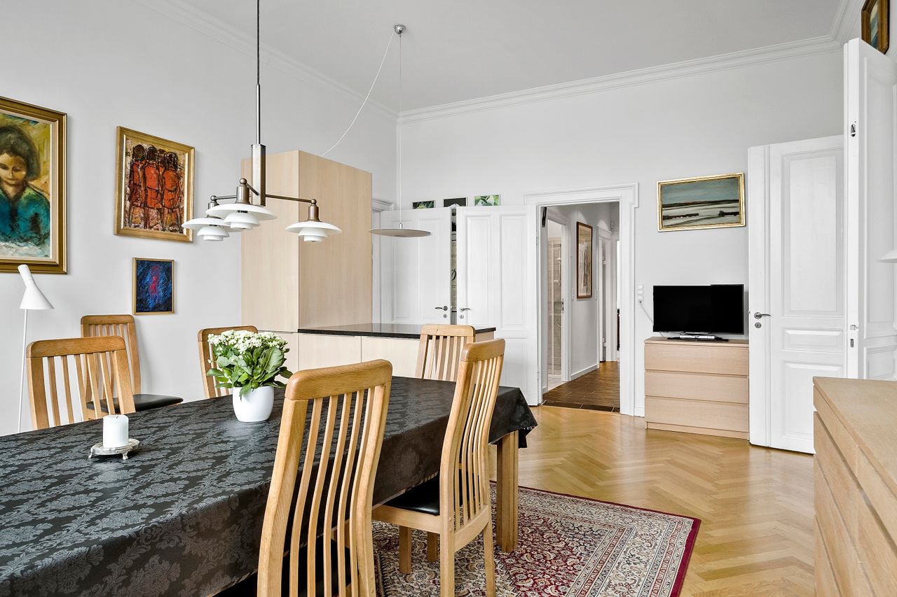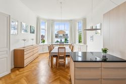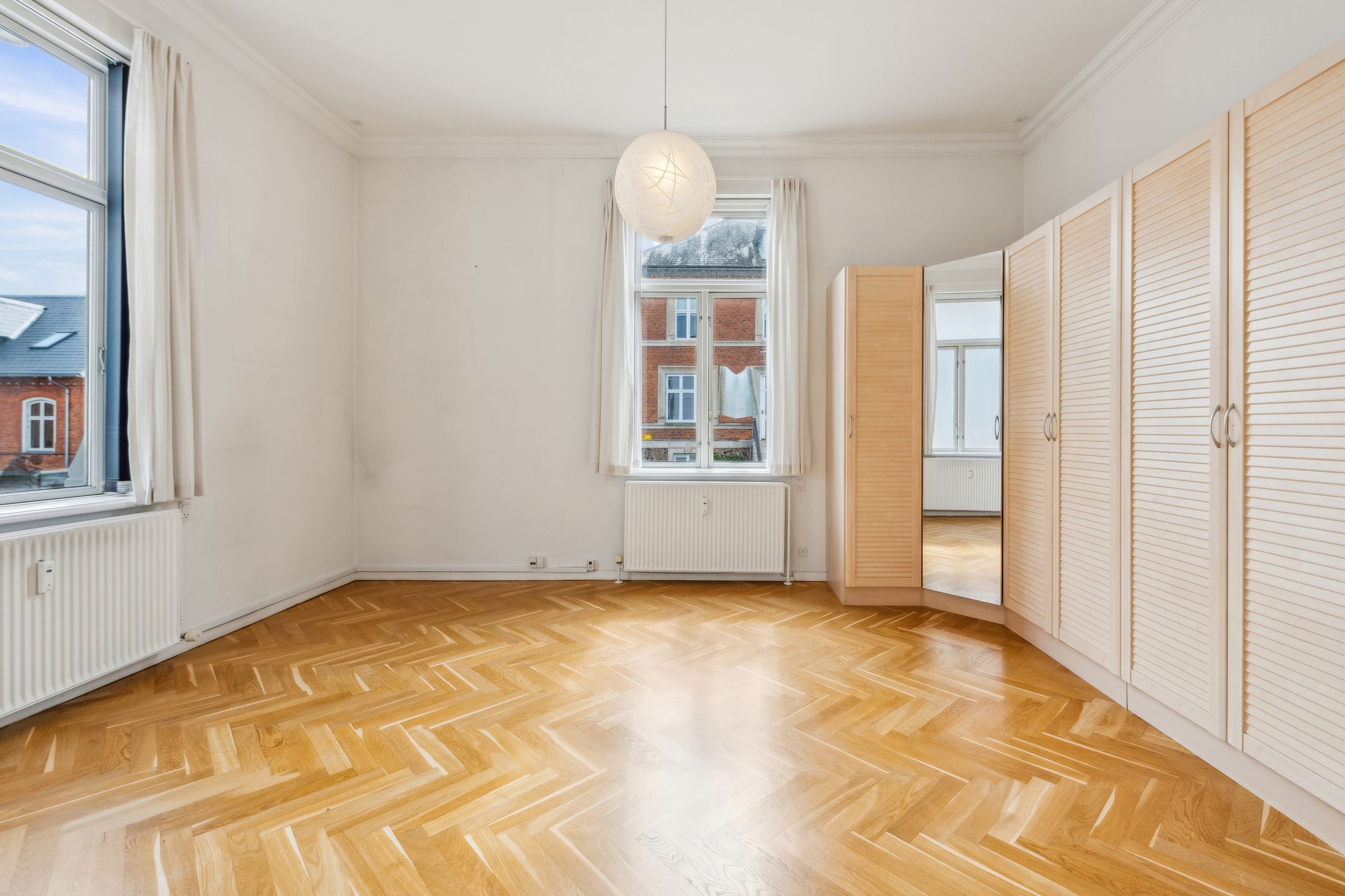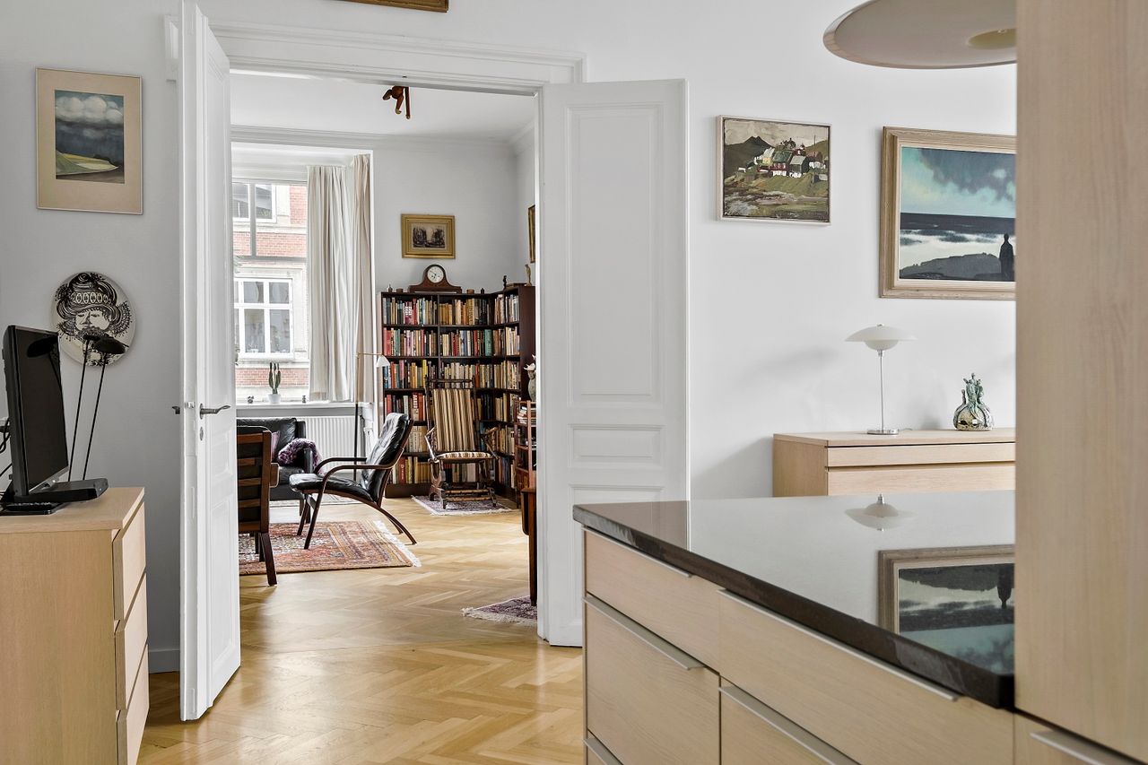 Velkommen til denne enestående ejerlejlighed, der byder på hele 161 kvadratmeter ren herskabelighed. Bygget i 1917, emmer denne bolig af historie og charme med sine smukke sildebensgulve, detaljerede stuklofter og imponerende loftshøjde. Når du træder ind i den rummelige entre, bliver du straks mødt af boligens elegante atmosfære.