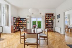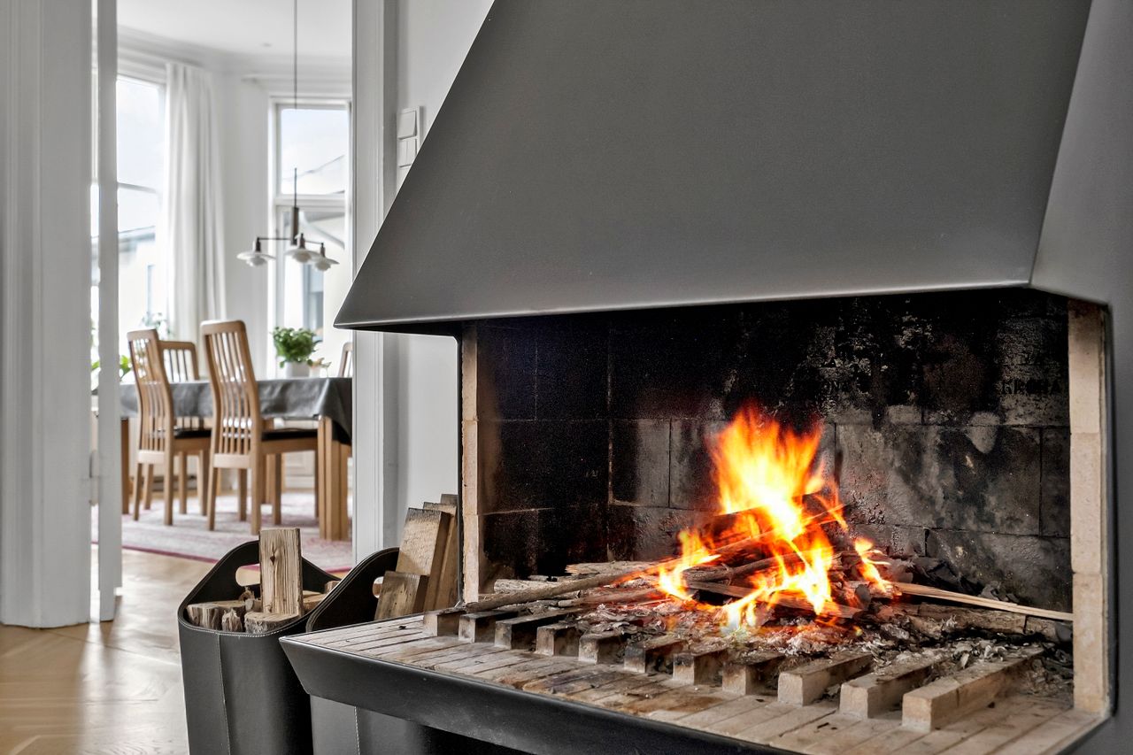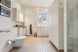 Den skønne spisestue imponerer med sit flotte lysindfald fra de store vinduer i karnappen, hvilket skaber en varm og indbydende stemning. I stuen ved siden af, finder du en hyggelig pejs, der gør vinteraftenerne ekstra behagelige. Fra stuen er der direkte adgang til haven og den solrige terrasse, hvor du kan nyde afslappende stunder under åben himmel eller under elektrisk markise.