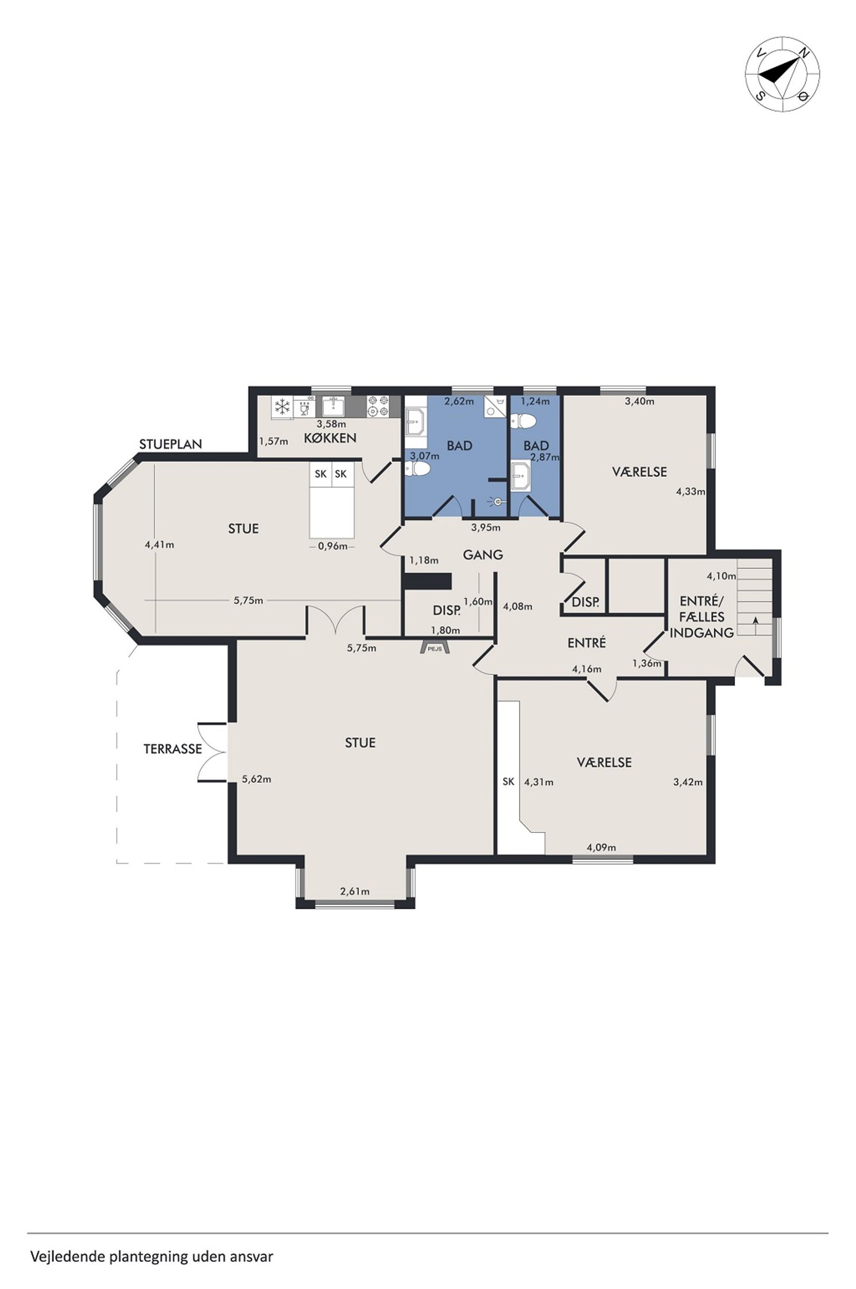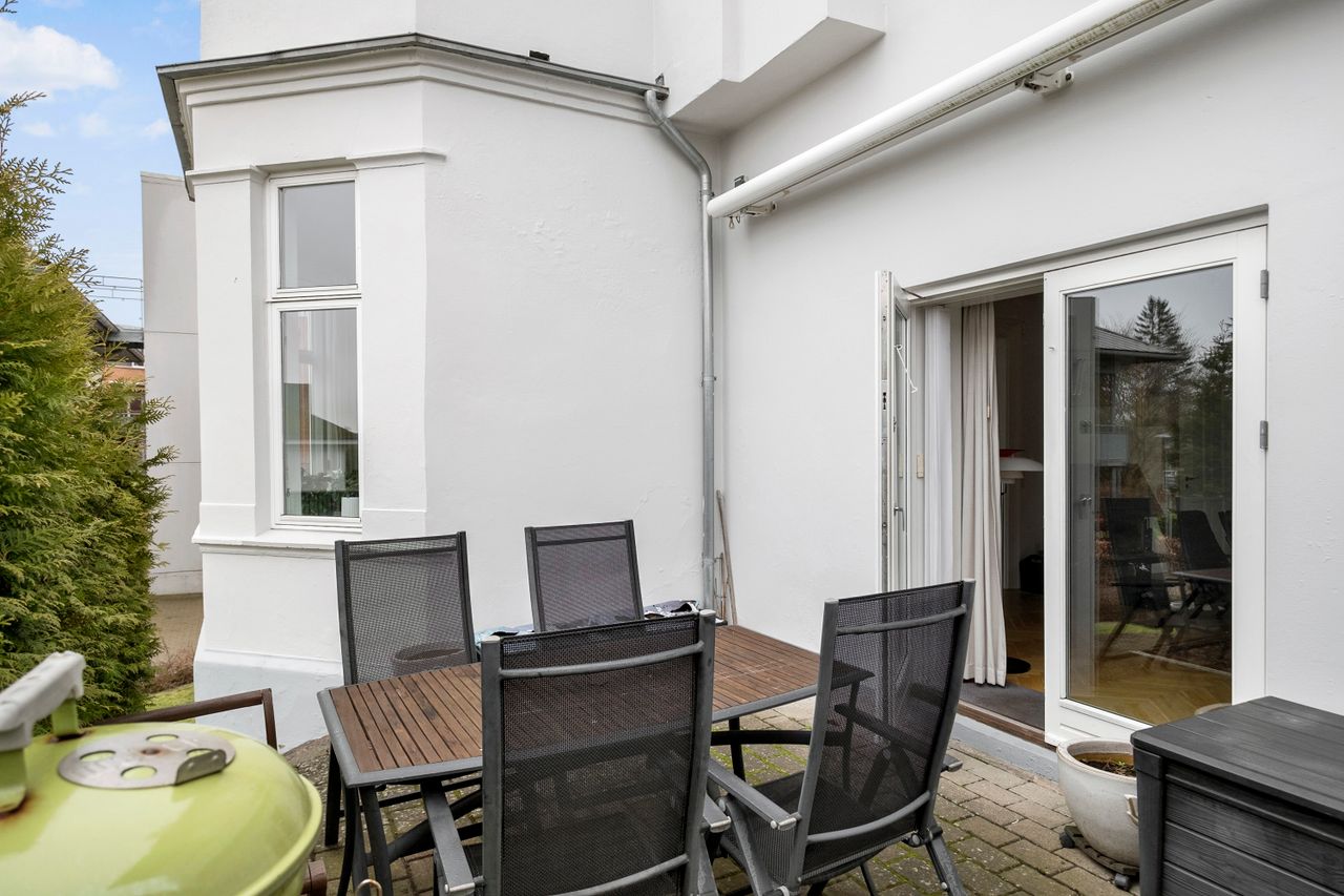 Udenfor venter et mindre havestykke samt din egen carport og fælles gæste parkeringspladser – en sjælden luksus så centralt beliggende. Lejligheden ligger tæt på stationen, skole, daginstitutioner samt sportsaktiviteter i Royal Stage. Derudover har du nem adgang til både byens livlige centrum samt de omkringliggende skove og naturskønne områder, med blandt andet slottet og slotssøen.