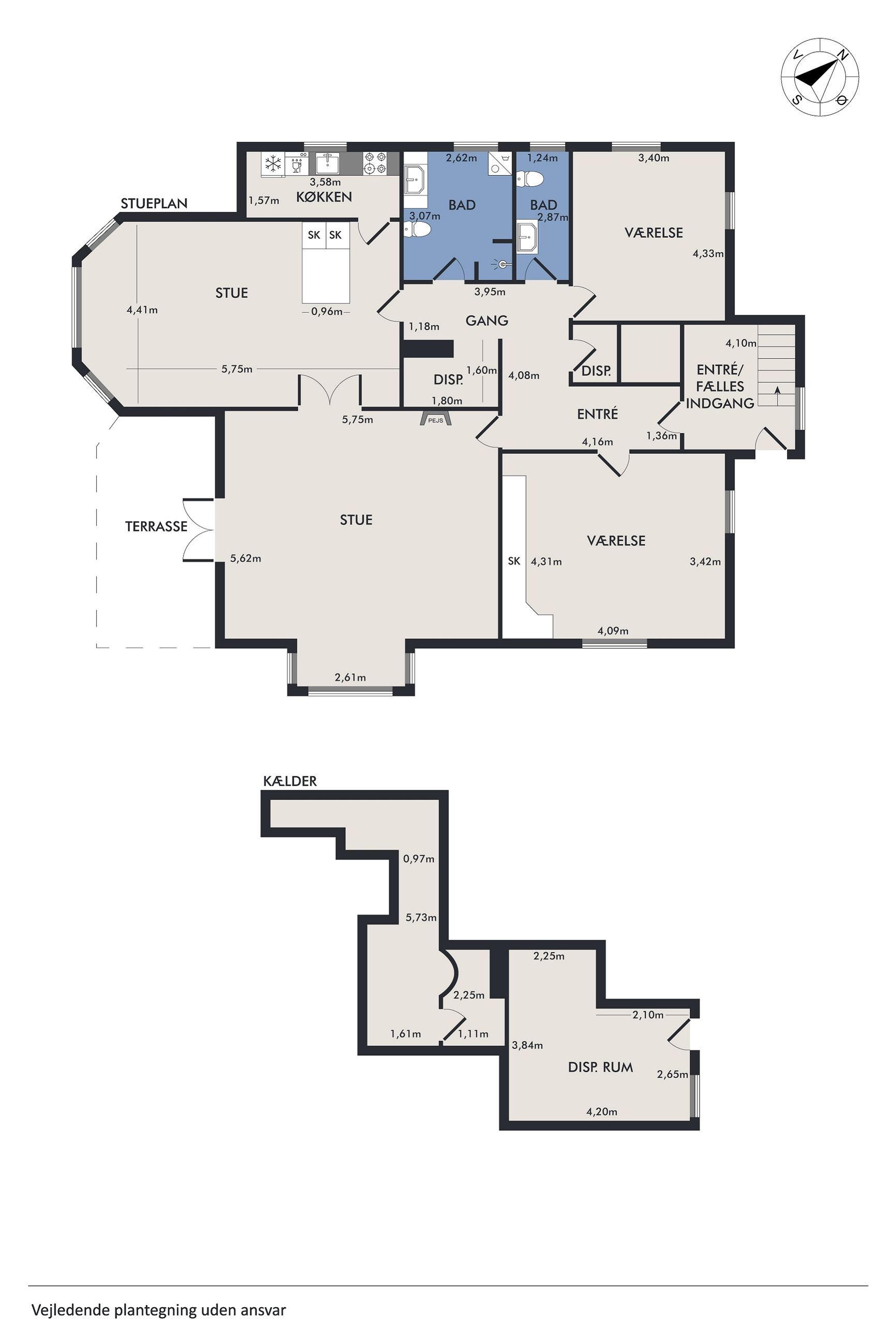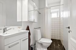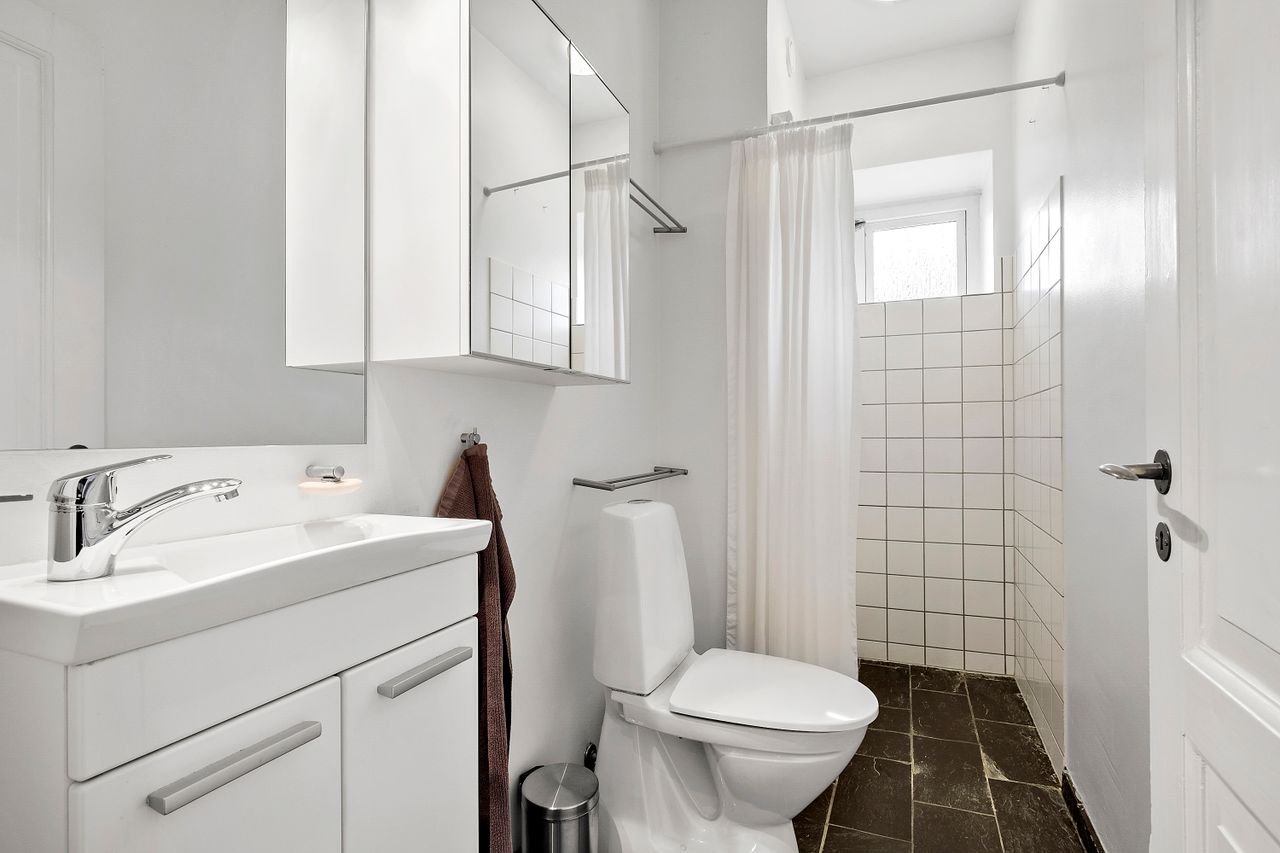 Lejligheden rummer et værelse samt et kontor/værelse, der giver mulighed for både arbejde hjemmefra eller som ekstra soveværelse. De to moderne badeværelser er udstyret med brus og fremstår lyse og indbydende. Køkkenet er perfekt til madlavning og samvær med familie og venner.