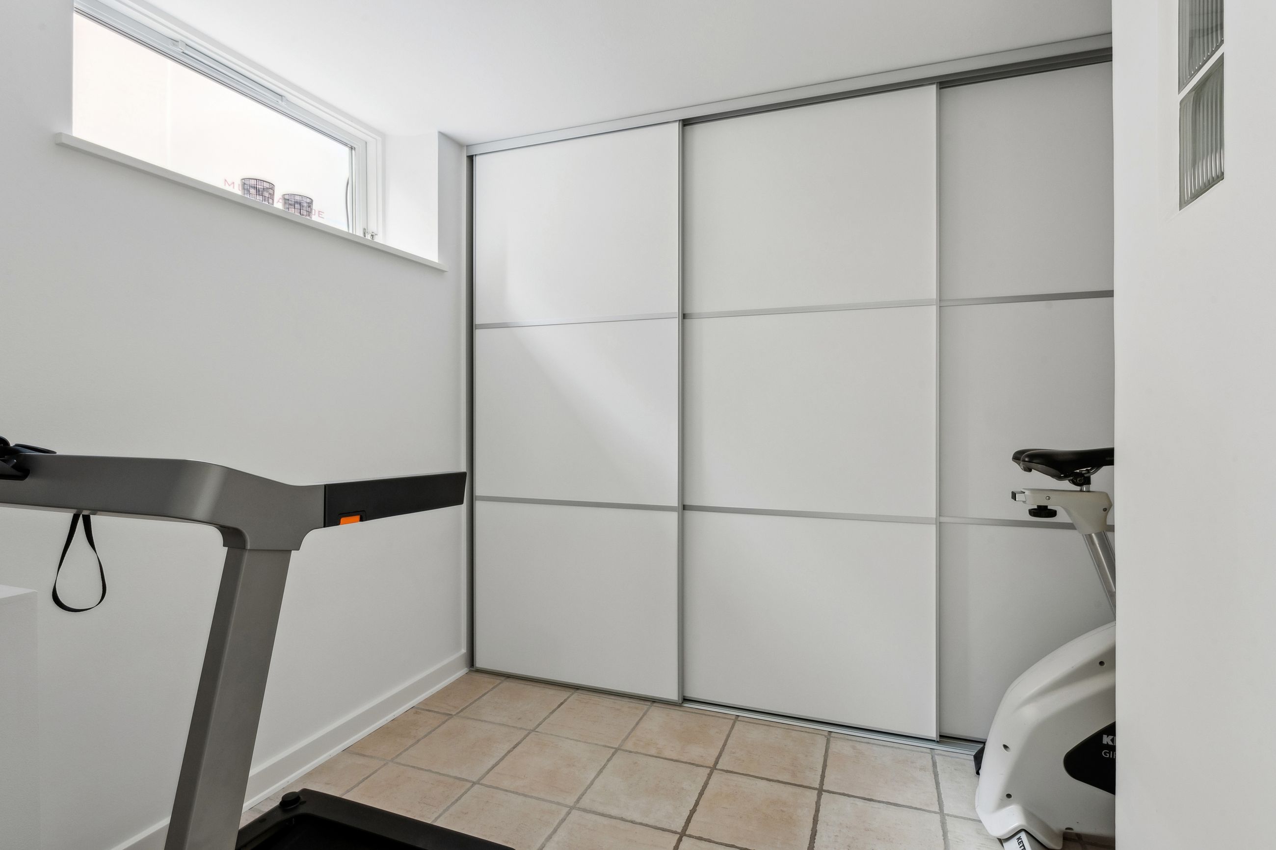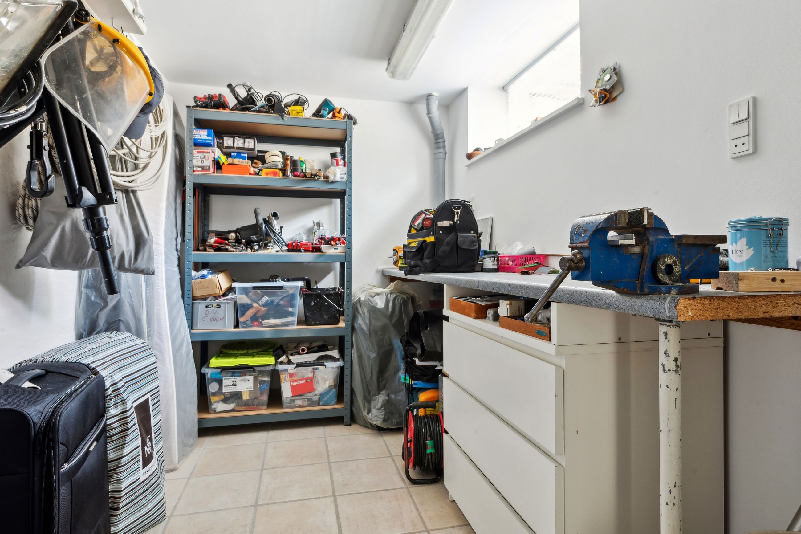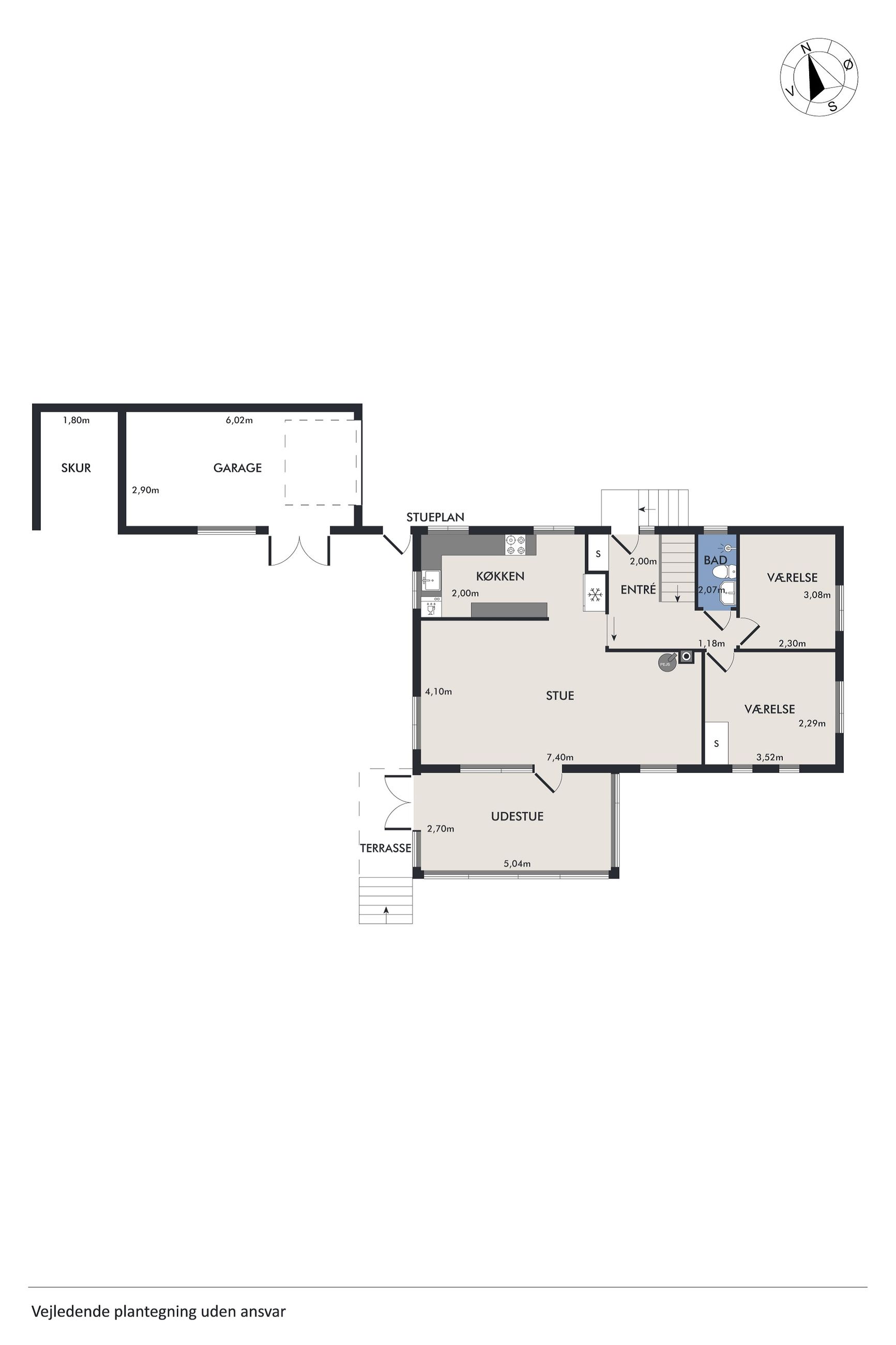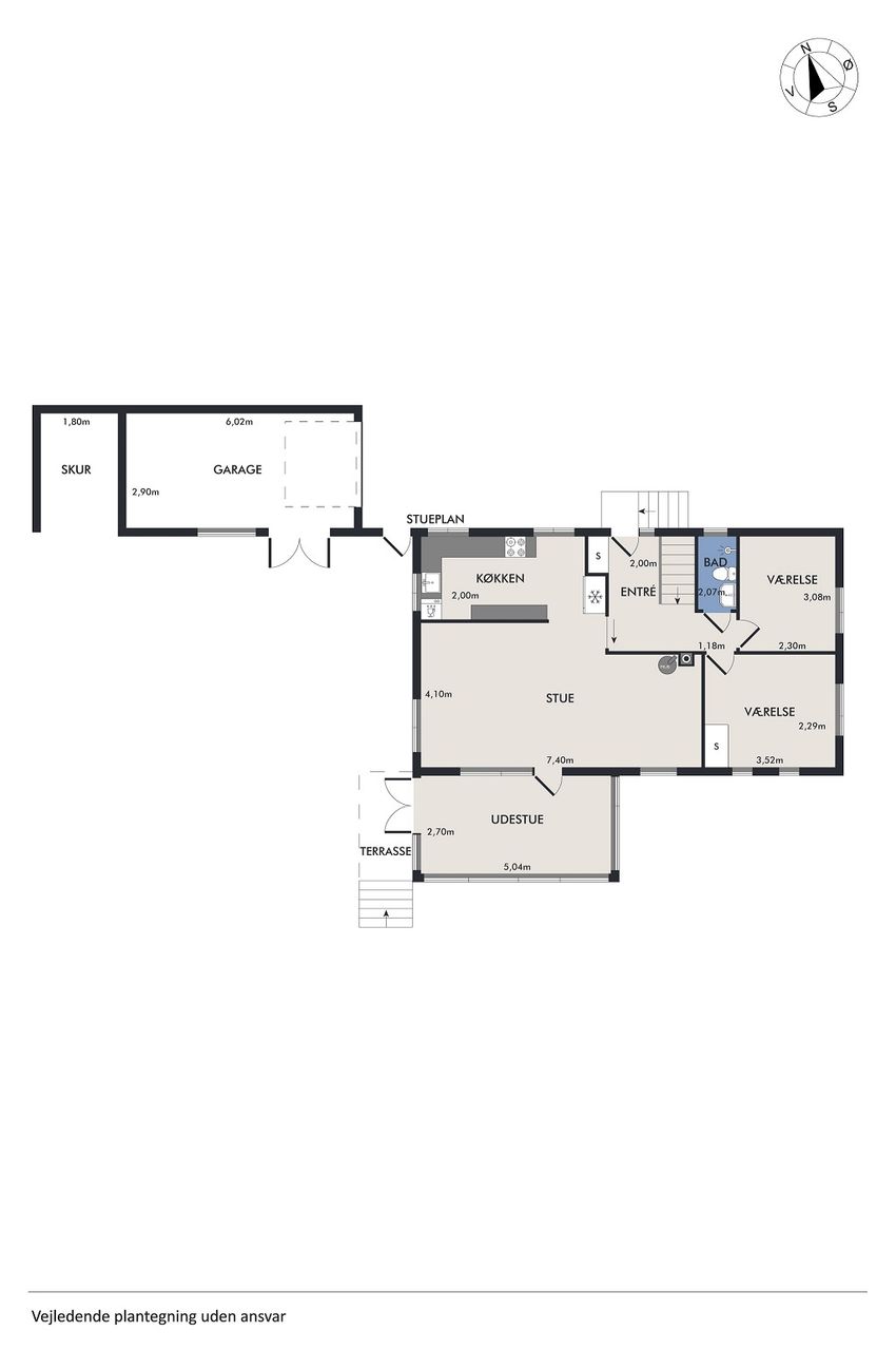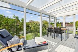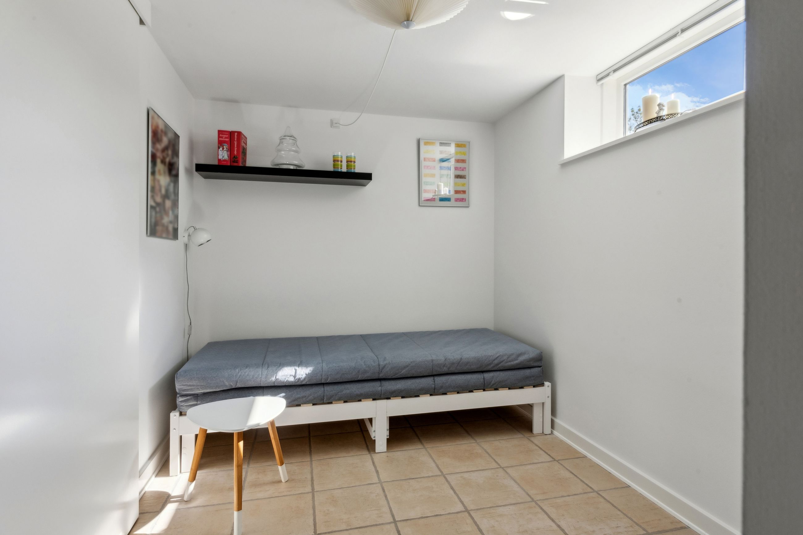Udenfor venter en skøn solrig have, med flere gode terrassemiljøer. Havefliserne er renset og imprægneret i 2024. Den murede garage er tør og med Hørmann elport. Mod haven et glasparti med to terrassedøre og solpanel der genererer frisk luft til garagen. Hele indkørslen er belagt med miljørigtig belægning der tillader 100% nedsivning af regnvand.