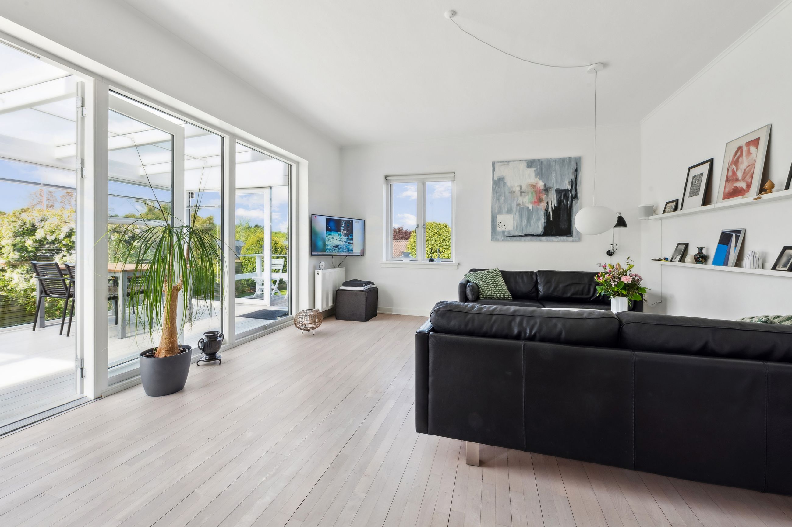 Velkommen til denne smukke renoverede villa fra 1957, - højt beliggende i sygehuskvarteret og tæt på det nye supersygehus og på både Store Dyrehave og Præstevang hundeskov. Med sine imponerende 160 etagemeter oplever man en indbydende atmosfære og masser af plads til hele familien. Desuden rummer villaen masser af opbevarings- og skabsplads. Fra det øjeblik du træder ind i den lyse entre med flot åben trappe til underetagen, vil du føle dig hjemme. Et kodeord for begge villaens etager er masser af lys og sol. Villaen er blevet gennemgribende renoveret over tid, hvilket gør den til en sand fornøjelse.