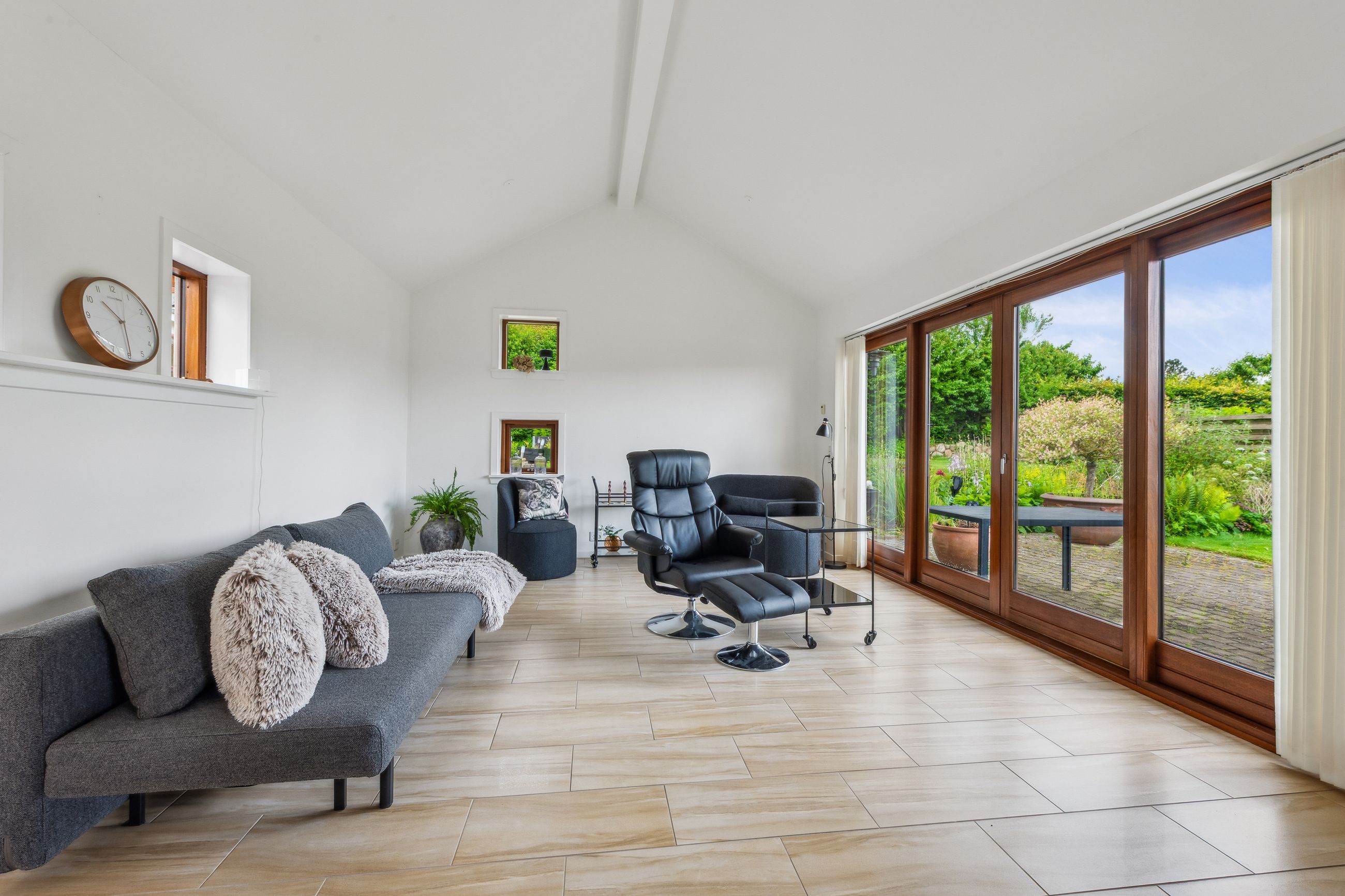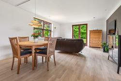 Annekset fungerer som en selvstændig bolig med egen stor stue, køkken-alrum samt et lyst soveværelse og badeværelse. Den solrige terrasse foran annekset bliver hurtigt det foretrukne sted at nyde morgenkaffen eller aftensolen.