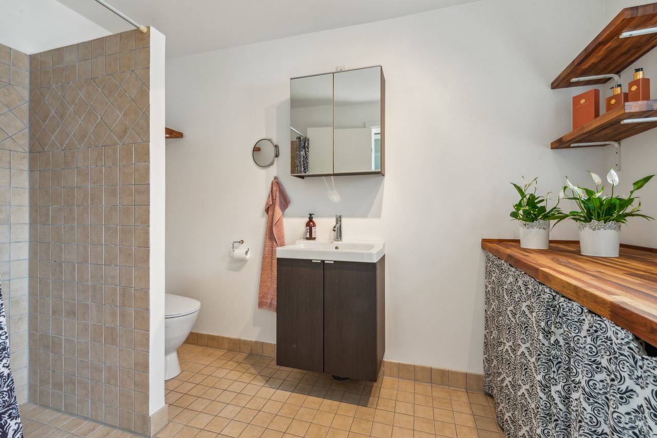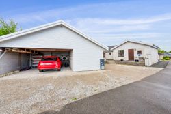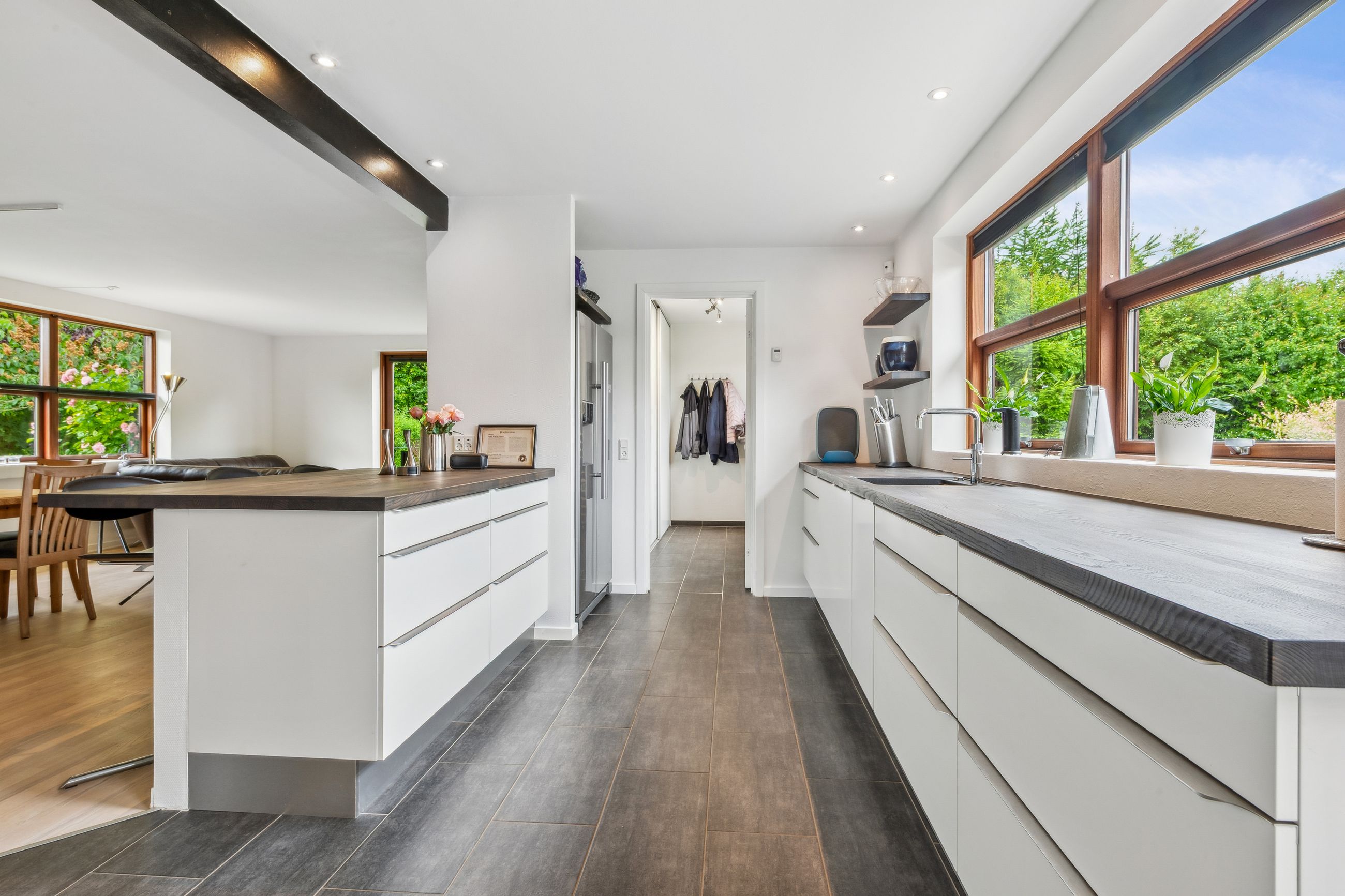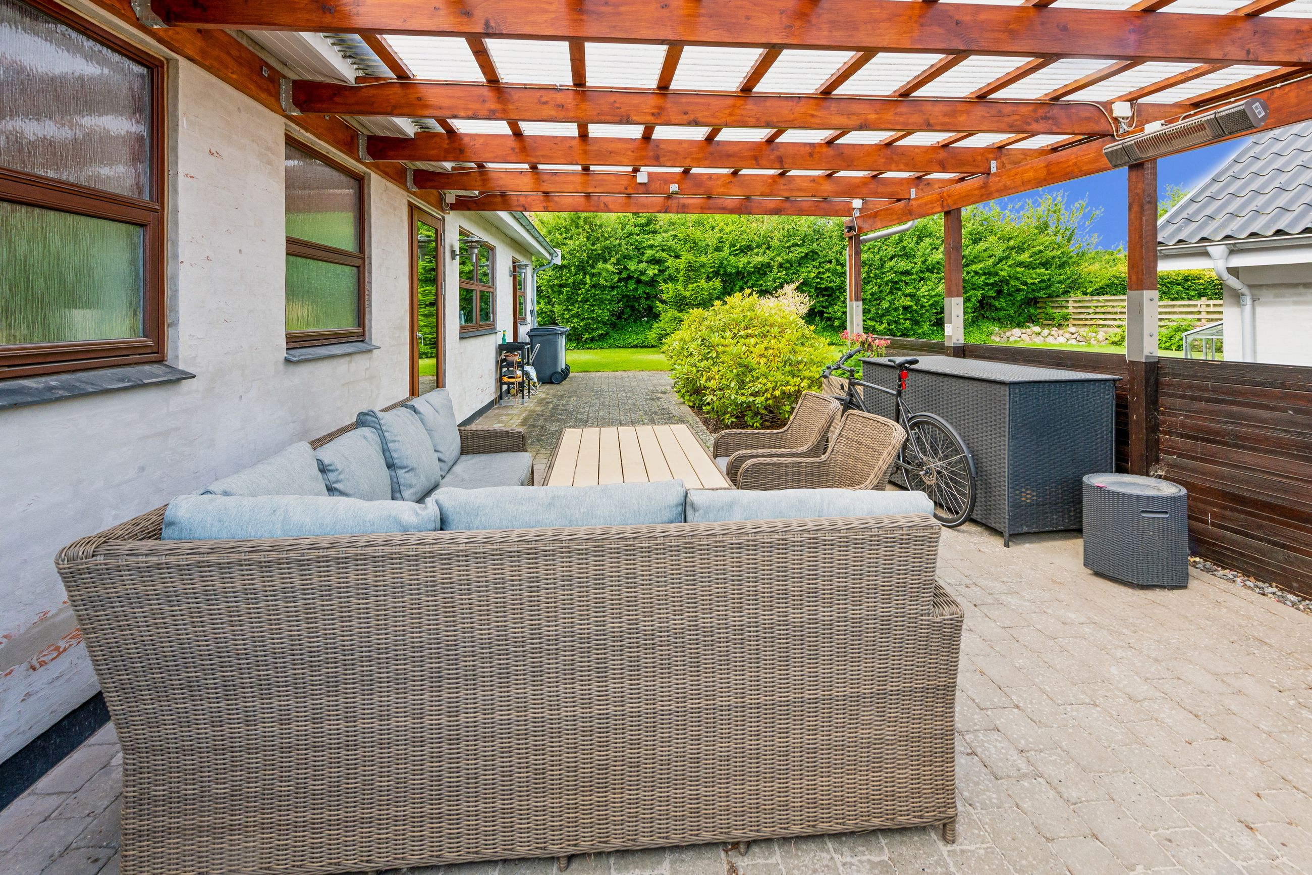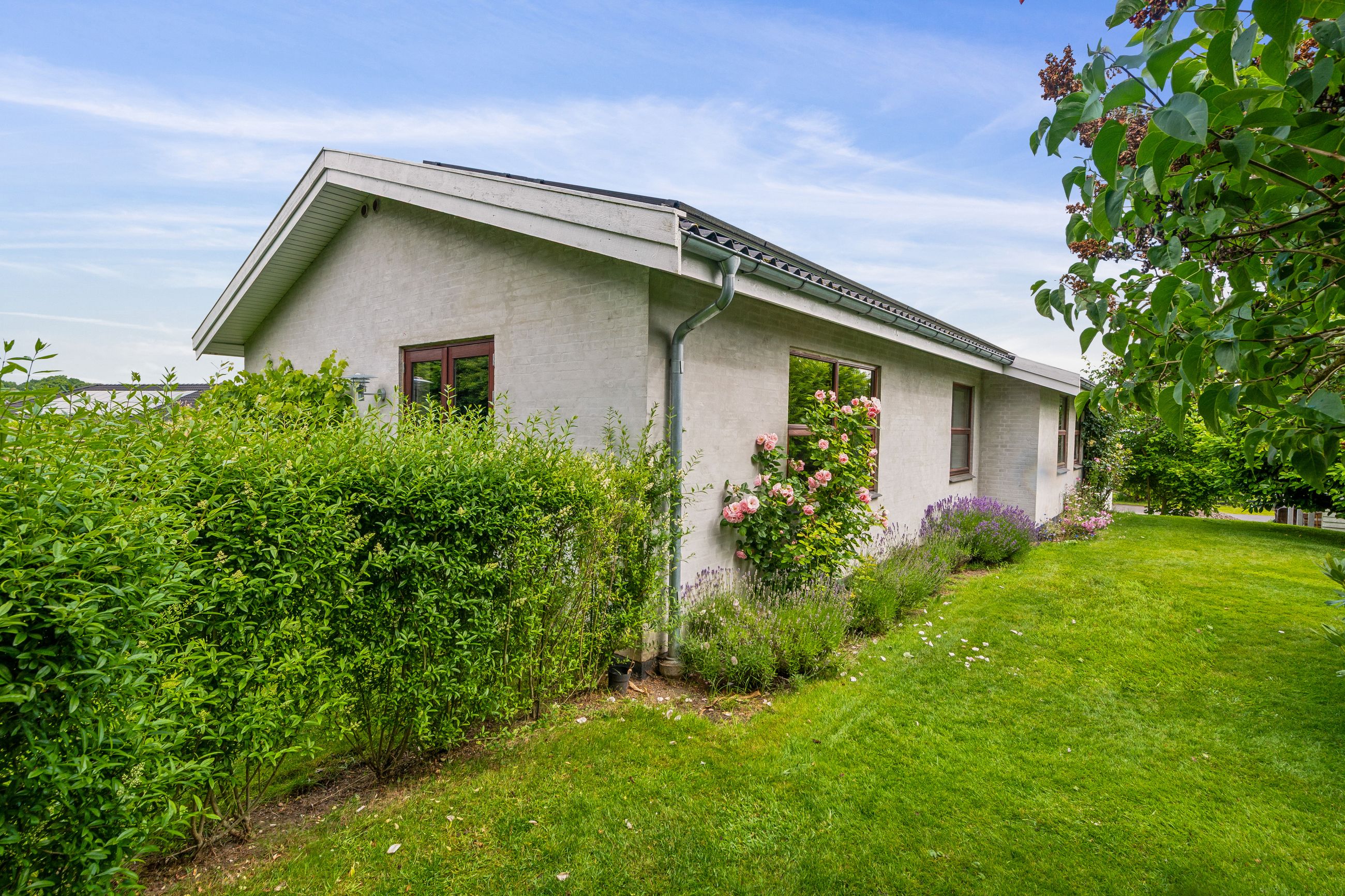 Udendørs finder du en rummelig carport med tilhørende skur – perfekt til opbevaring af cykler eller haveredskaber. Haven er højt beliggende og giver dig en betagende udsigt over området samt flere hyggelige terrasser, hvor du kan nyde de lange sommerdage. Græsplænen indbyder til leg og udendørs aktiviteter for både børn og voksne.