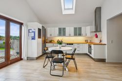 Ejendommen ligger ideelt placeret tæt på skove og engarealer, såvel som praktiske faciliteter såsom indkøbsmuligheder og busforbindelser lige ved hånden. Skolen ligger blot en kort gåtur væk ned ad vejen, hvilket gør hverdagen let for børnefamilien.