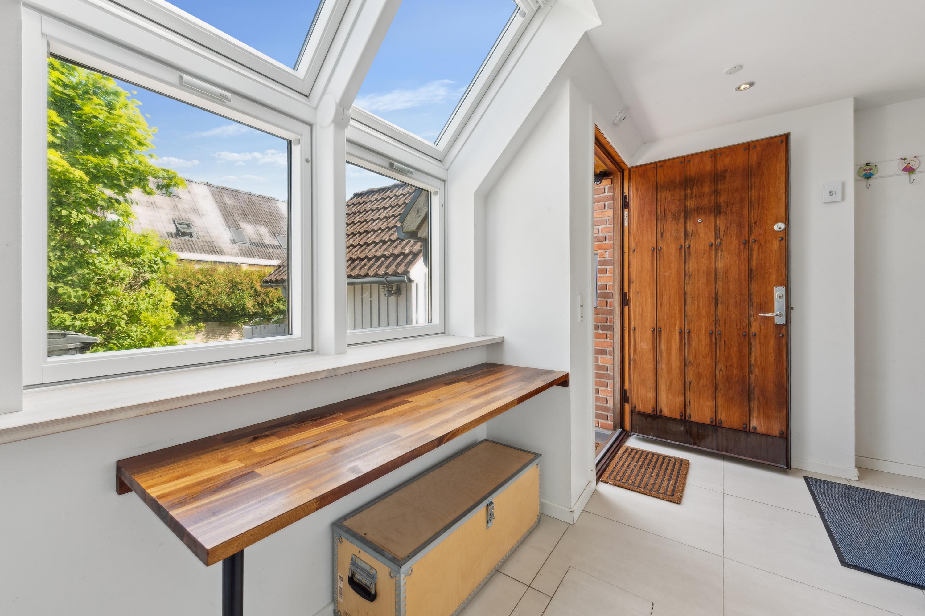 Velkommen til dette charmerende rækkehus, der byder på et boligareal på 124 kvadratmeter fordelt over to etager, dertil et udnyttet loft. Huset er perfekt for familien, der ønsker en kombination af komfortabel boligindretning og moderne energiløsninger. Ved ankomsten bliver du mødt af en indbydende