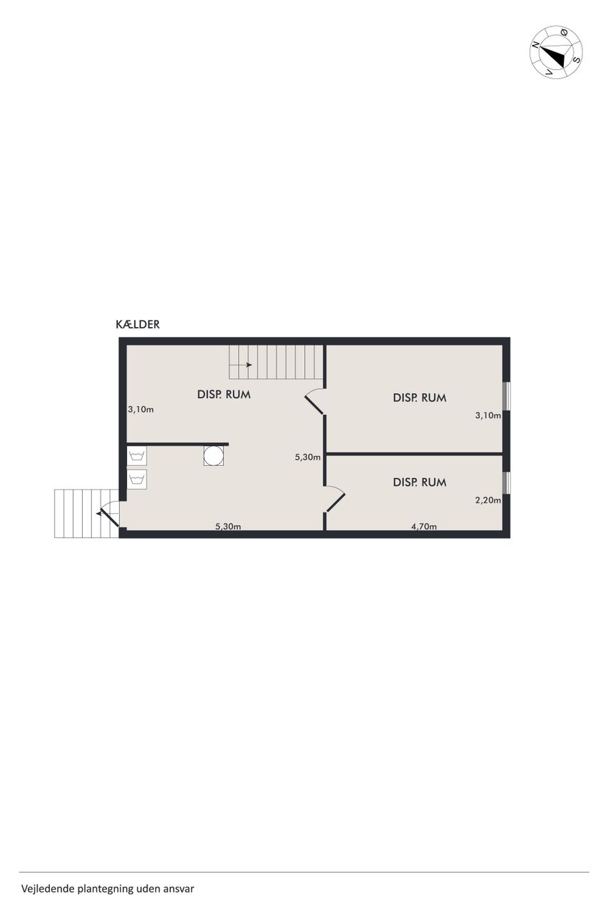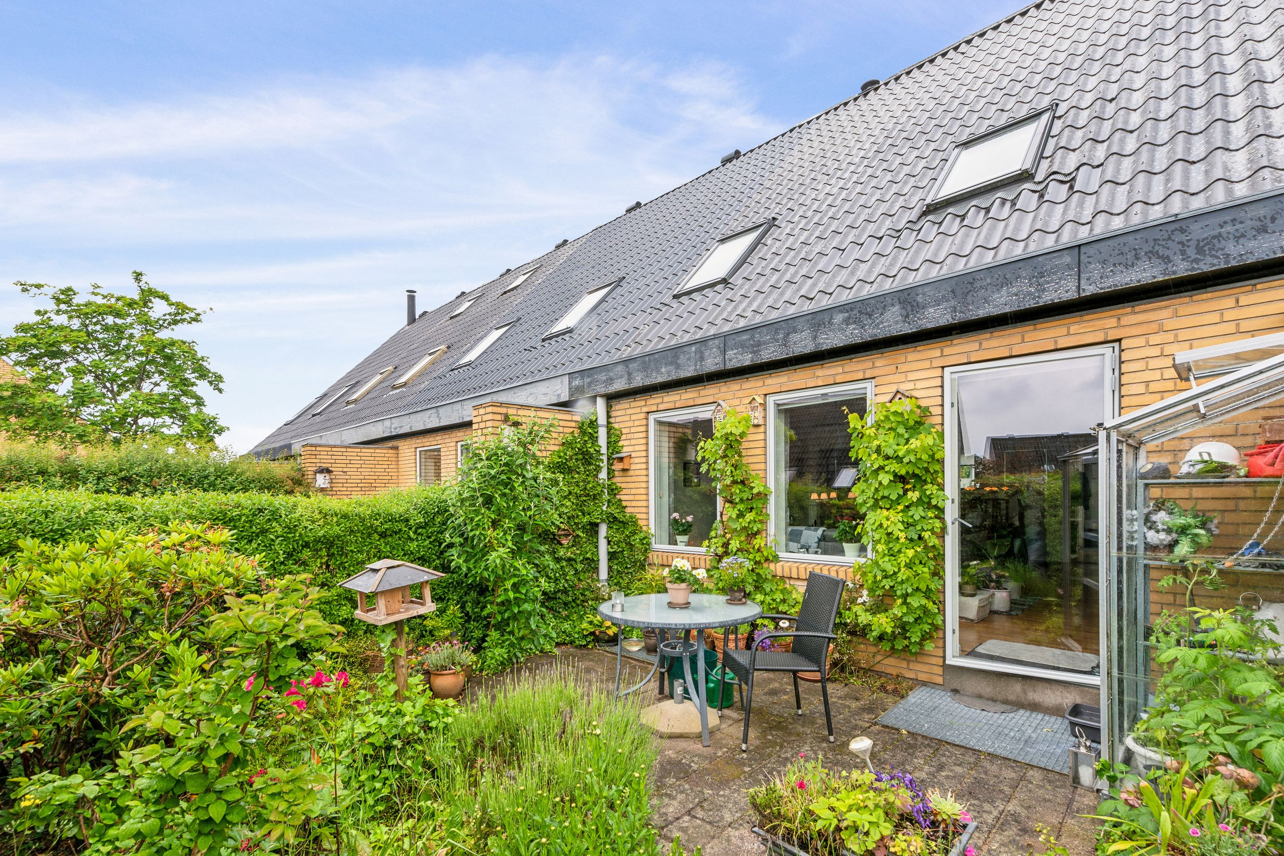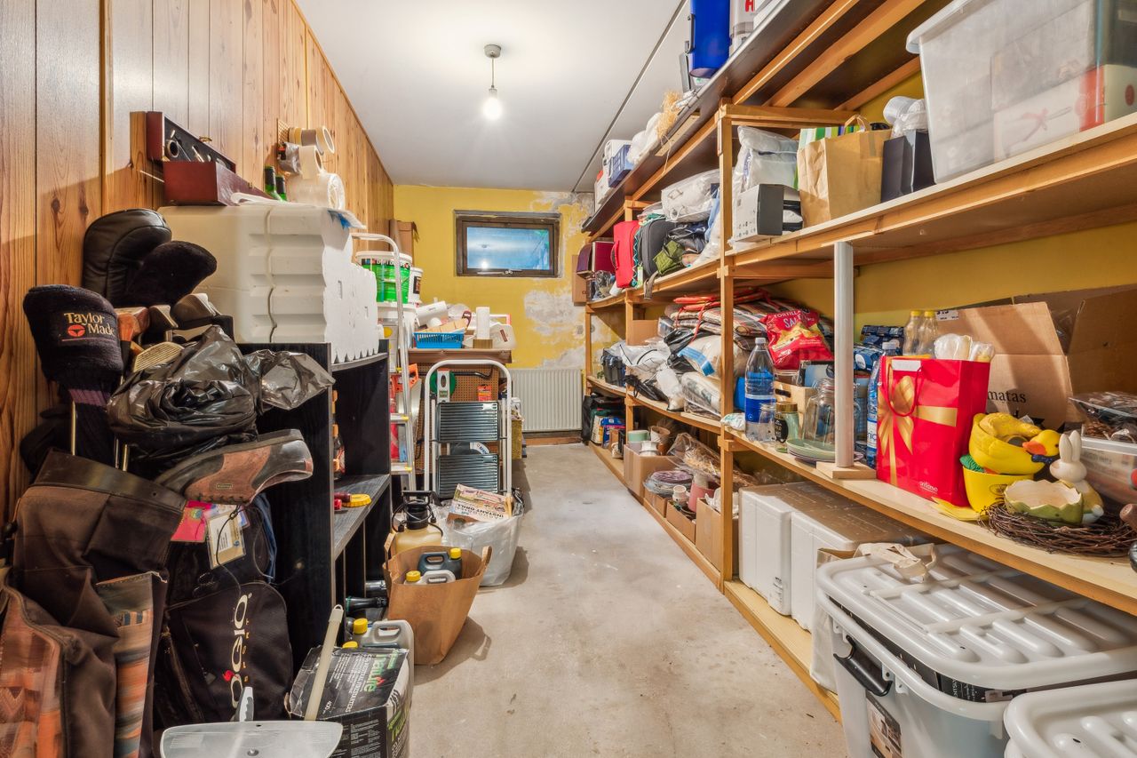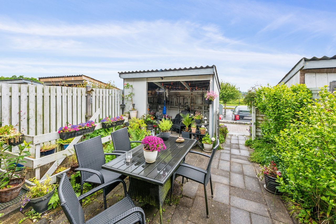 Kælderen byder på ekstra plads med vaskerum og tre disponible rum, der kan anvendes efter behov – hvad enten det er som hobbyrum, kontor eller opbevaring. Udenfor venter endnu mere at glæde sig over; her er terrassearealer både foran og bagved huset, så solen kan nydes hele dagen lang.
