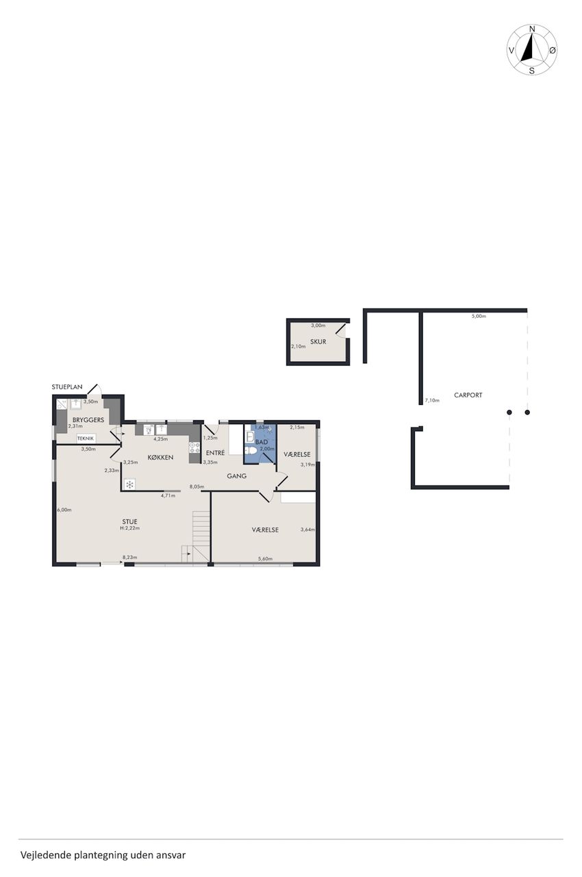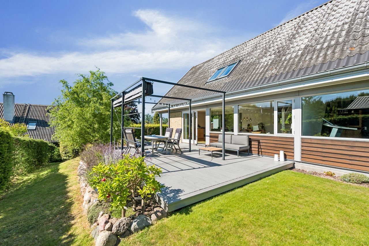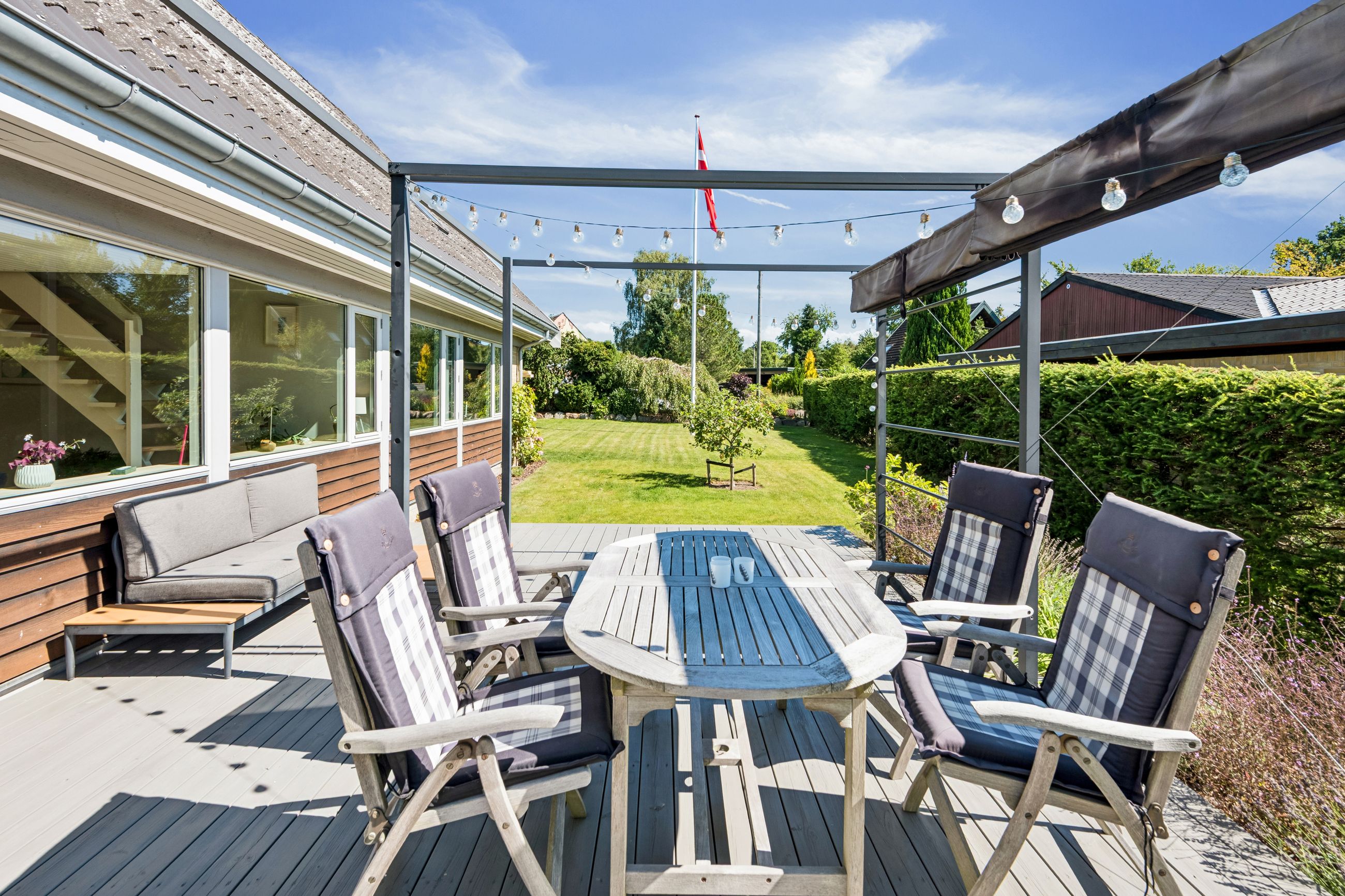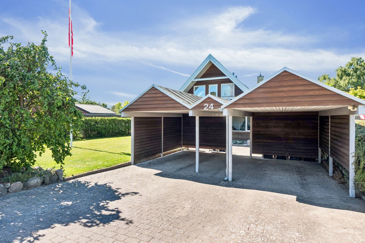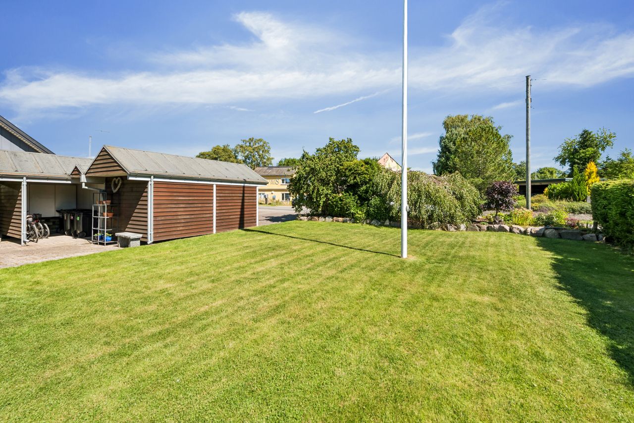Udenfor byder haven på rig mulighed for leg og hygge under solen samt flere gode skure til opbevaring. Ejendommen inkluderer også en god stor carport, så bilen altid står tørt og sikkert.