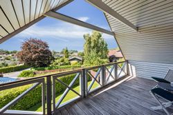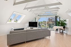 På første sal venter endnu mere plads med en stor stue/alrum, der har udgang til en overdækket terrasse med betagende udsigt over områdets tage og huse. Soveværelset på denne etage imponerer med sit moderne design, med walk-in og eget luksuriøse badeværelse.