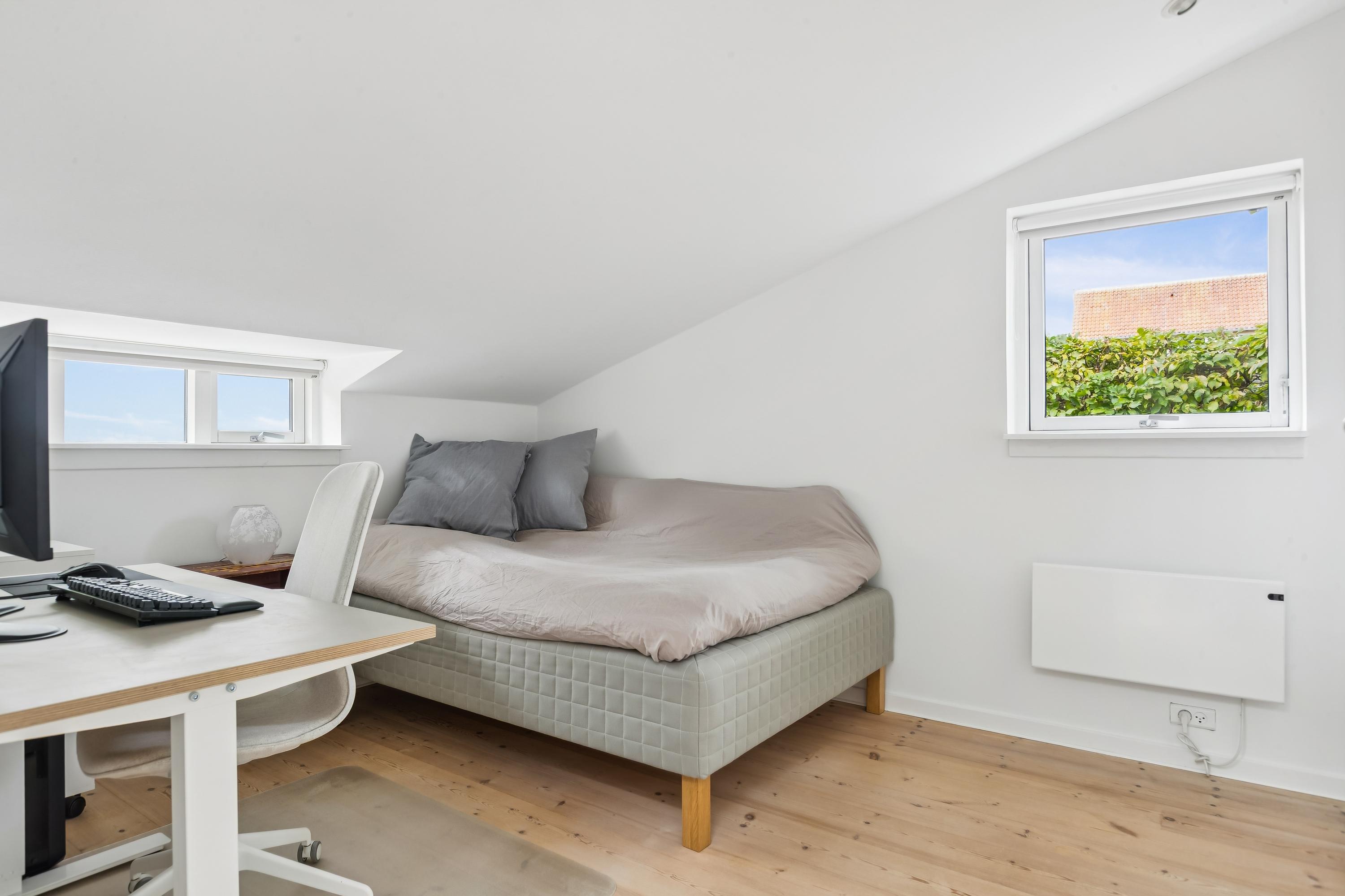 Velkommen til dette charmerende enderækkehus, der med sine 146 kvadratmeter byder på en lys og indbydende atmosfære. Huset er ideelt for familien, der ønsker et hjem klar til indflytning uden at skulle bekymre sig om de store renoveringer. Beliggende i det eftertragtede sygehuskvarter, får du her