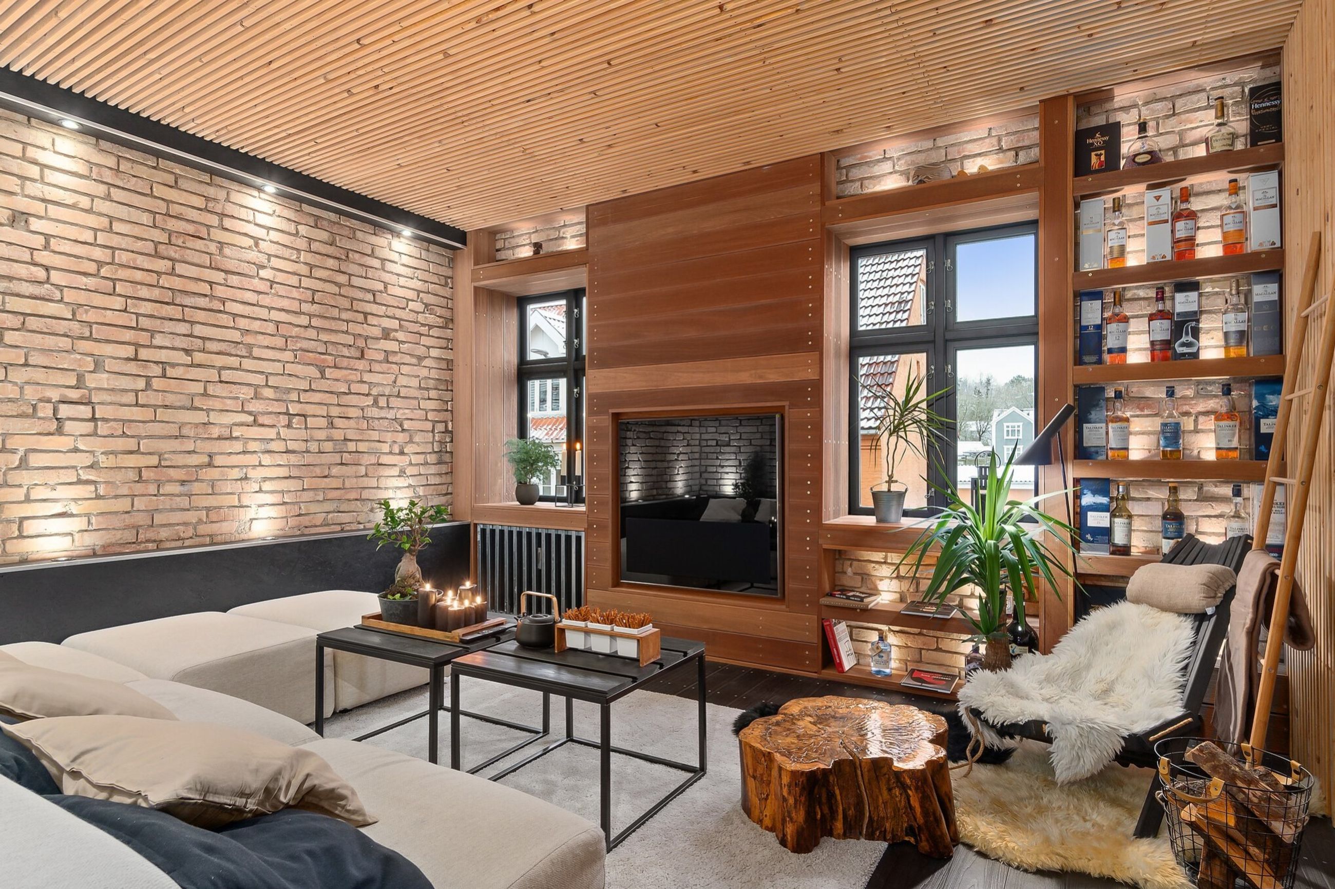 En fantastisk gennemført stil med træ, blotlagte mursten og sorte elementer er kendetegnet for denne yderst unikke lejlighed i Aalborg. Glæd dig til at opleve den imponerende stemning og indretning, hvor der er hentet inspiration fra New York, London og det nordiske.