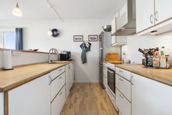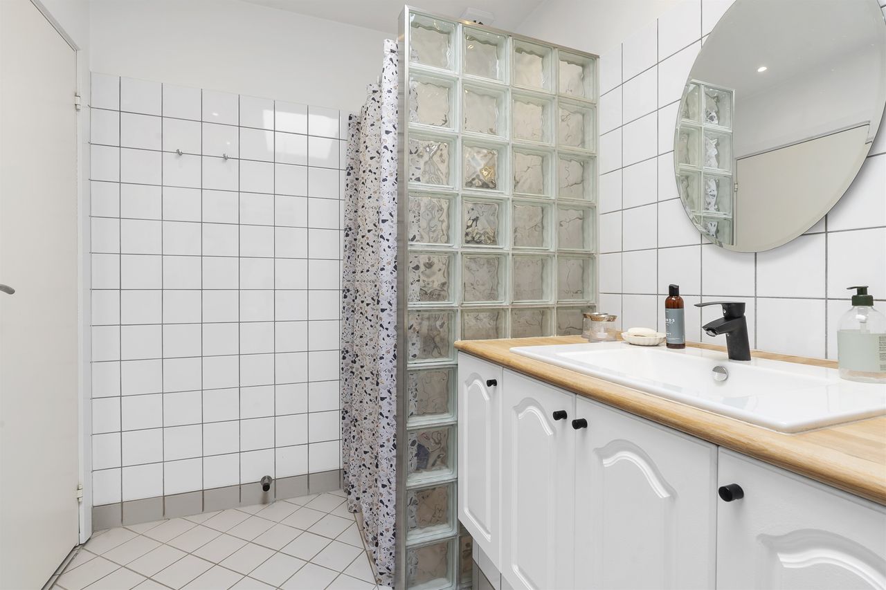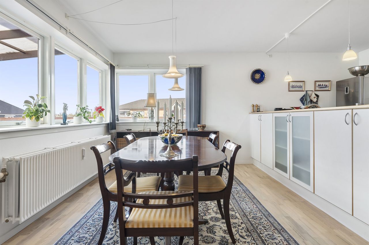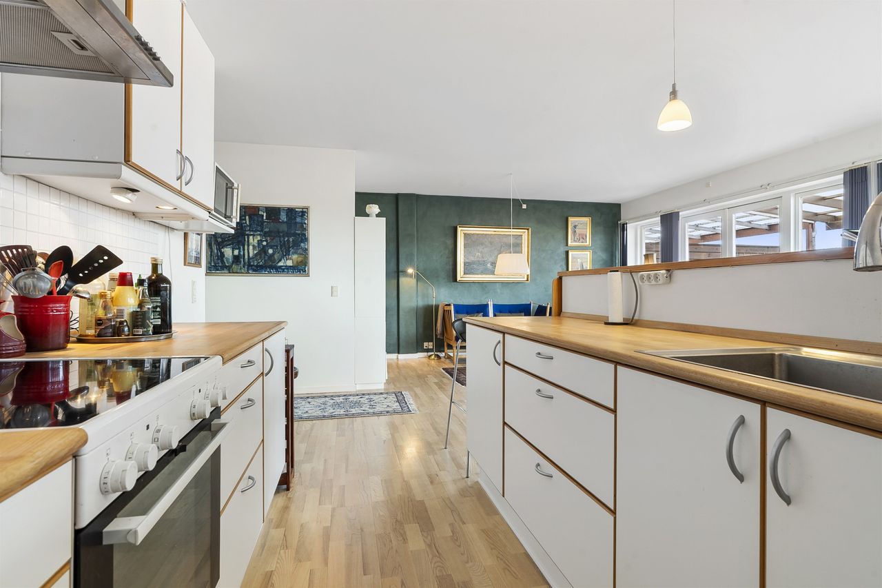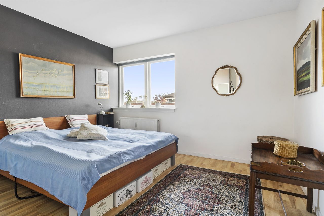 Boligen rummer et stort og lyst soveværelse, et moderne badeværelse med gulvvarme samt et åbent og indbydende køkken-alrum, hvor både hverdag og gæster får plads. Her er der masser af lys og luft, og atmosfæren indbyder til både afslapning og samvær.