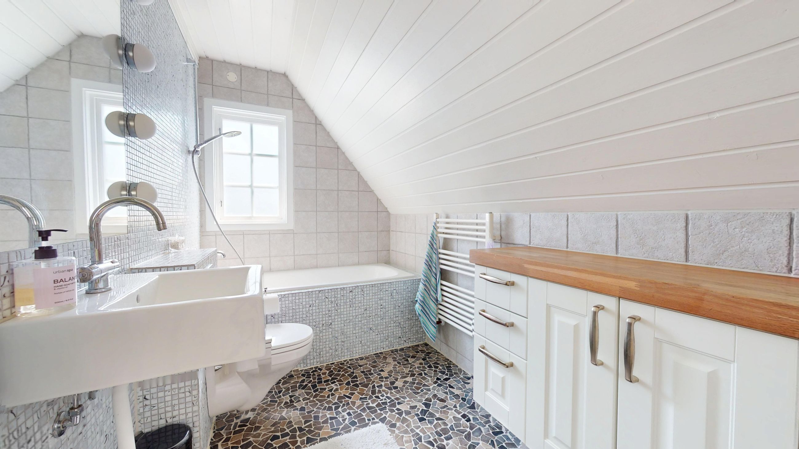 Villaen indeholder hele 5 værelser, hvoraf de 4 er store, regulære soveværelser, og det sidste fungerer perfekt som kontor, gæsteværelse eller børneværelse. Med 3 badeværelser med toilet får I optimal komfort i hverdagen – ingen kø om morgenen!