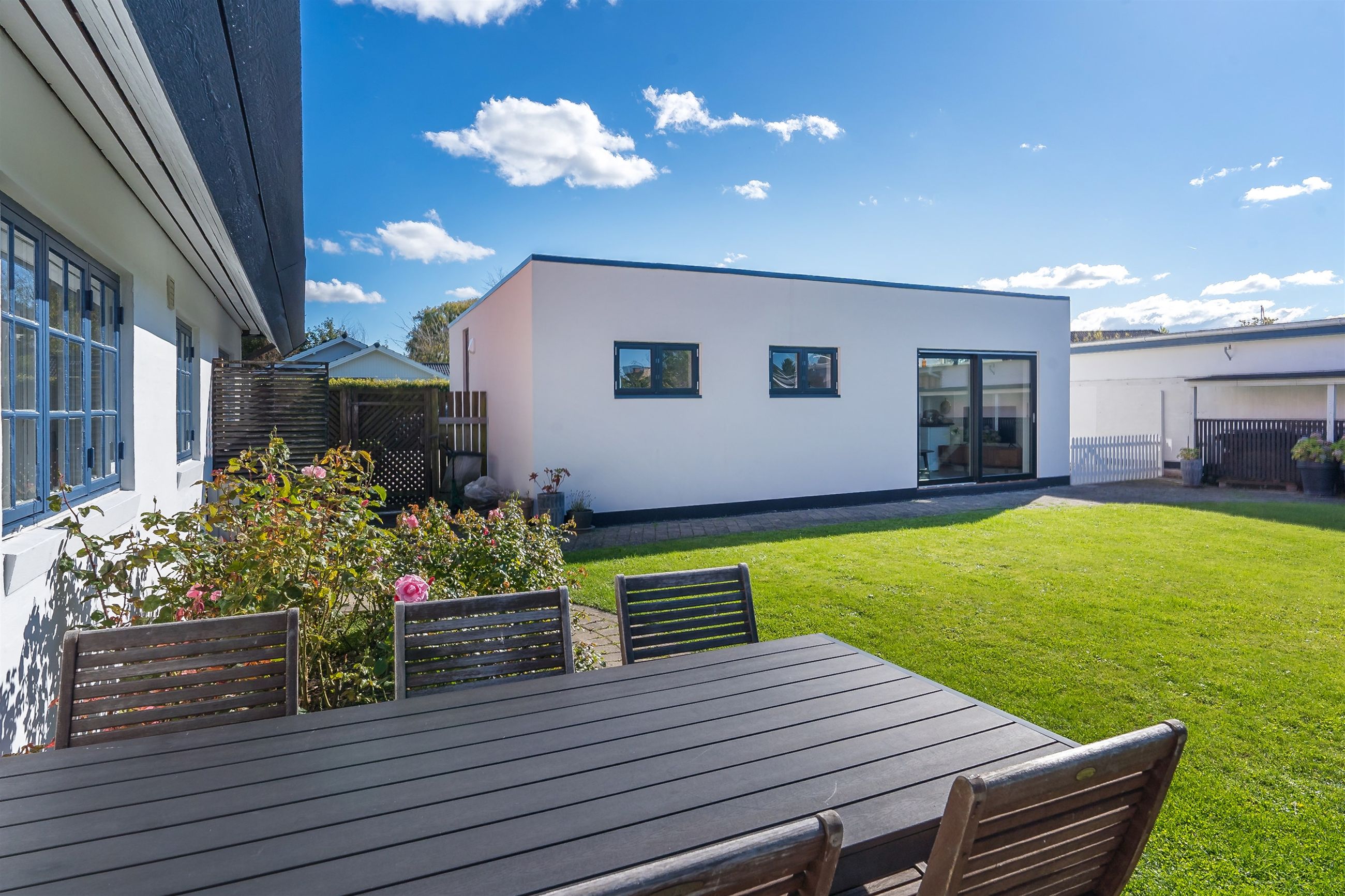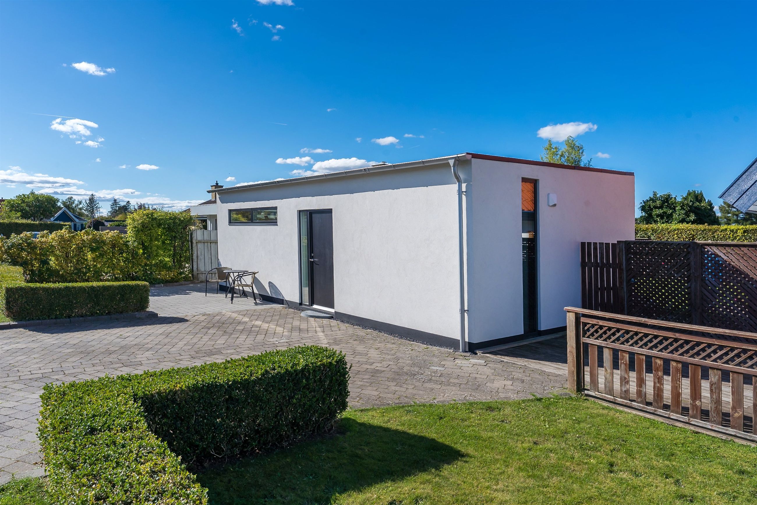 Ejendommen rummer også et skønt anneks på 47 m2, bygget i funkisstil med eget køkken og badeværelse inkl. vaskefaciliteter. Her er mange anvendelsesmuligheder – oplagt til teenageafdeling, privat afdeling til bedsteforældre, hjemmekontor eller som gæstebolig. Der er endda mulighed for udlejning til f.eks. Bed & Breakfast.