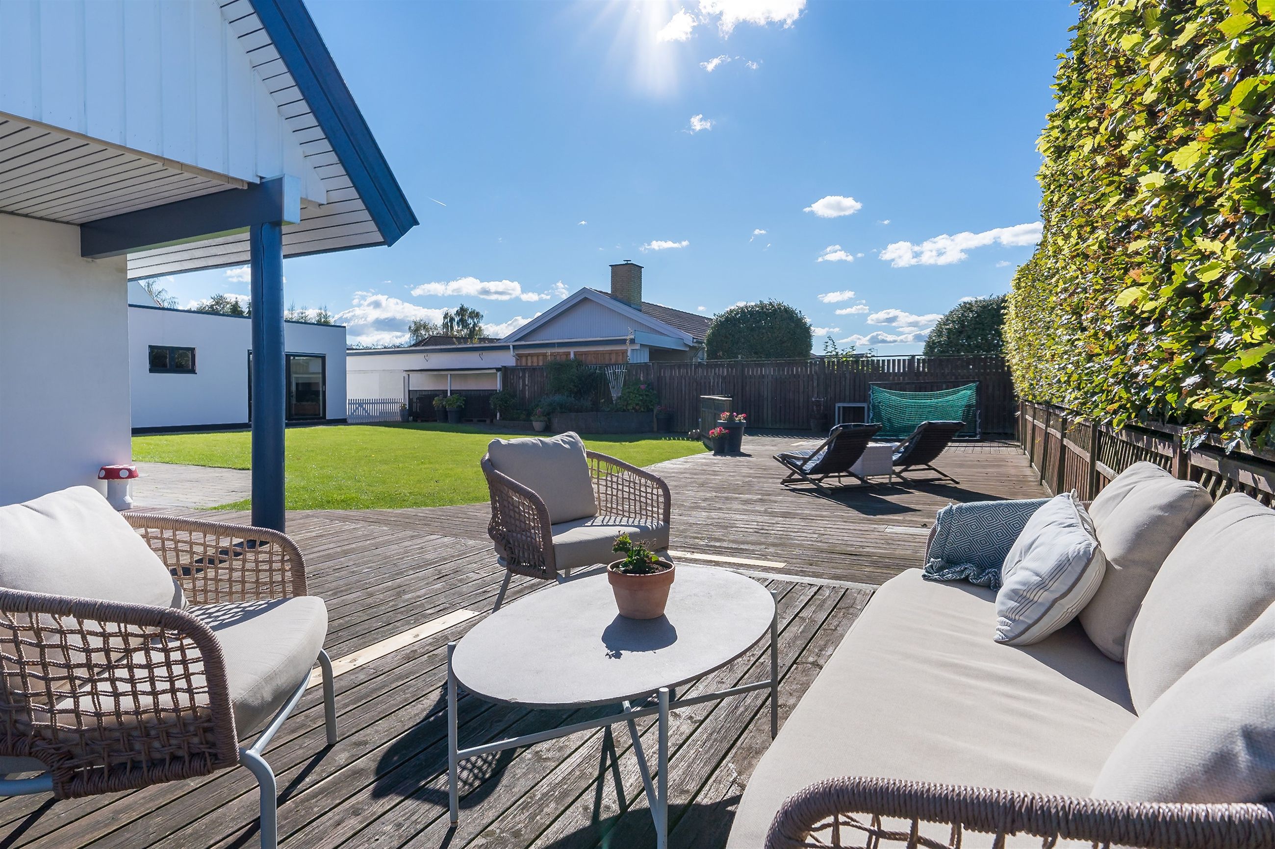 Haven er rummelig, solrig og oplagt til børnefamilien, samt byder på en stor træterrasse, hvor sommeraftener kan nydes med familie og venner.