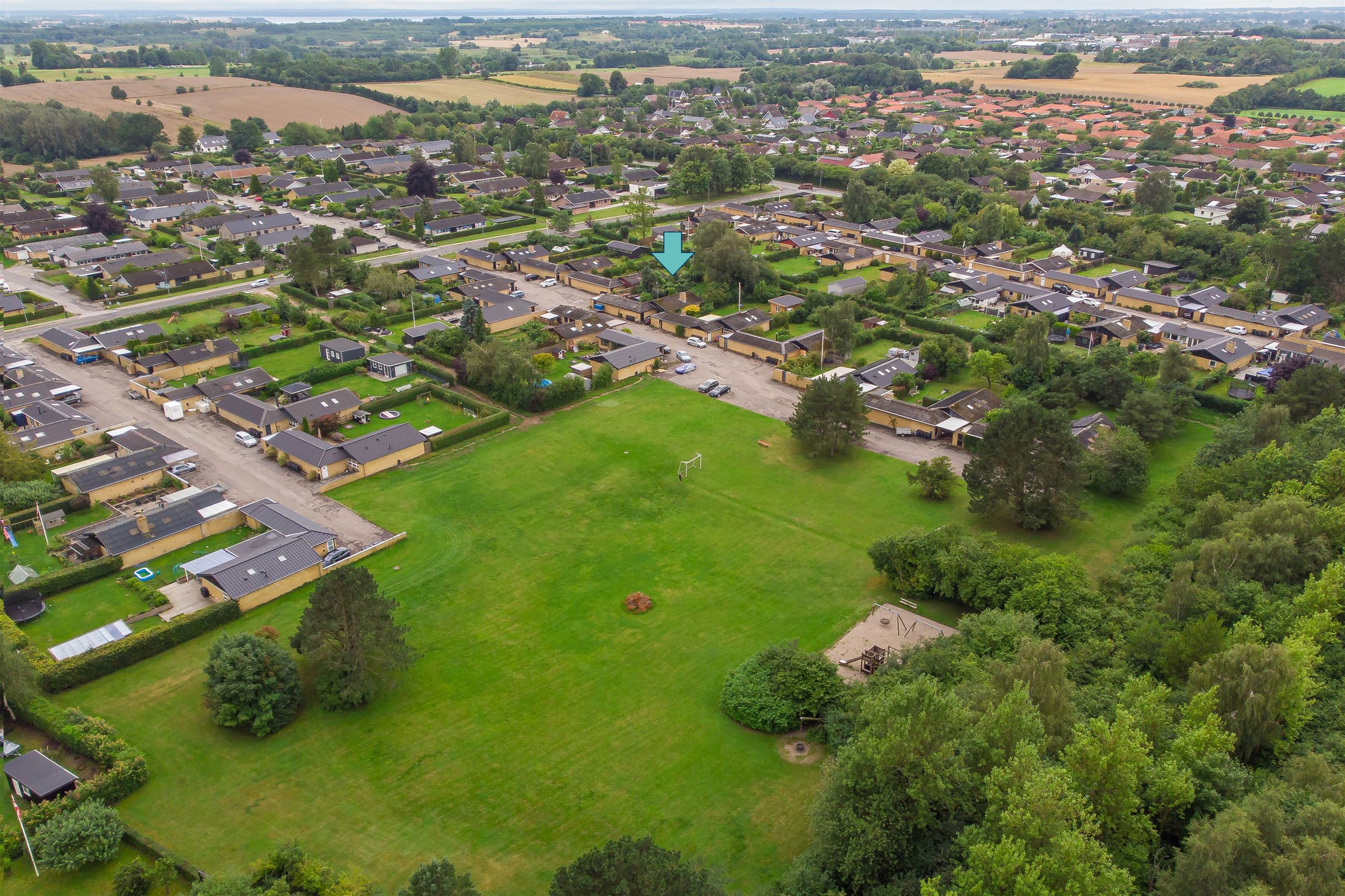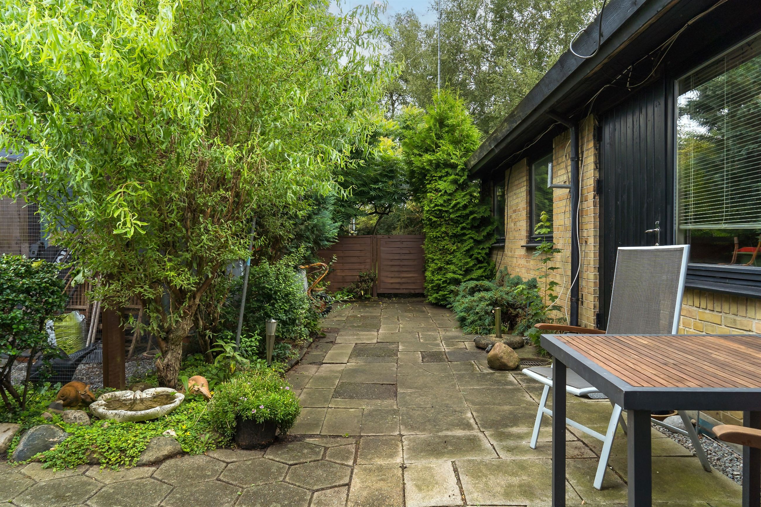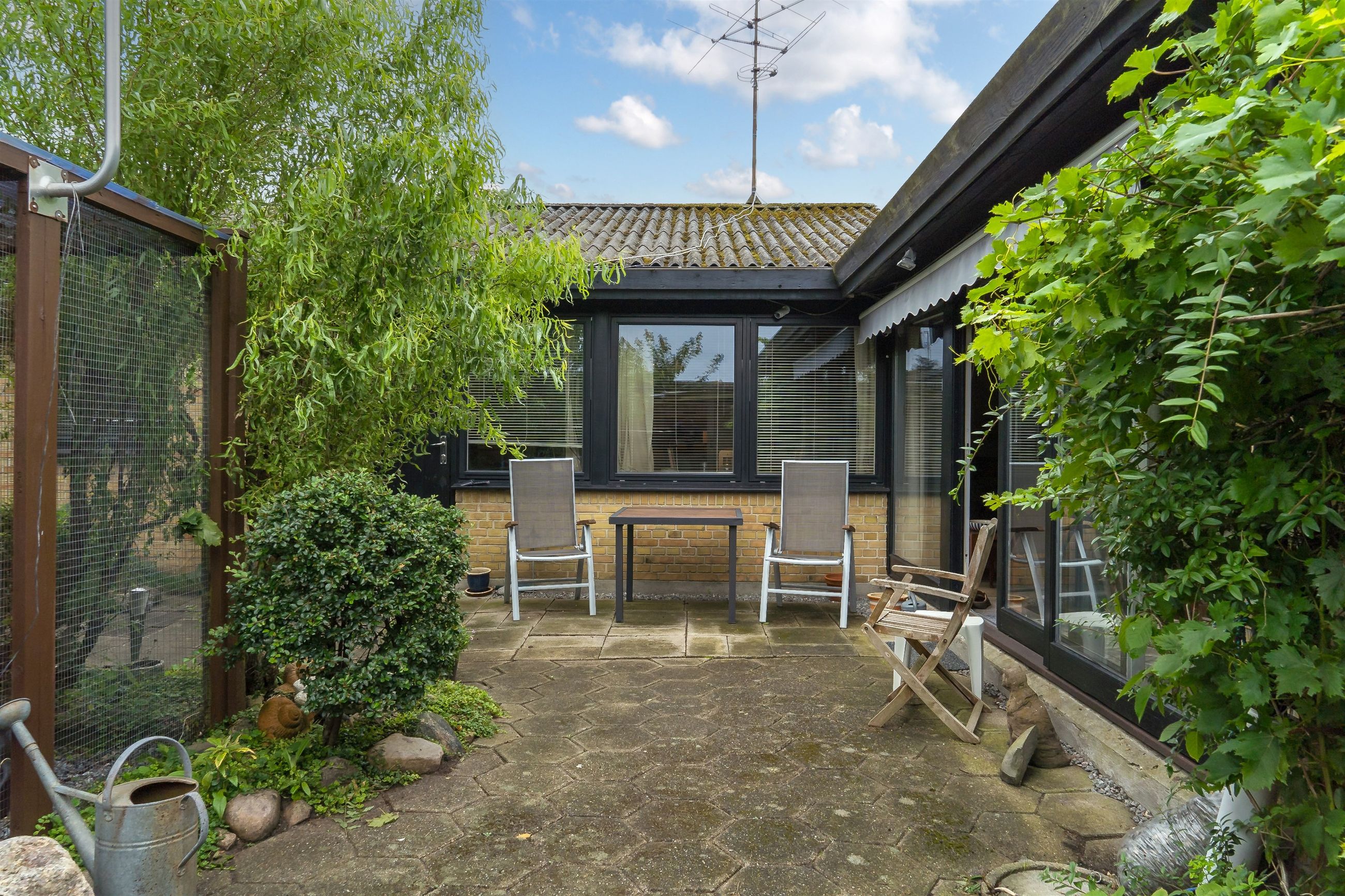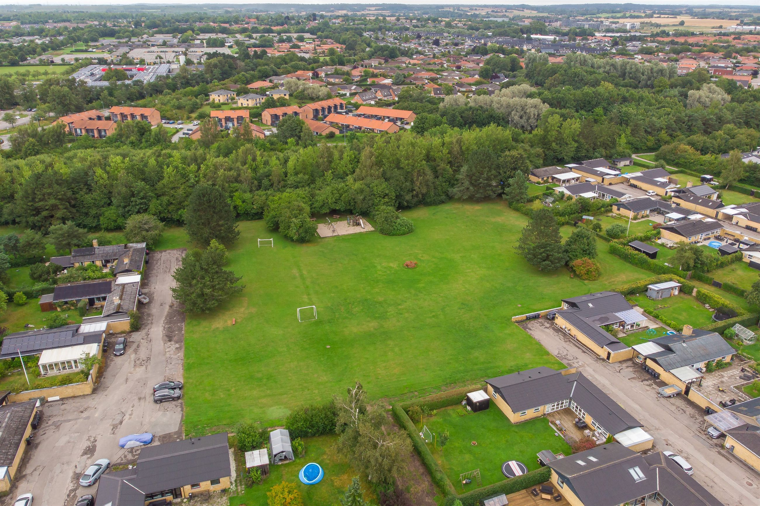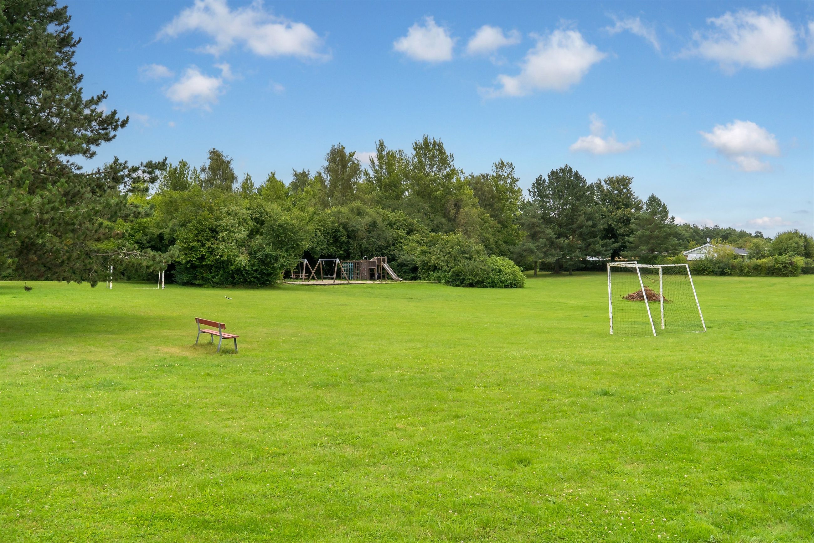 Og så er der haven. Den vender helt rigtigt – mod vest, så solen rammer fra formiddag og følger jer hele dagen. Forestil jer en lækker træterrasse med loungemøbler og pergola, et bålsted i haven hvor ungerne rister skumfiduser, fodboldmål i græsset, en nedgravet trampolin og måske endda en lille pool til de varme sommerdage. I får en have, der er større end de fleste – og det bedste? Den ligger ugeneret og uden spildplads foran huset. Alt pladsen er jeres.