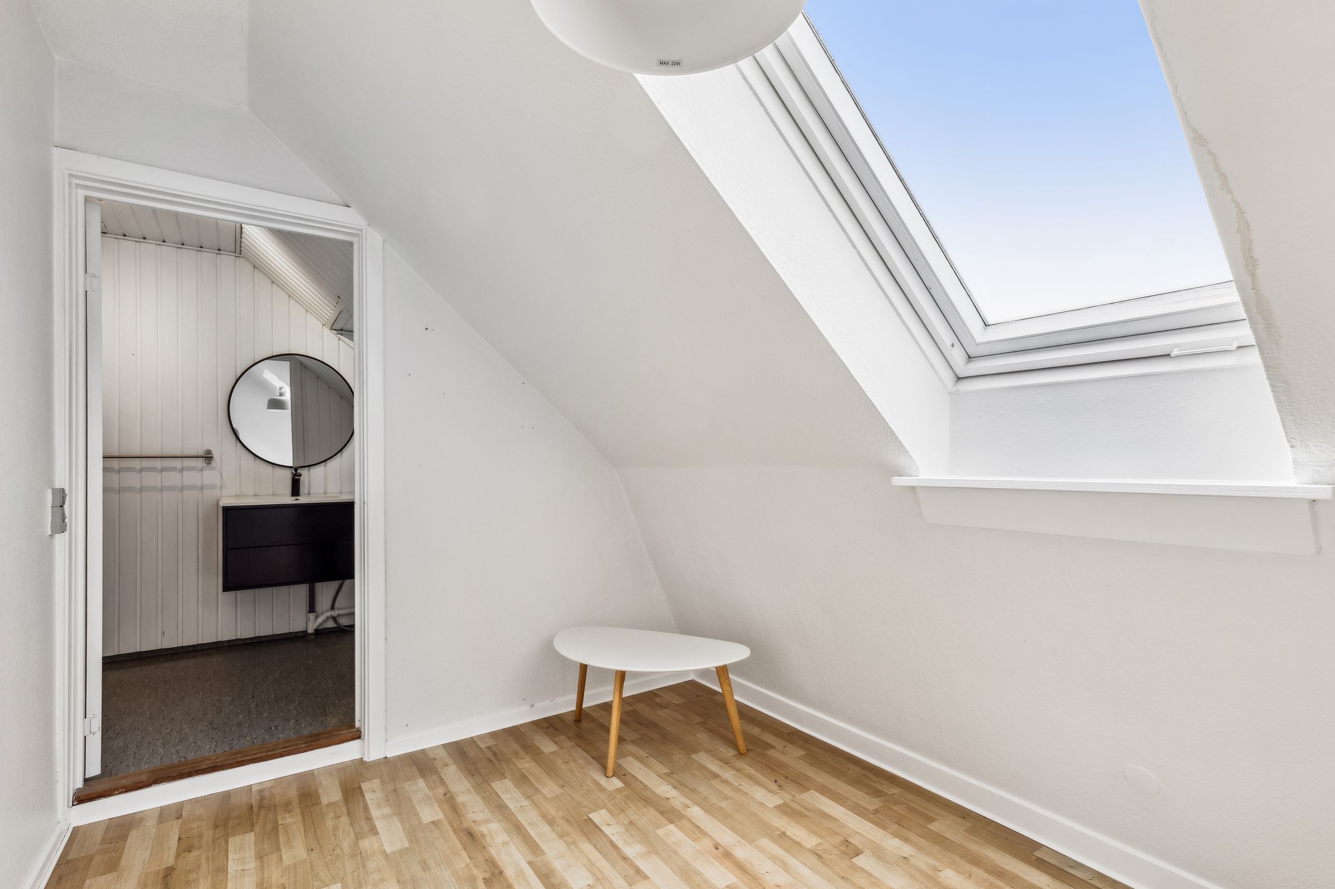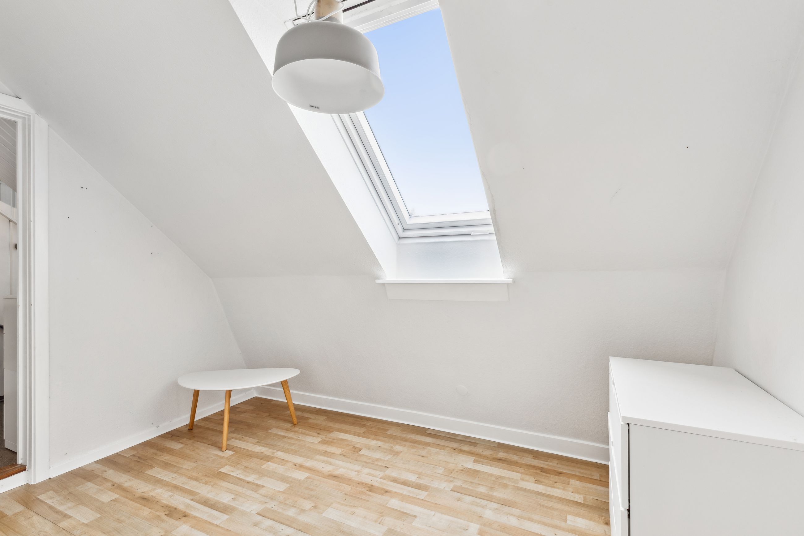 Lejligheden rummer to gode og regulære værelser, der giver mange indretningsmuligheder, uanset om du har brug for soveværelse, kontor eller børneværelse. Den store stue har et skønt lysindfald og en direkte udsigt ned mod Frederikssund Station, hvilket giver en unik kombination af byliv og privatliv.