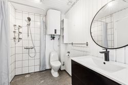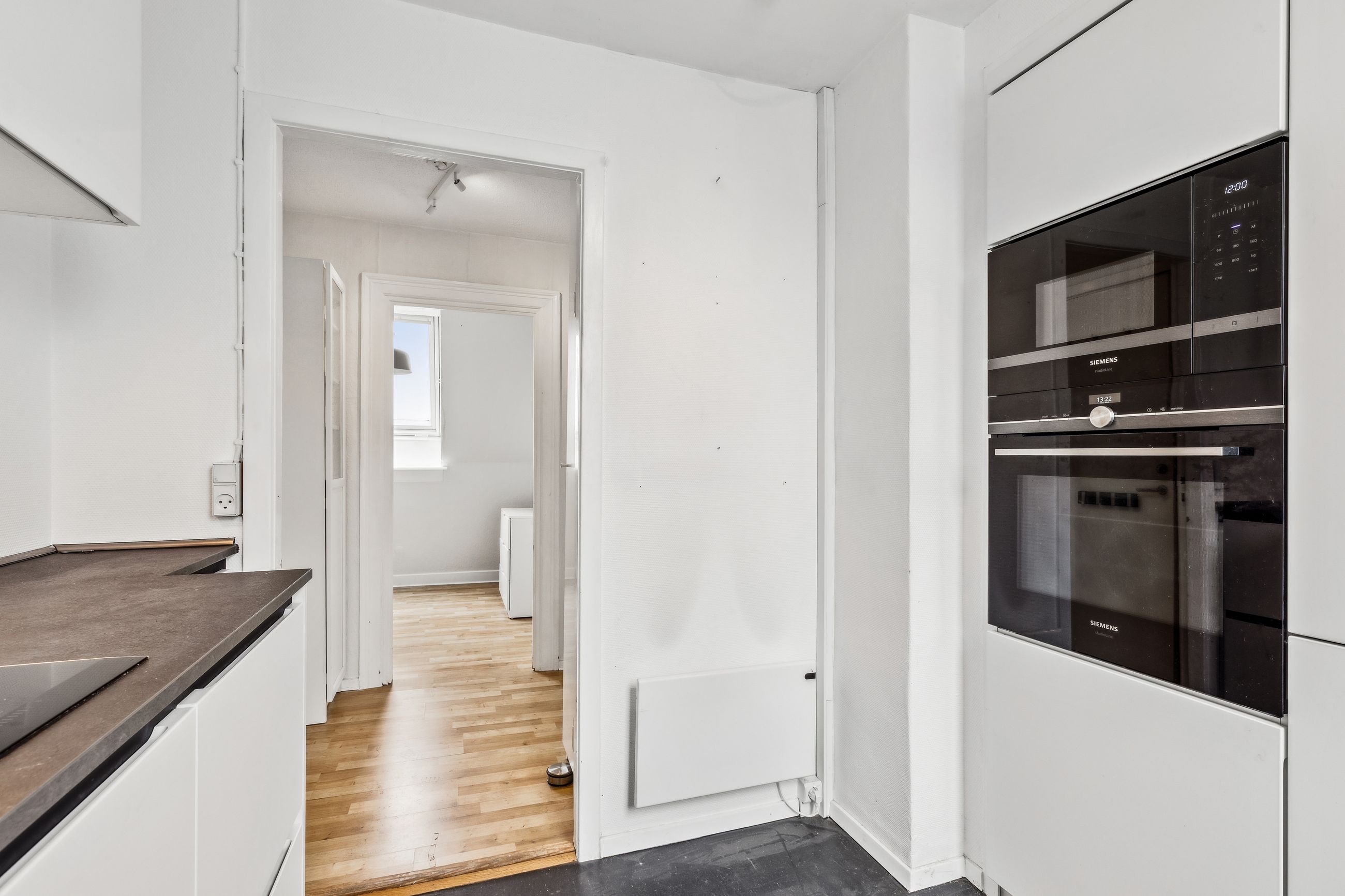 Køkkenet er holdt i et tidløst design med god bord- og skabsplads - perfekt til dig, der sætter pris på både æstetik og funktionalitet. Der er installeret to ovne, som er placeret i en komfortabel arbejdshøjde, hvilket gør madlavningen ekstra bekvem. Badeværelset fremstår i god stand og er indrettet med separat bruseniche.