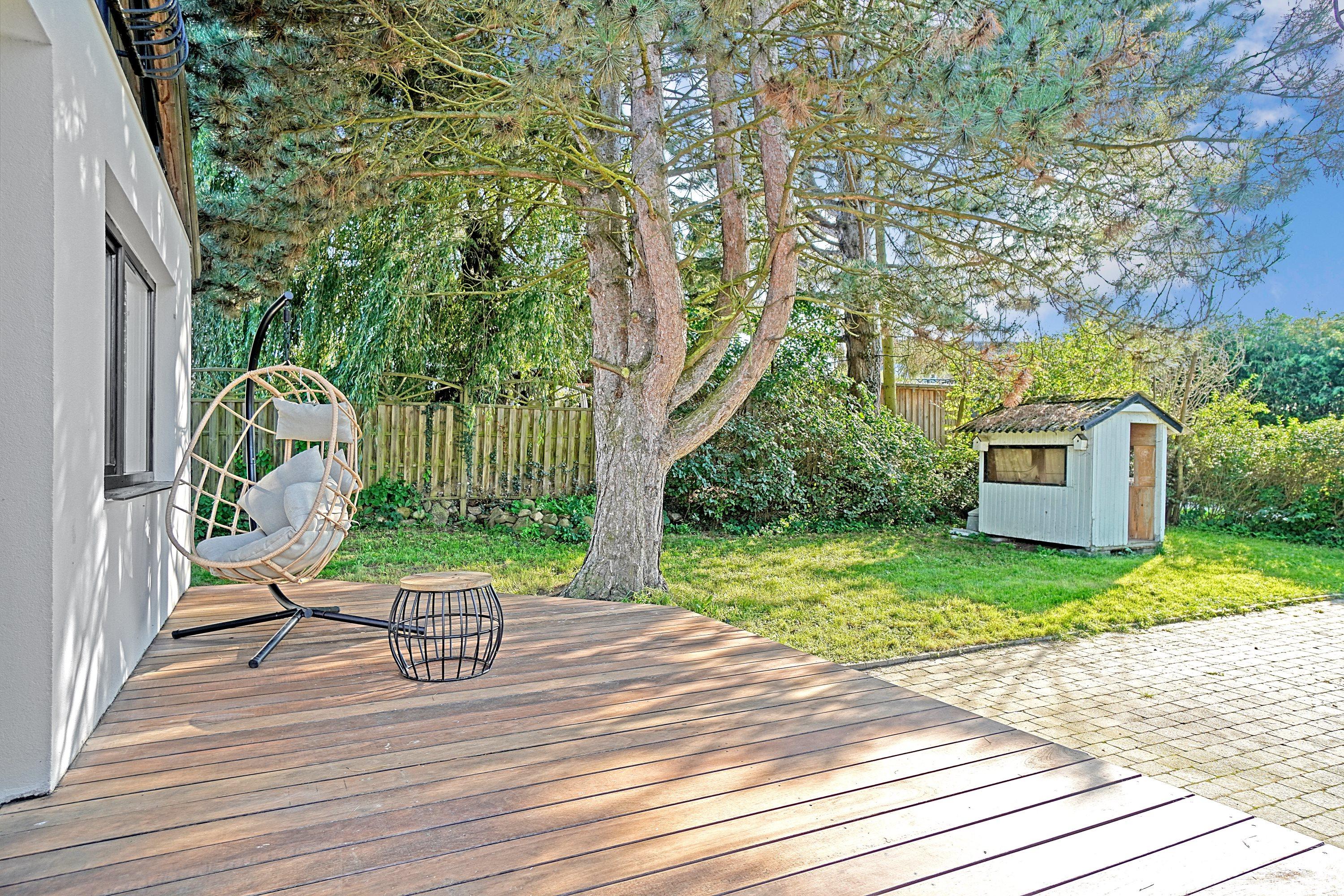 På Vinkelvej 3 i Knabstrup finder du denne indflytningsklare bolig, som med sine 75 kvadratmeter fordelt på to plan tilbyder moderne og praktiske løsninger for både singler, par og mindre familier. Boligen har gennemgået en totalrenovering og fremstår i flot stand med et stilrent interiør fra Bolia