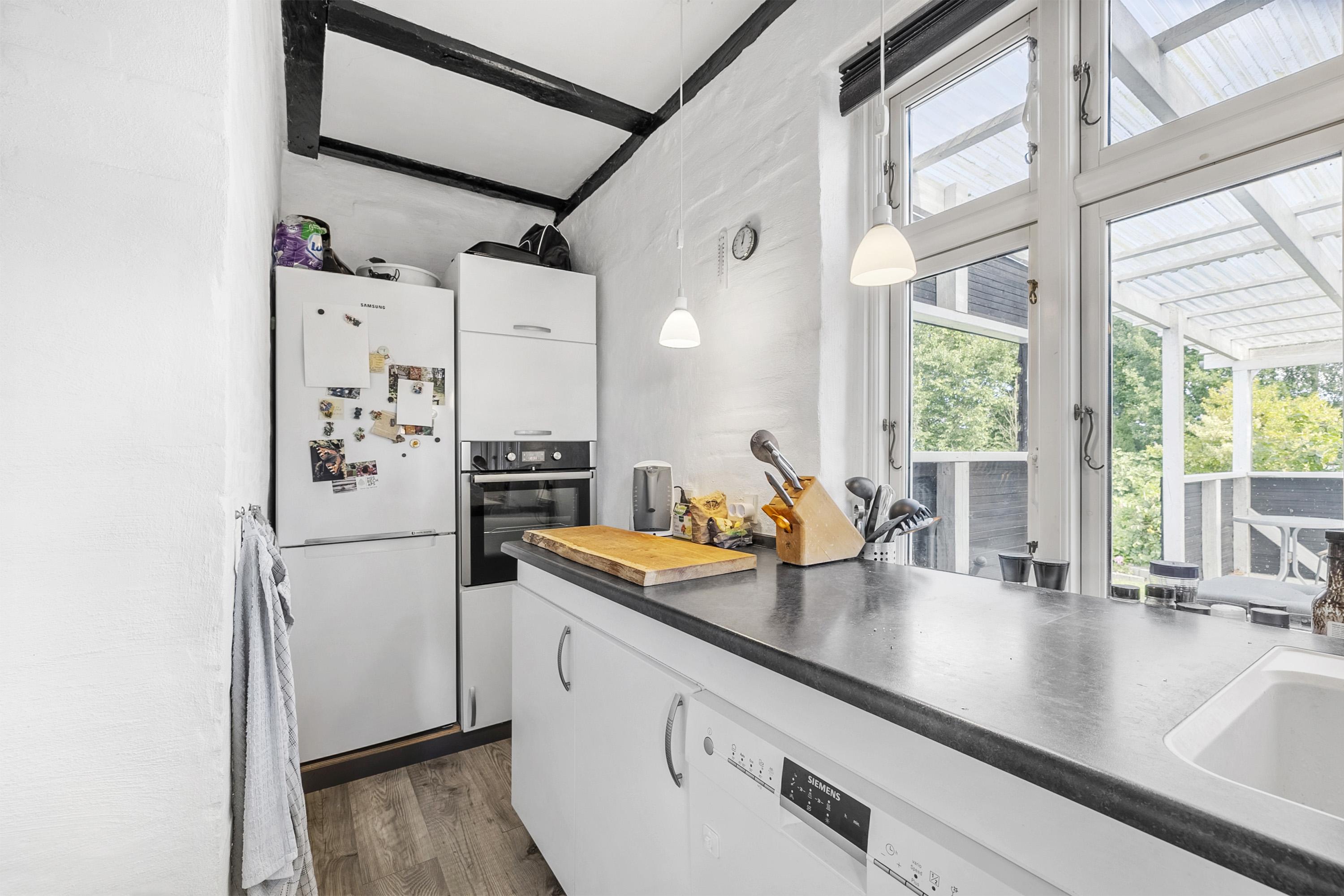 Den helt lukkede have med en stor, overdækket terrasse og gode udfoldelsesmuligheder for børnene tilføjer denne villa på Kathrinevej 11 i Holbæk en høj attraktionsværdi. Selve huset er istandsat ad flere omgange, og restaureringen er meget original, så man får fornemmelsen af den oprindelige charme