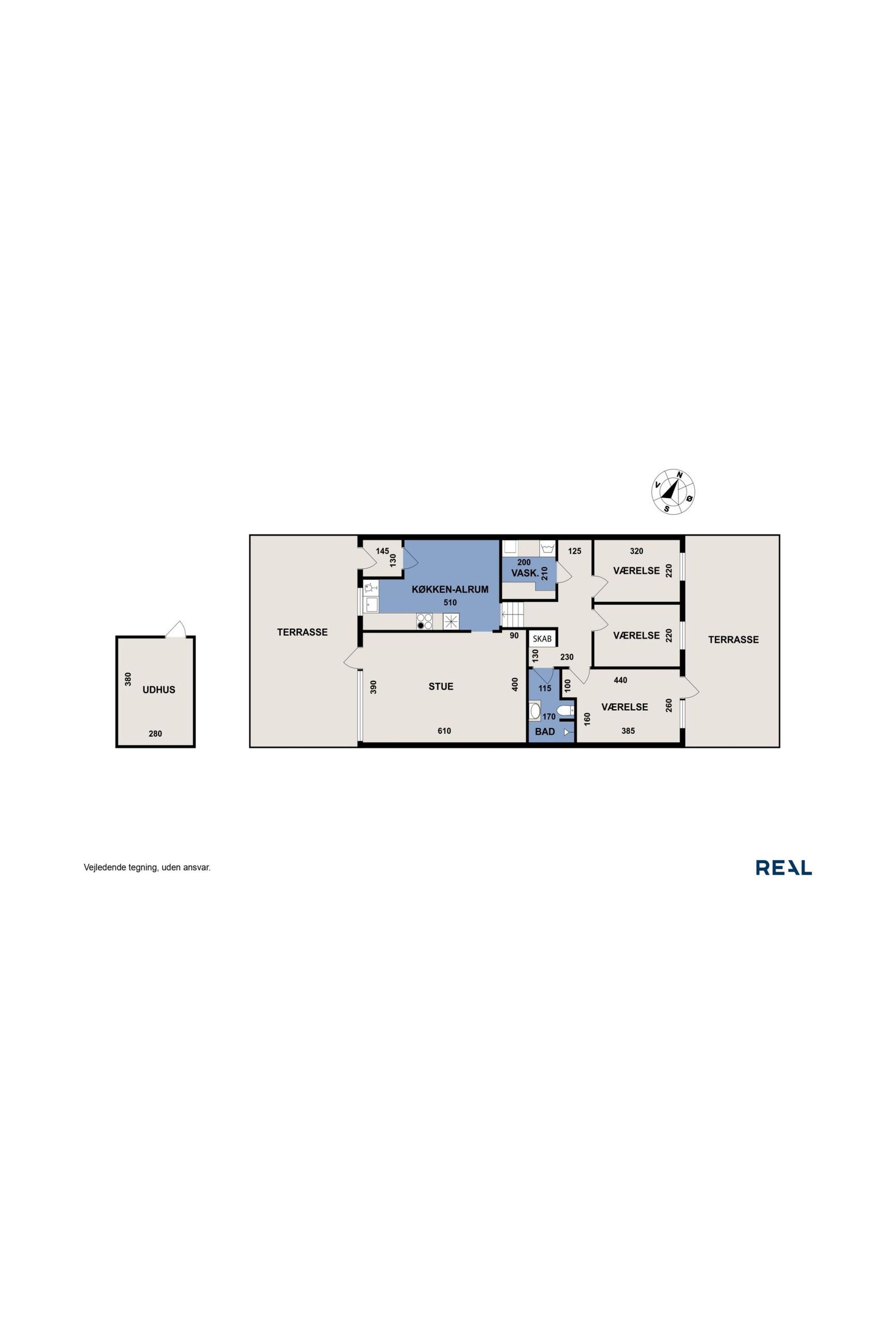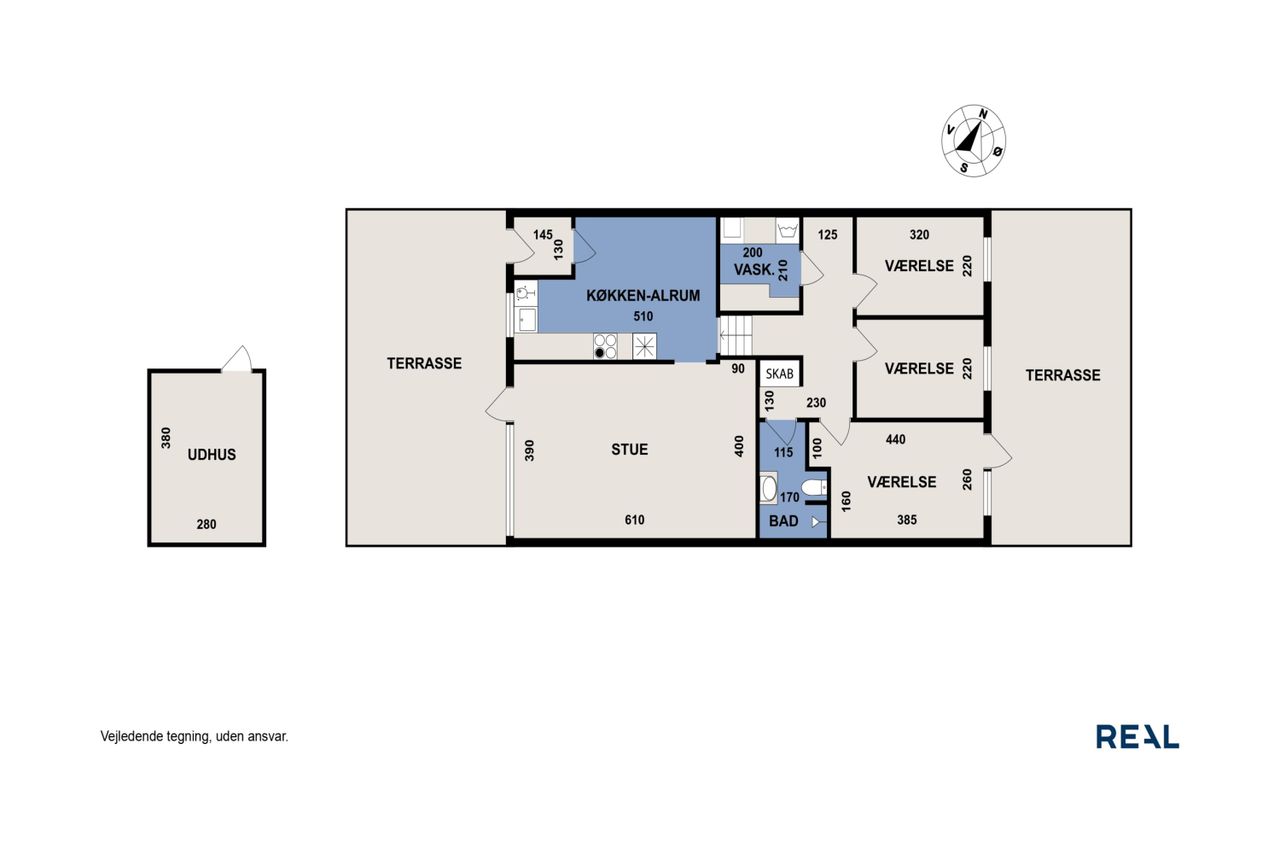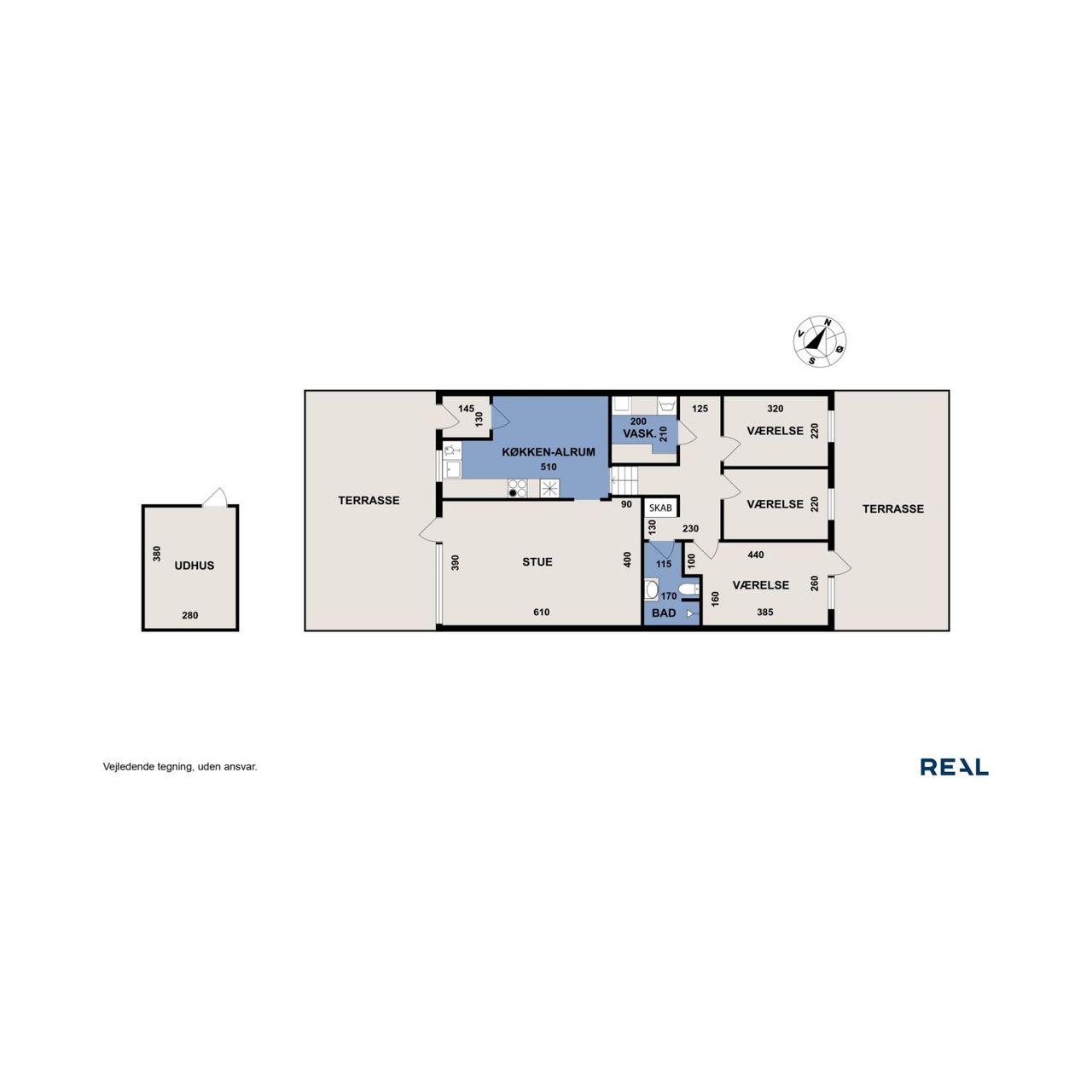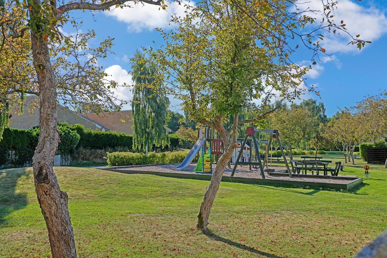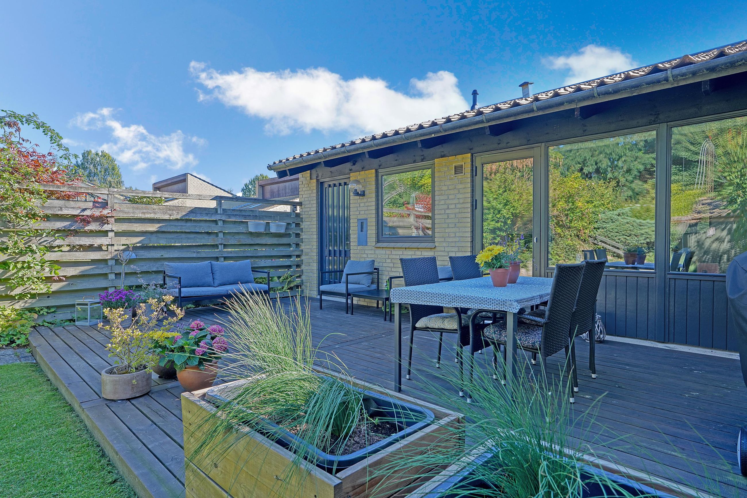 Boligen er fuldstændig indflytningsklar og har skønne udearealer med solrige terrasser, hvor både hverdag og fritid kan nydes i rolige omgivelser.
