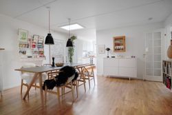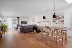 Gennem hele huset kan I nyde de gavmilde lysindfald, der strømmer ind gennem de store vinduespartier. Faciliteterne i huset trænger her og der til mindre opdateringer, men alt i alt fremstår boligen lys, velholdt og indbydende og her er overalt indrettet i et tidløst udtryk.