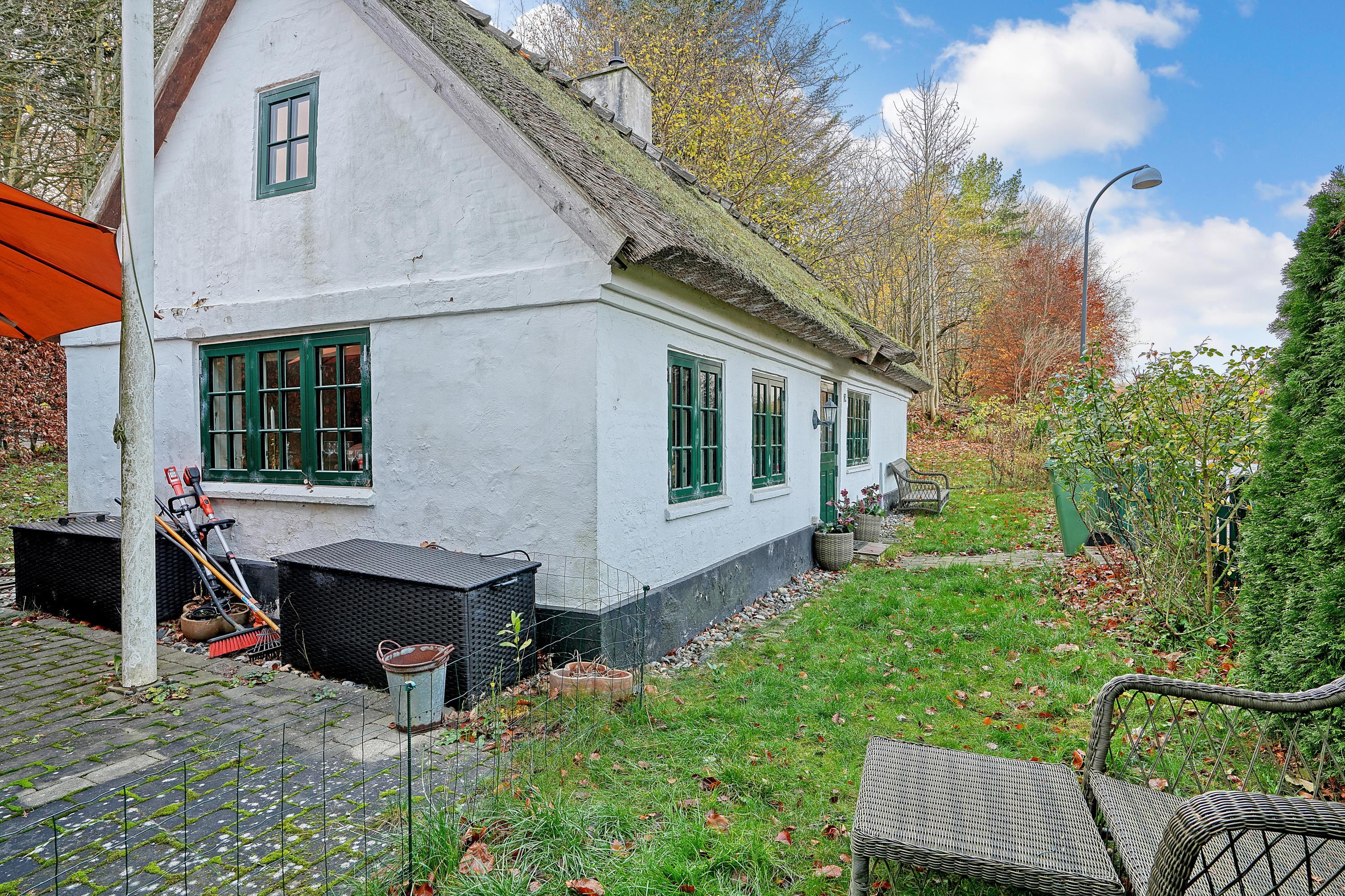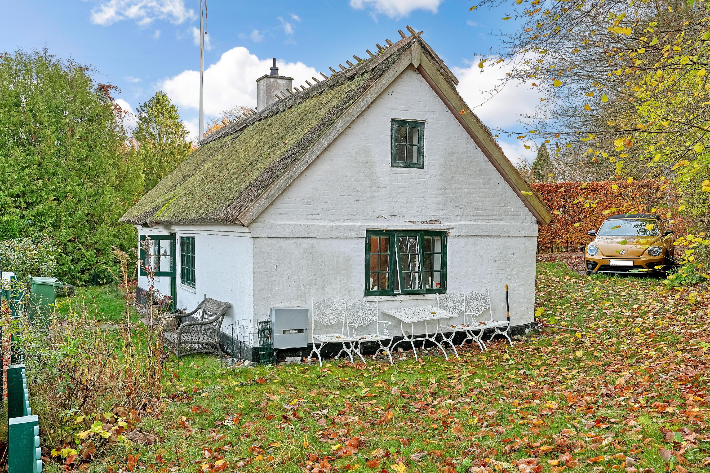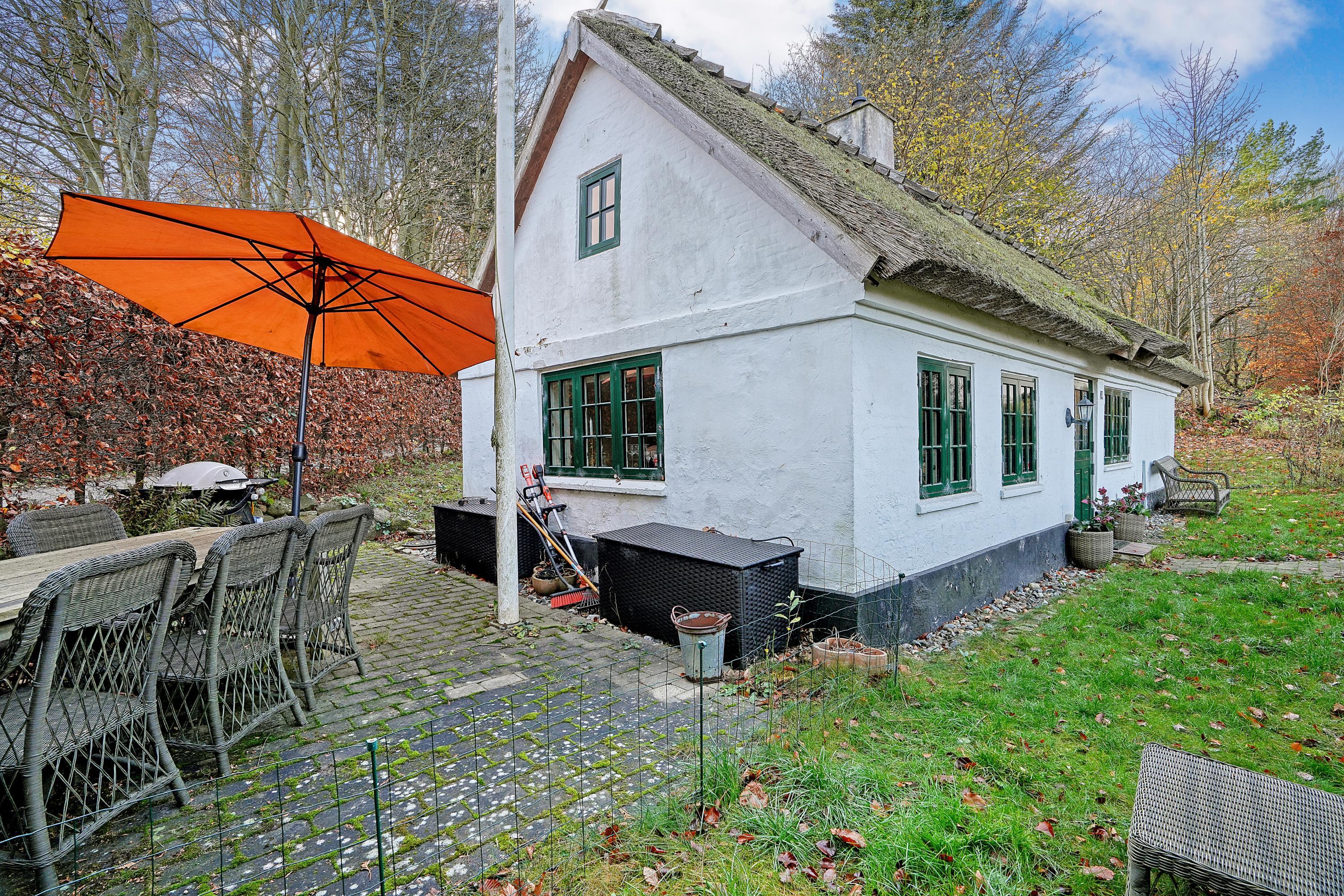 Hist hvor vejen slår en bugt ligger det skønneste lille stråtækte hus direkte til skoven i det attraktive Høsterkøb.