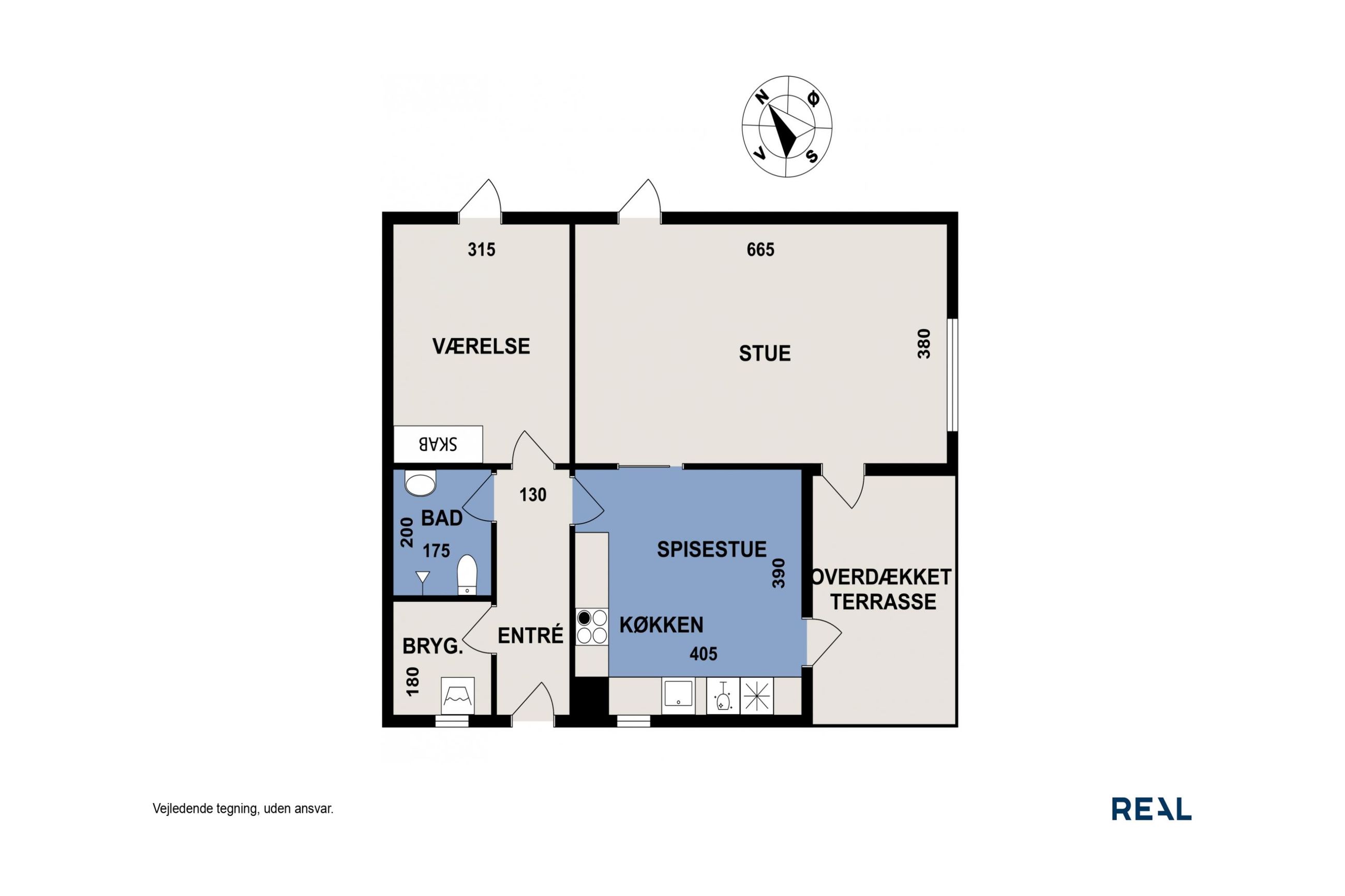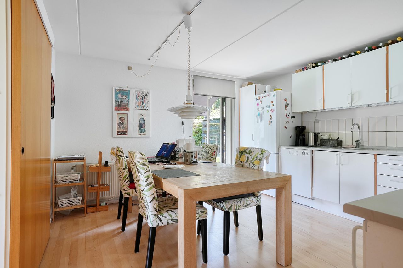 Boligen der har ejerlejlighedsstatus indeholder entre med bryggers/fyrrum, badeværelse og stort køkken med spiseplads samt udgang til terrasse med markise og haven. Dejlig stor stue med 2 udgange til haven samt stort soveværelse med skabsplads og udgang til haven. Ved indgang til boligen er der en gårdhave, hvor der også et stort udhus.