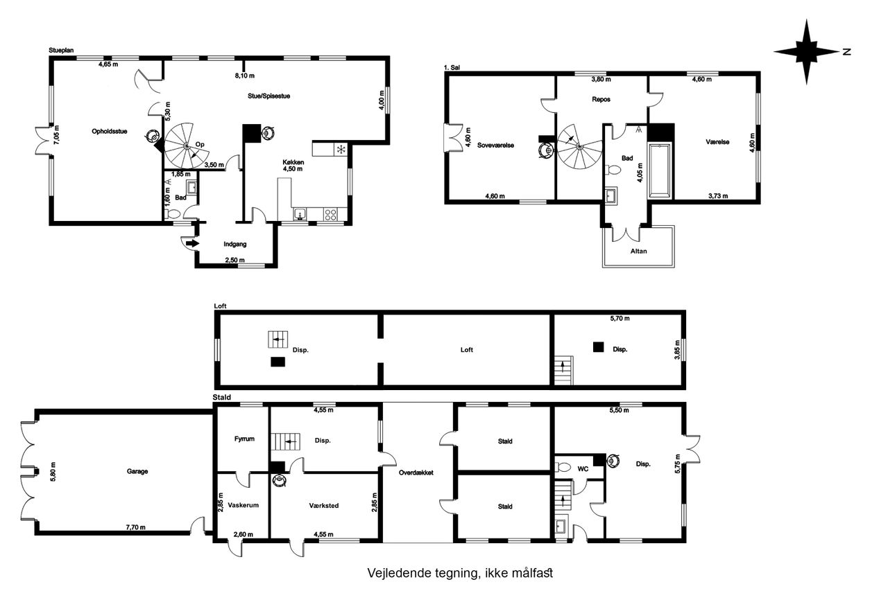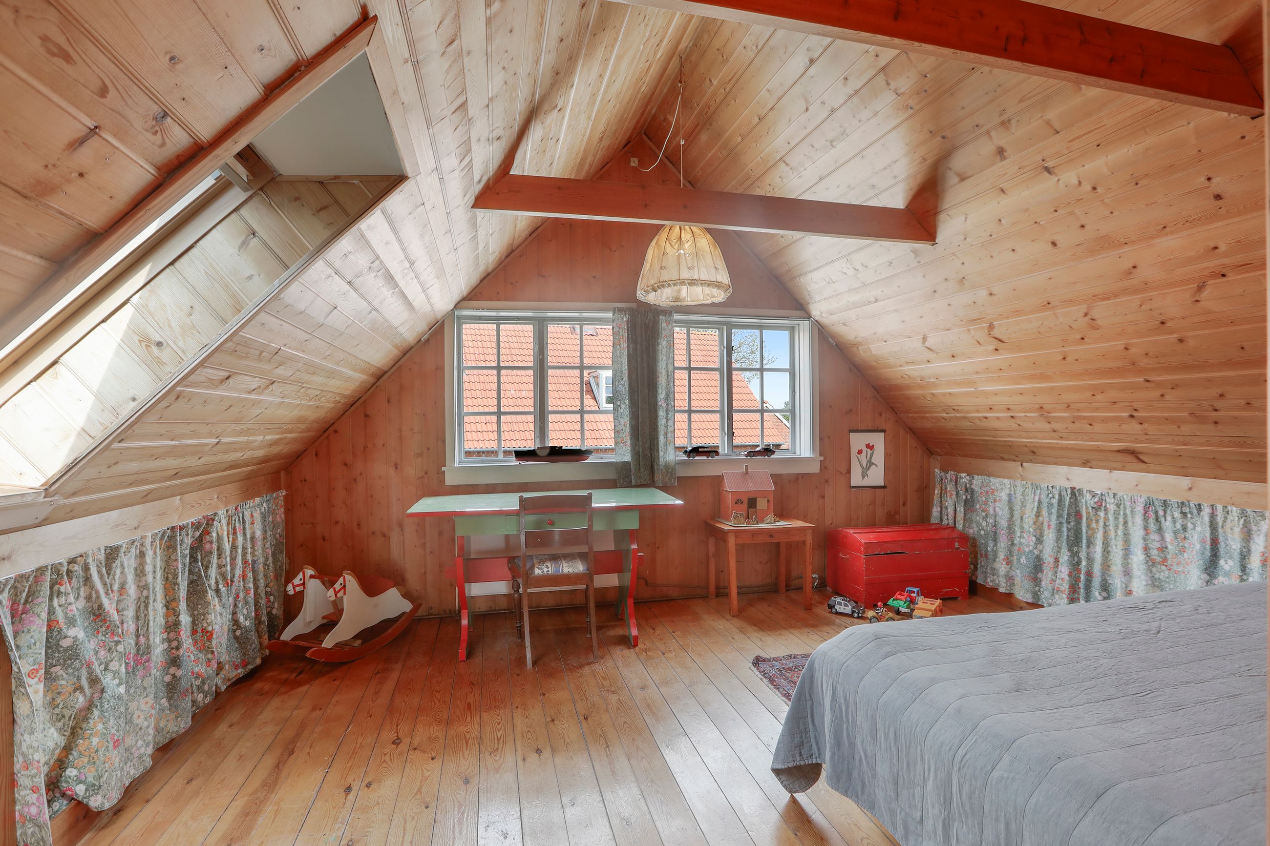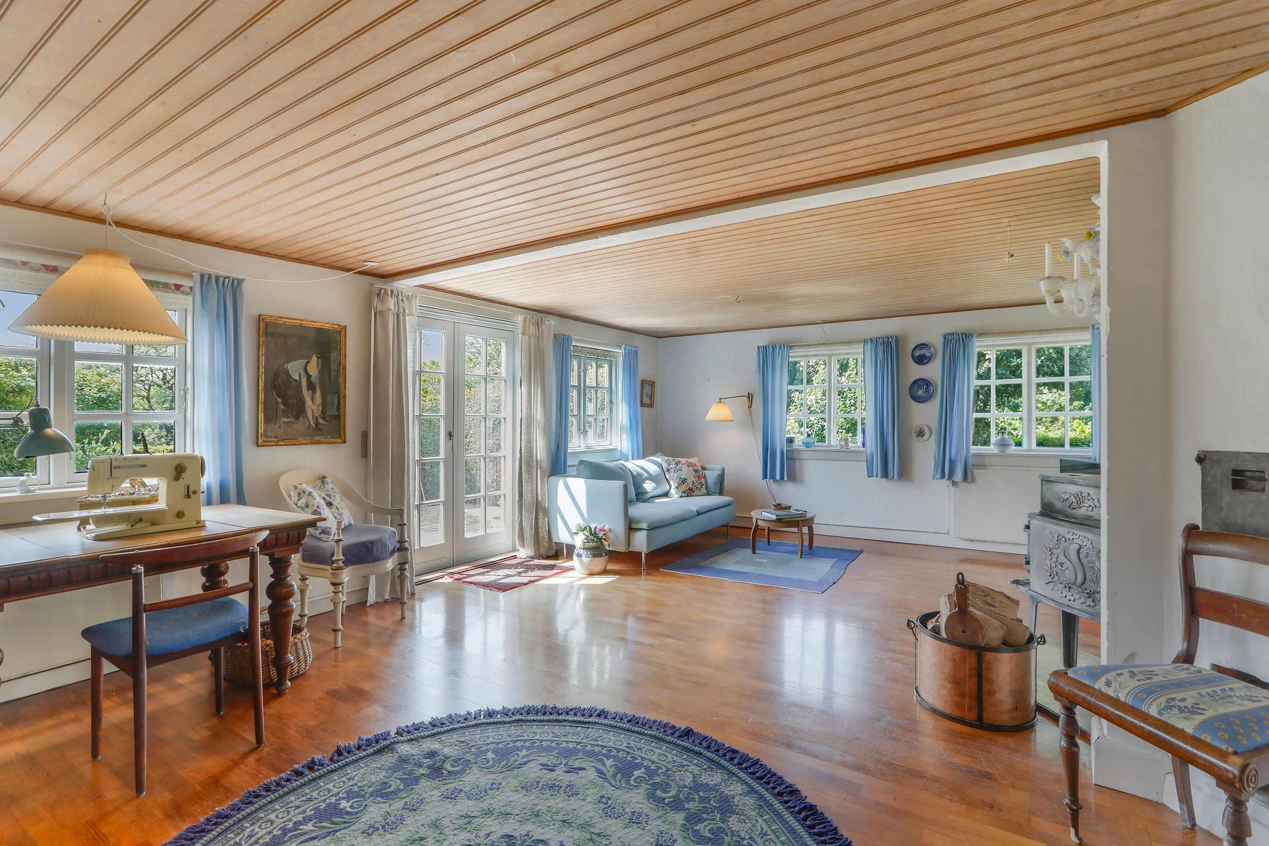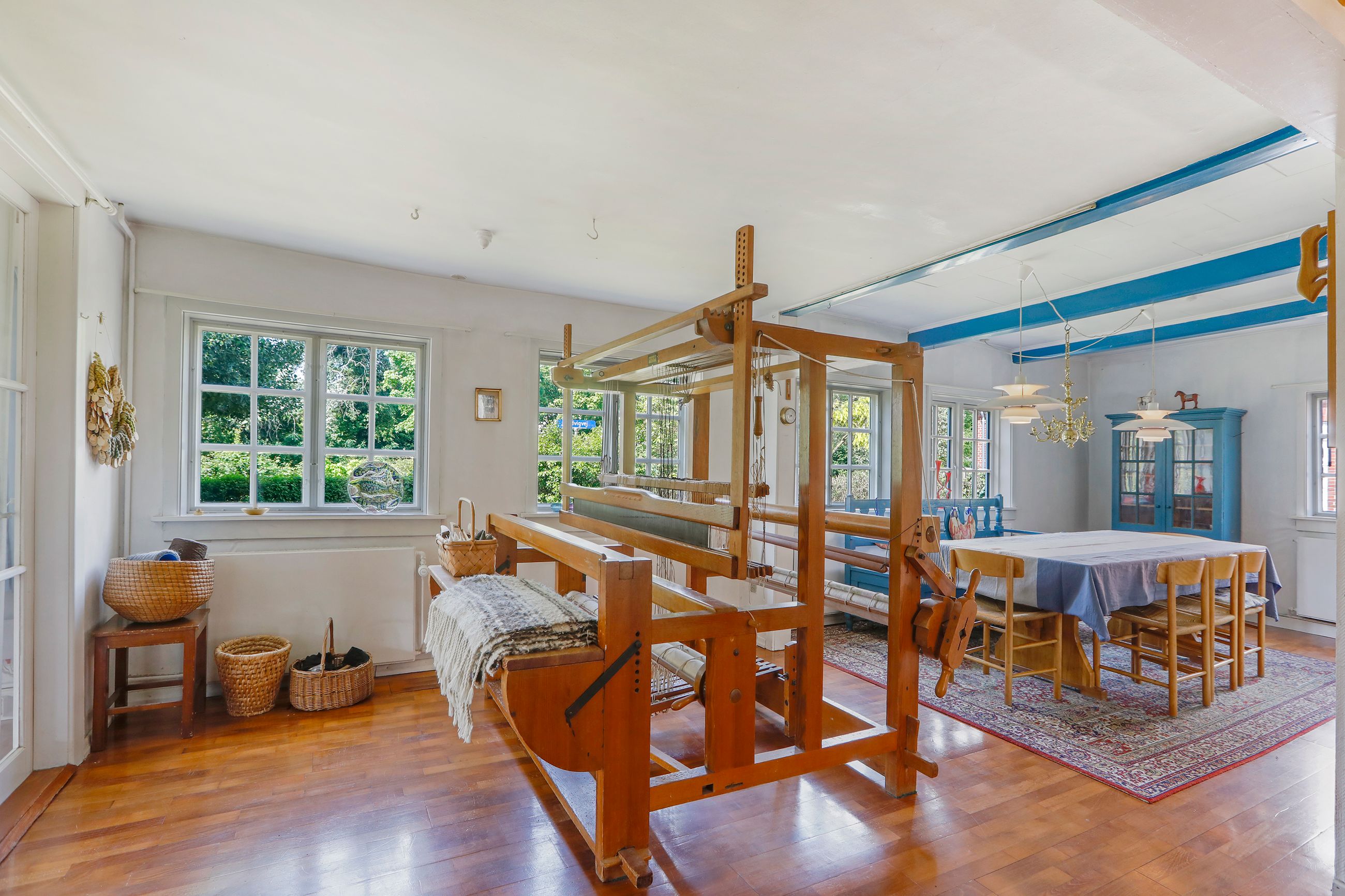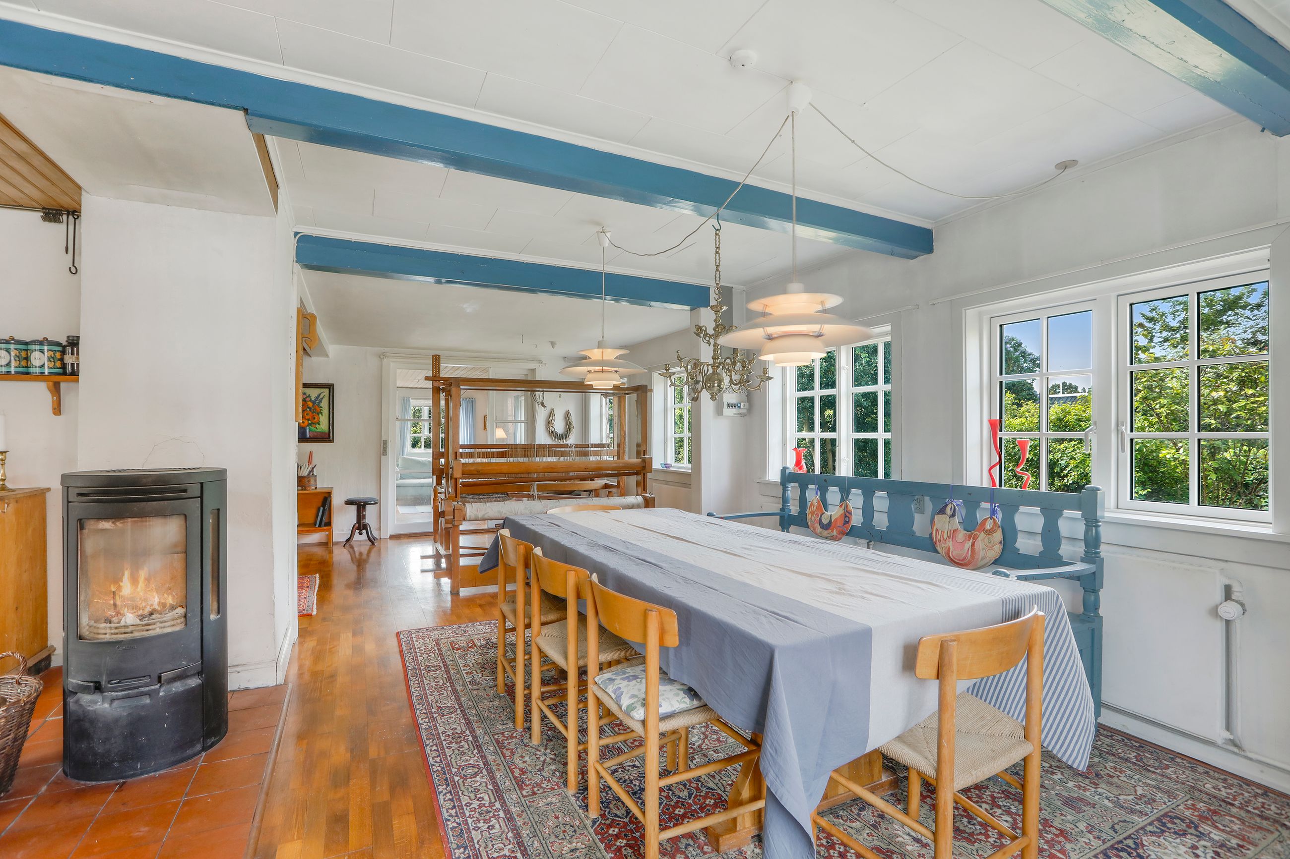 Hovedhus med rummelig entré og ældre flisebadeværelse. Snedkerkøkken i åben forbindelse med spisestue. Glasdøre til stor opholdsstue med udgang til sydvendt terrasse. 1. sal med stort repos. 2 store gavlværelser og badeværelse med både brus og kar. Udgang til mindre tagterrasse med udsigt til den skønne have. Udlænge indrettet til enten gæster eller teenagere med entré, toilet, stor stue og 1. sal med værelse. Derudover 2 separate stalde, værksted i flere rum, vaske- og fyrrum samt 1. sal til opbevaring og meget mere.