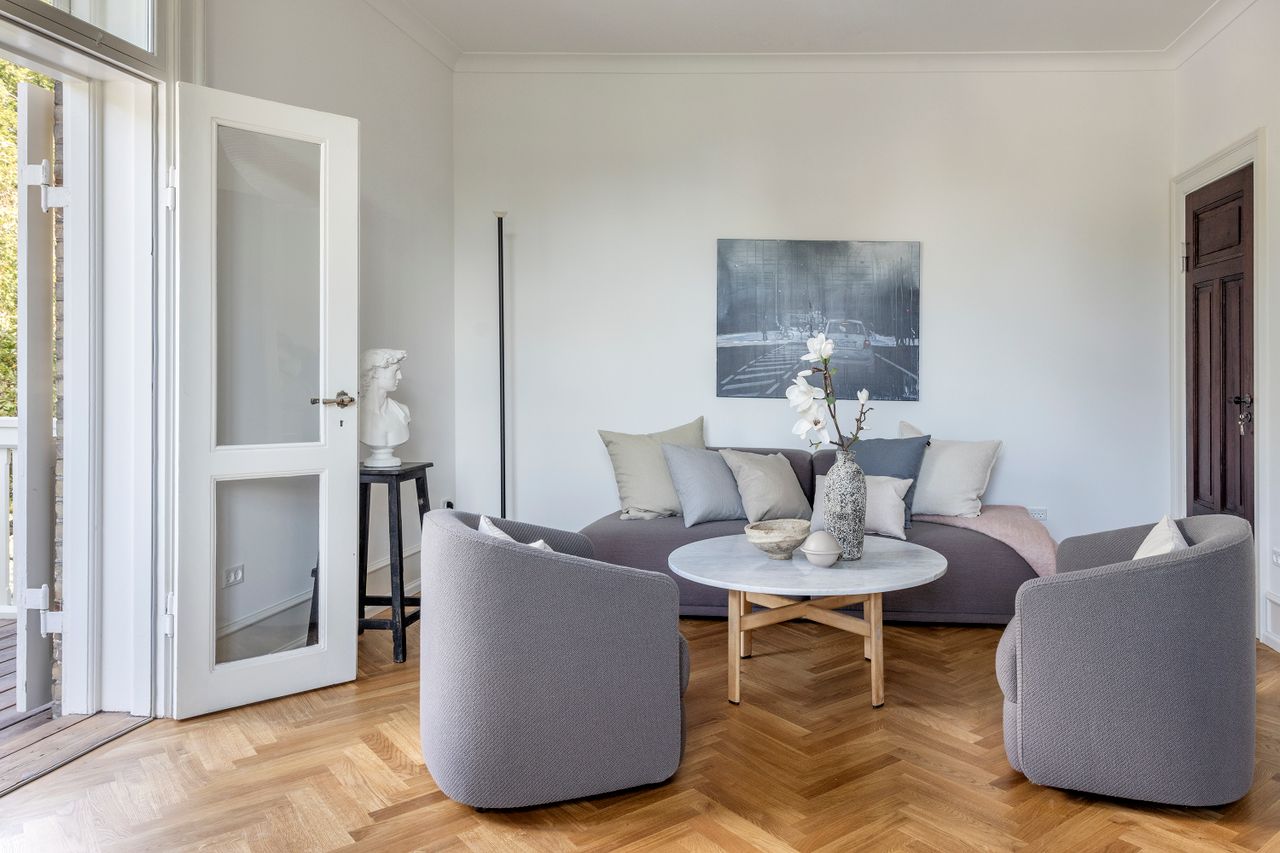 En bolig, der hvad lydisolering angår langt overgår kravene til moderne byggeri, og hvor man - som følge af en høj kælder og højt til loftet i stueetagen - på 1. sal er højt hævet over omgivelserne. Her er forudsætningerne skabt for, at man kan nyde privatlivet. Ingen over og ingen ved siden af, og kun den kontakt med beboerne i stueetagen som er nødvendig eller ønskelig.