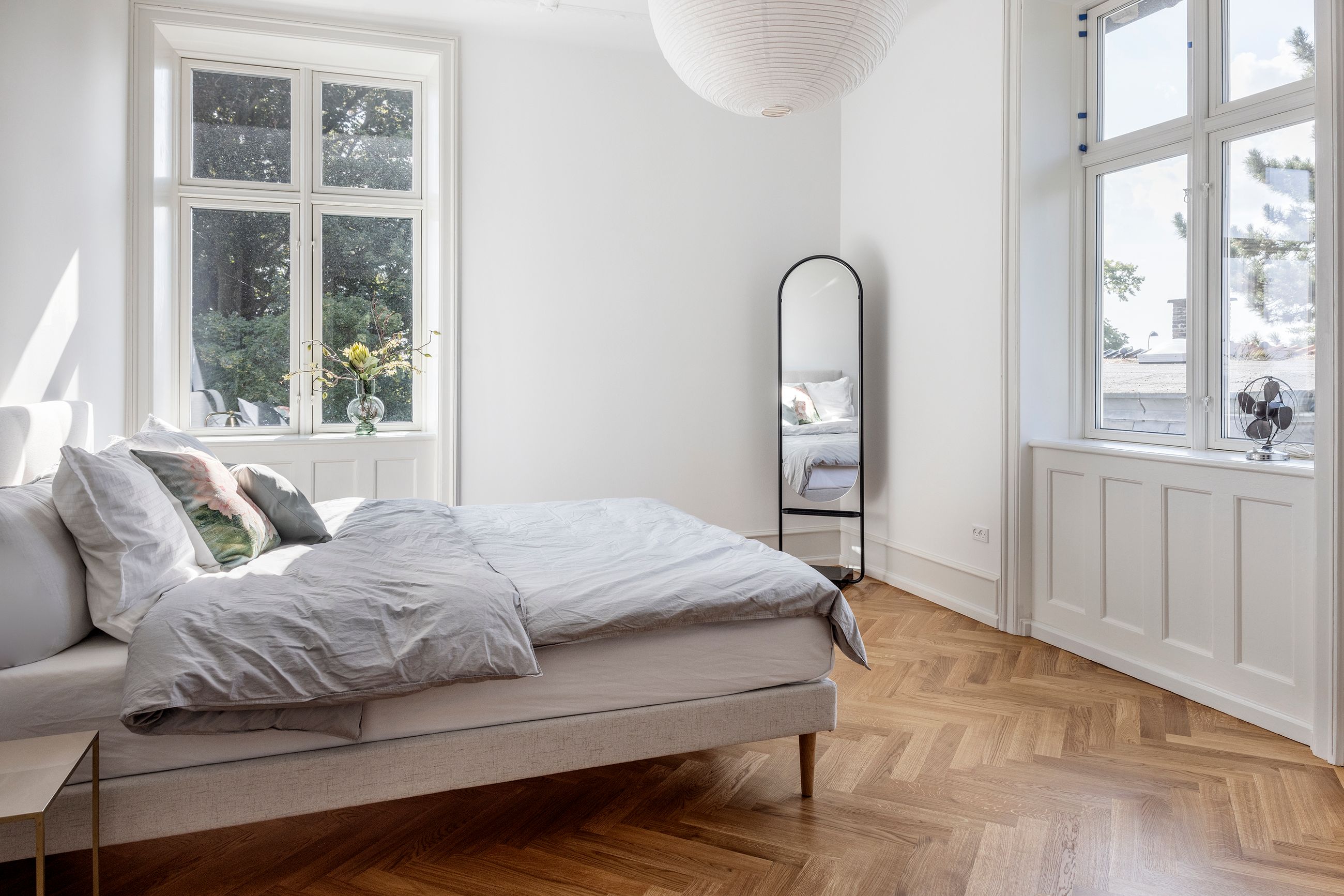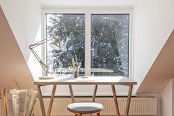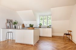 Alt er renoveret indenfor de seneste år. Nyt gasfyr, nye el- og vandinstallationer, isolering, flotte egetræsparketgulve med gulvvarme, total lydisolering mod stueetagen og 3-lags støjdæmpende ruder overalt i lejligheden.