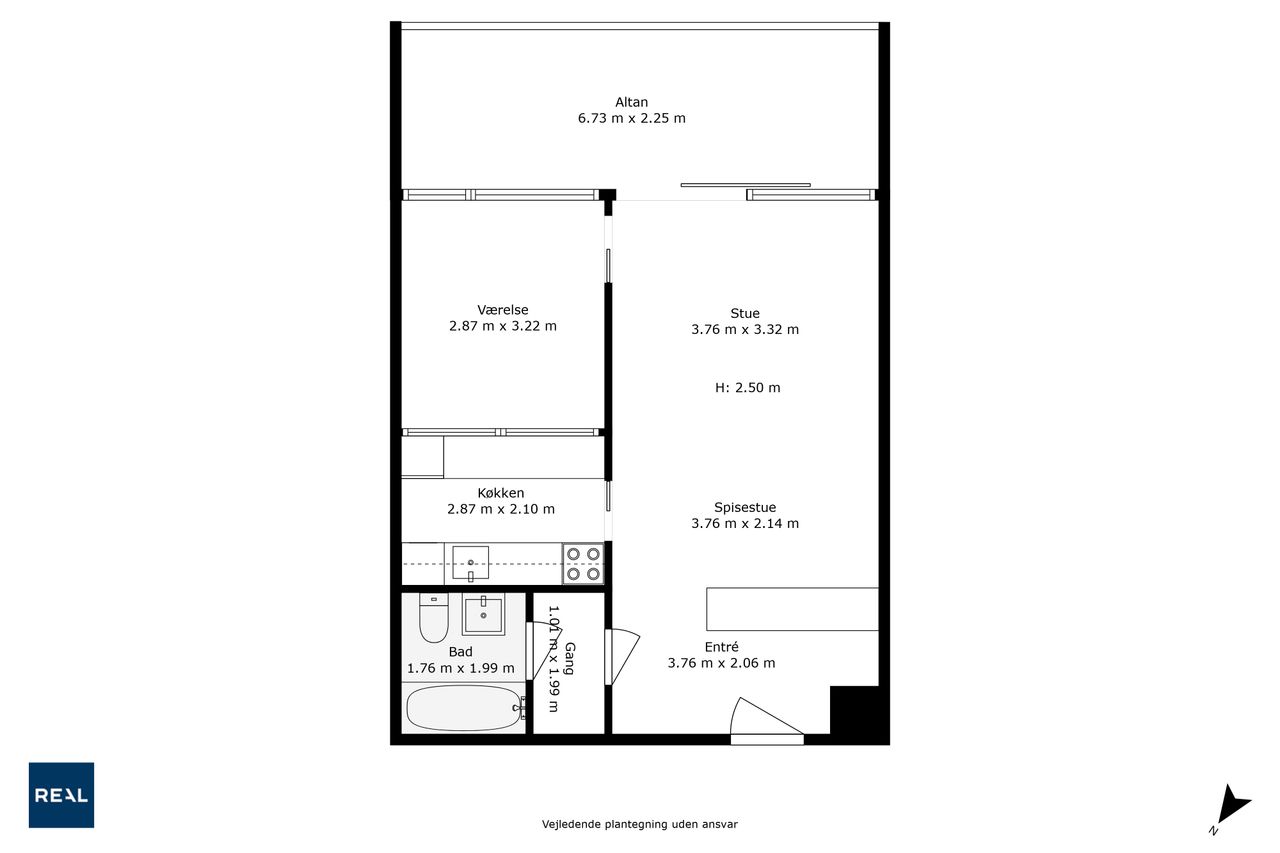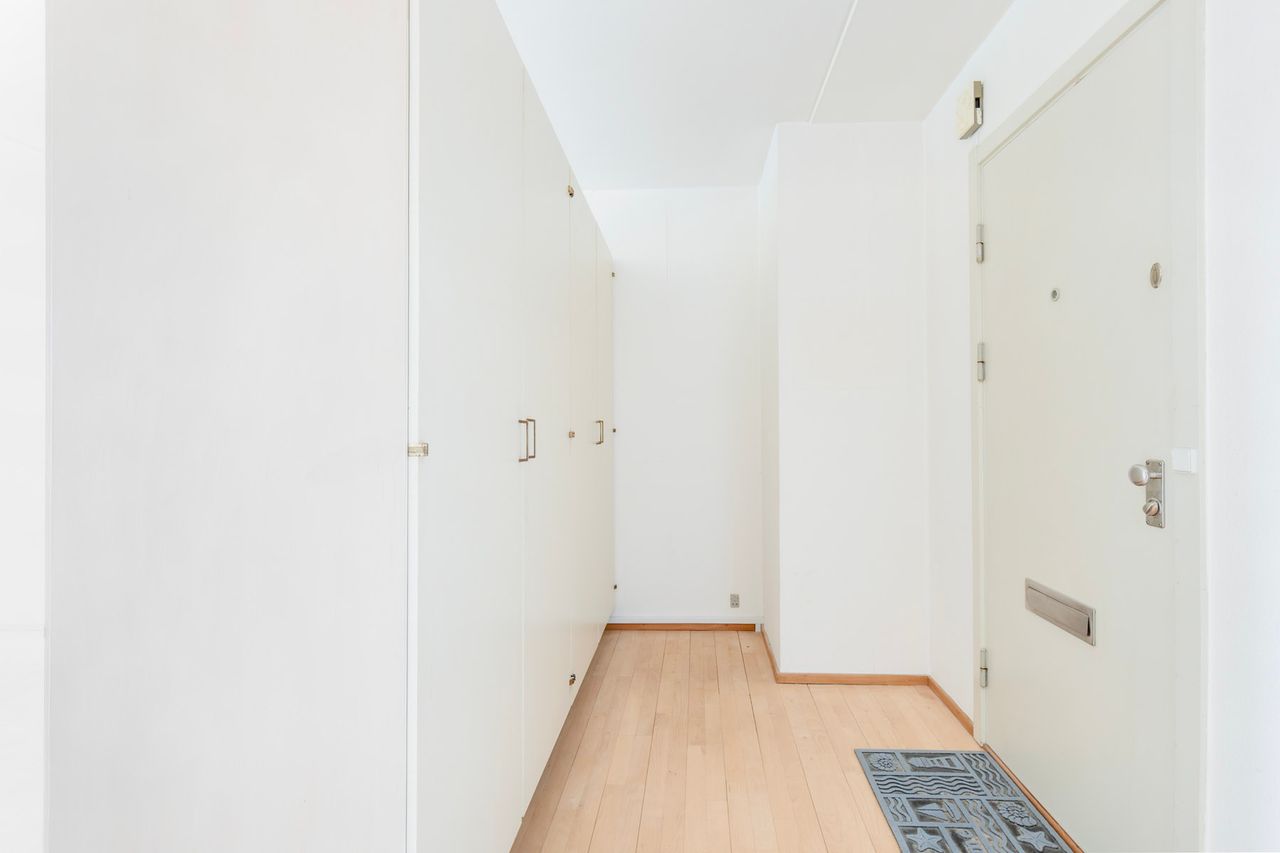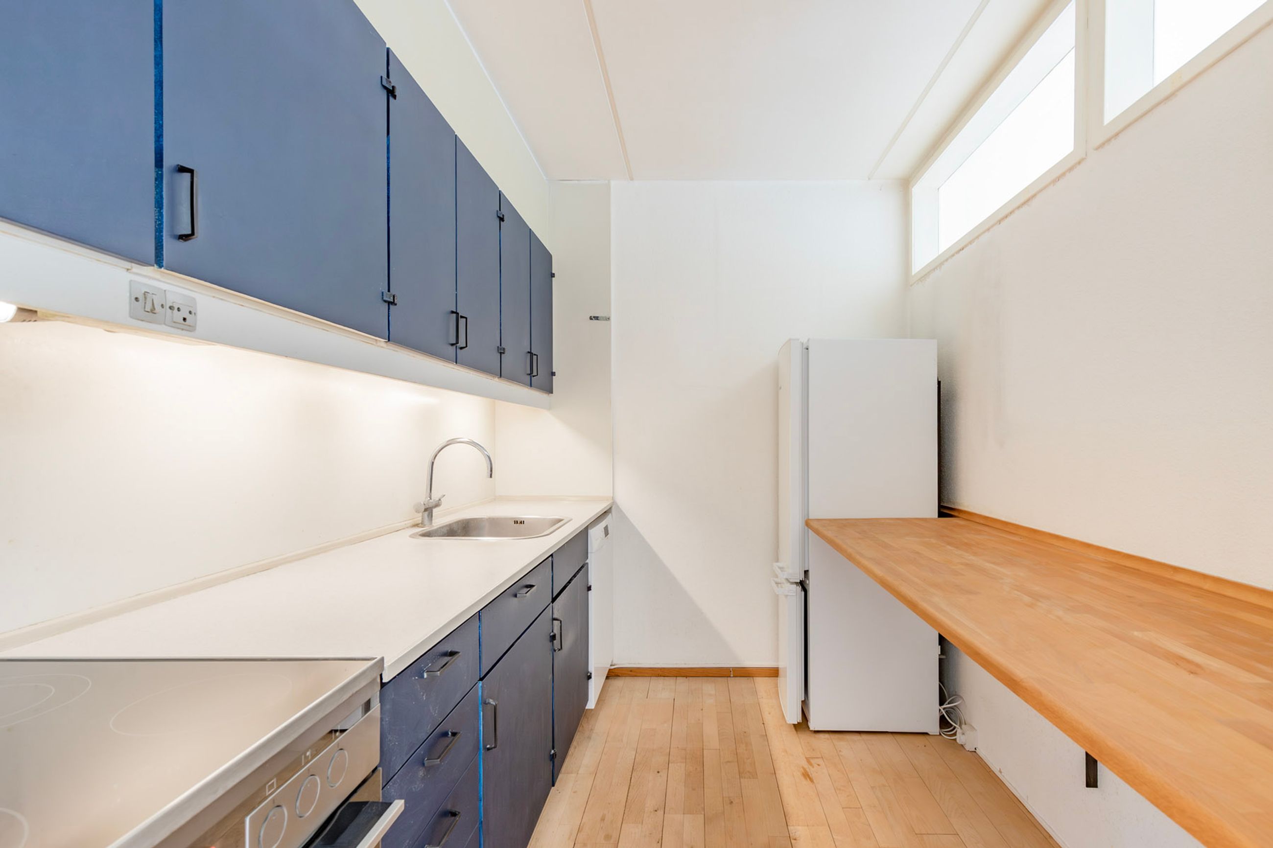 Lejligheden er indrettet med en dejlig lys og rummelig stue. Der er gulv-til-loft vinduesparti mod syd og skydedør ud til den kæmpestore terrasse. Her kan solen og udsigten til skov nydes fra morgen til aften. Køkkenet er originalt med god skabs- og bordplads, badeværelset er ligeledes originalt med badekar. Herudover et lyst værelse mod syd samt et garderoberum.