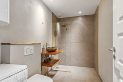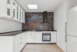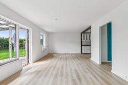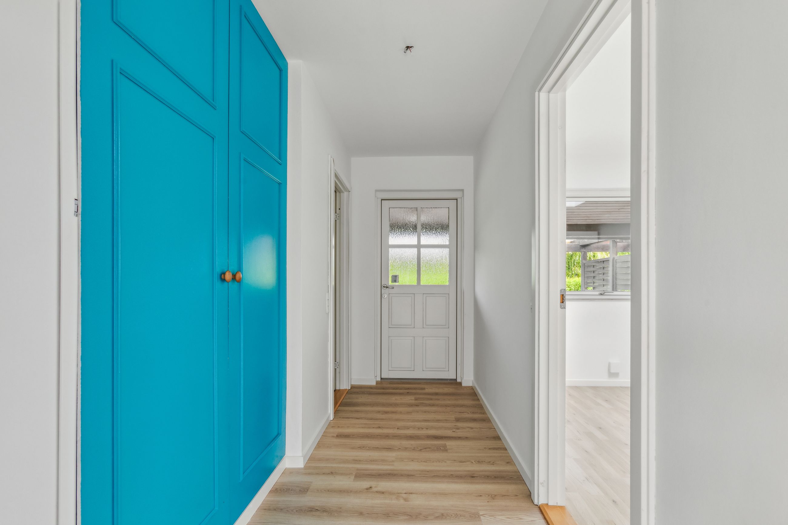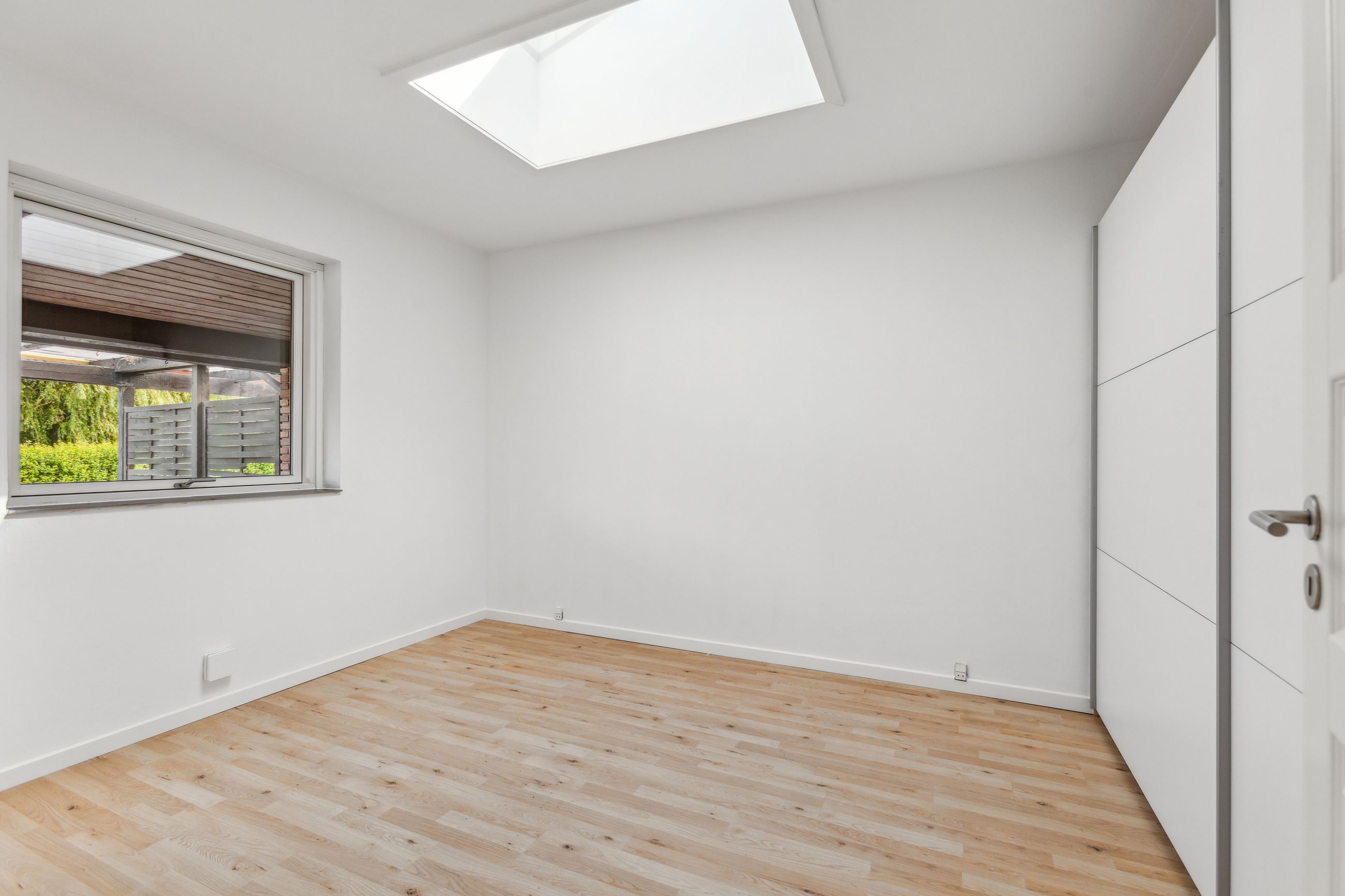 Huset indeholder: Aflang entre med rigtig god garderobeplads og trægulv. Stilrent badeværelse med bruseniche og klinker. Lyst og indbydende soveværelse med ovenlysvindue, trægulv og god skabsplads. Kæmpe stue med udsigt til haven gennem sin glas facade og direkte adgang til terrassen og haven. Rummeligt Ikea køkken med både klinkevæg og ovenlysvindue.