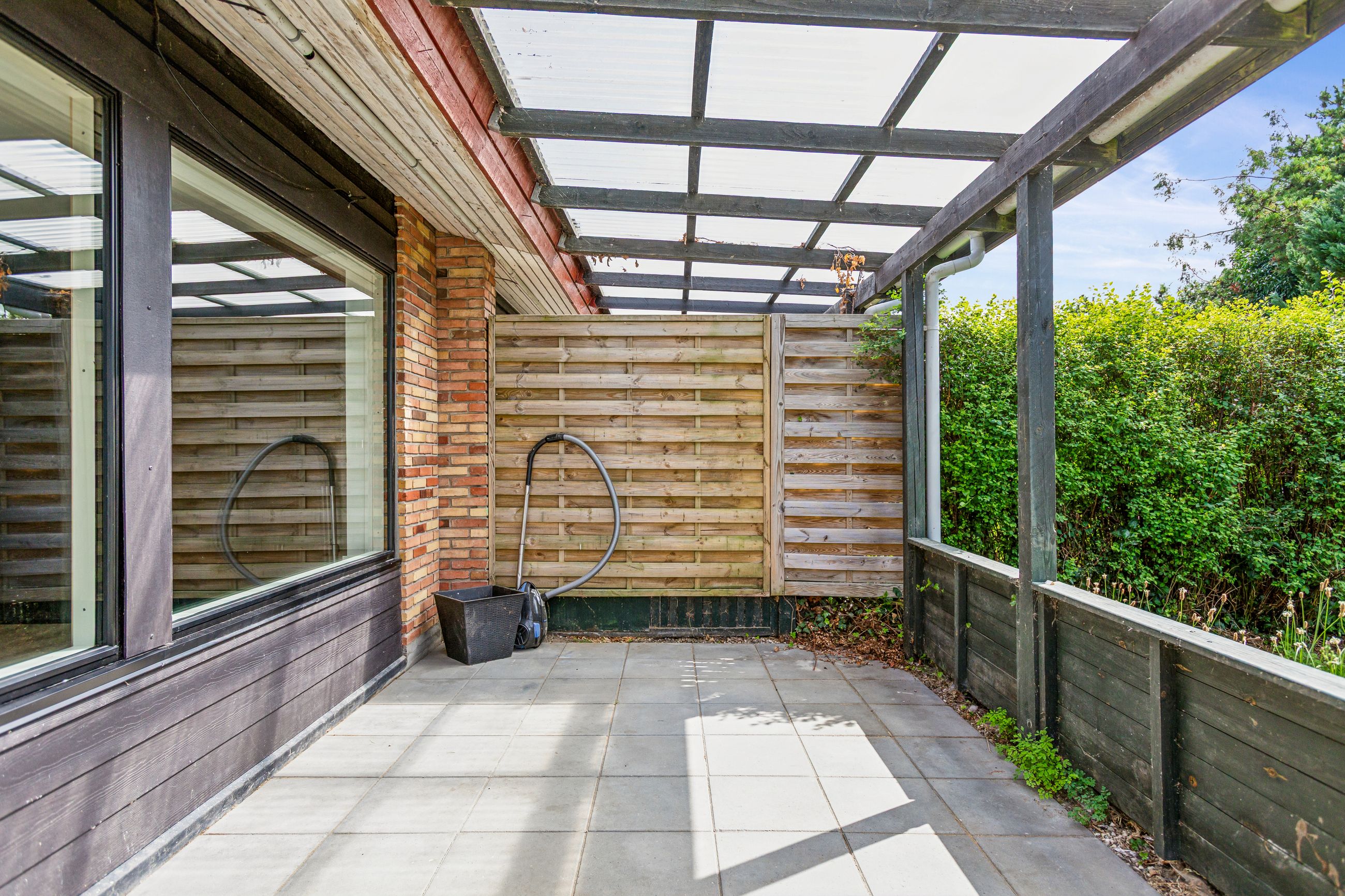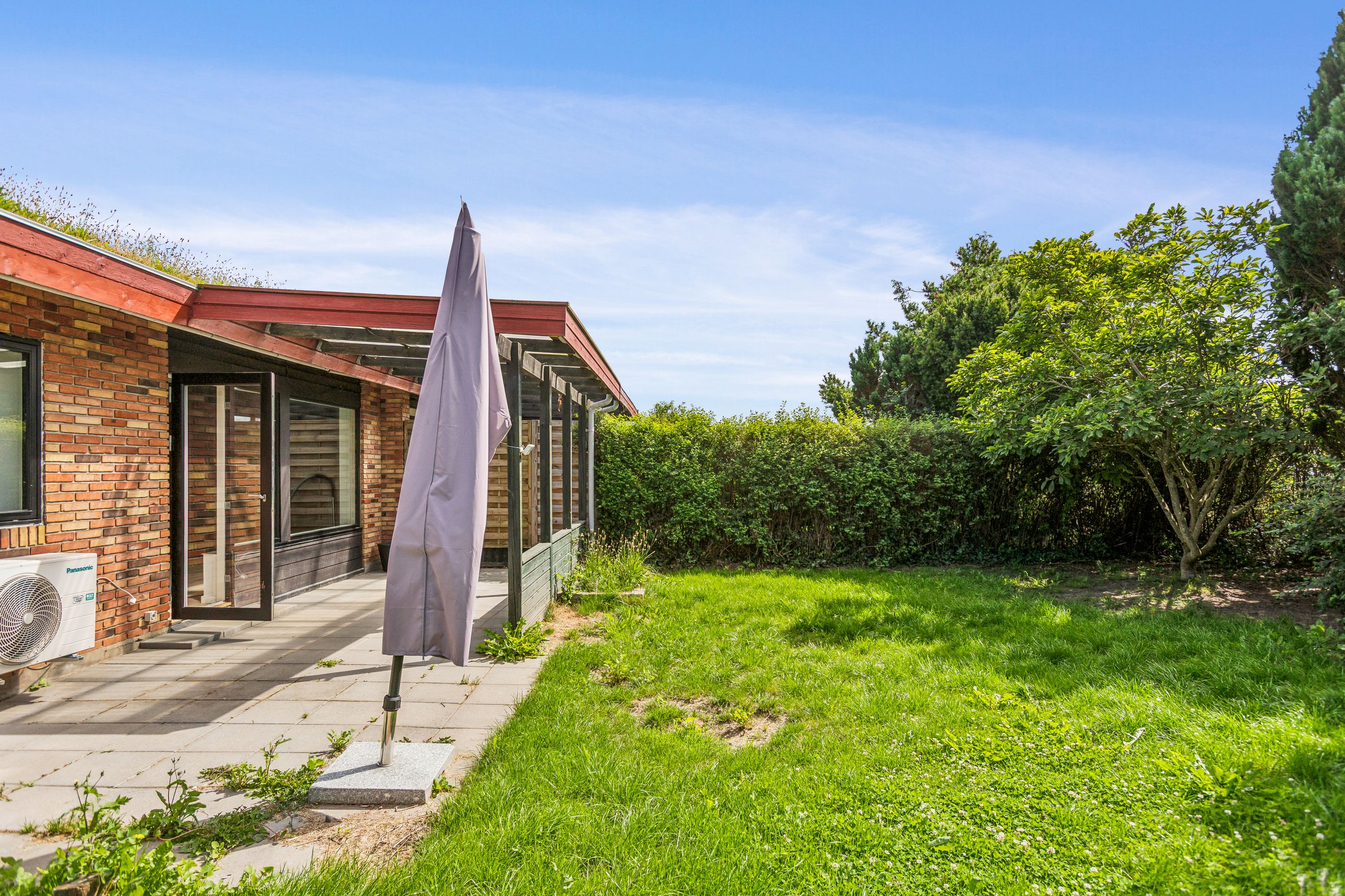 Et robust og velholdt ende rækkehus med 72 meget anvendelige kvadratmeter. En overskuelig grund på 383 m2 som giver adgang til en frodig have, der kredser sig rundt om halvdelen af boligen, som både byder på buske og træer, samt dens dejligt tilgroede hæk, hvis funktion gør at man bibeholder sit privatliv. Til de varmere dage stiller ejendommen en meget indbydende terrasse til rådighed, som er delvist overdækket, hvis nu regnen skulle falde. Lækkert redskabskur.