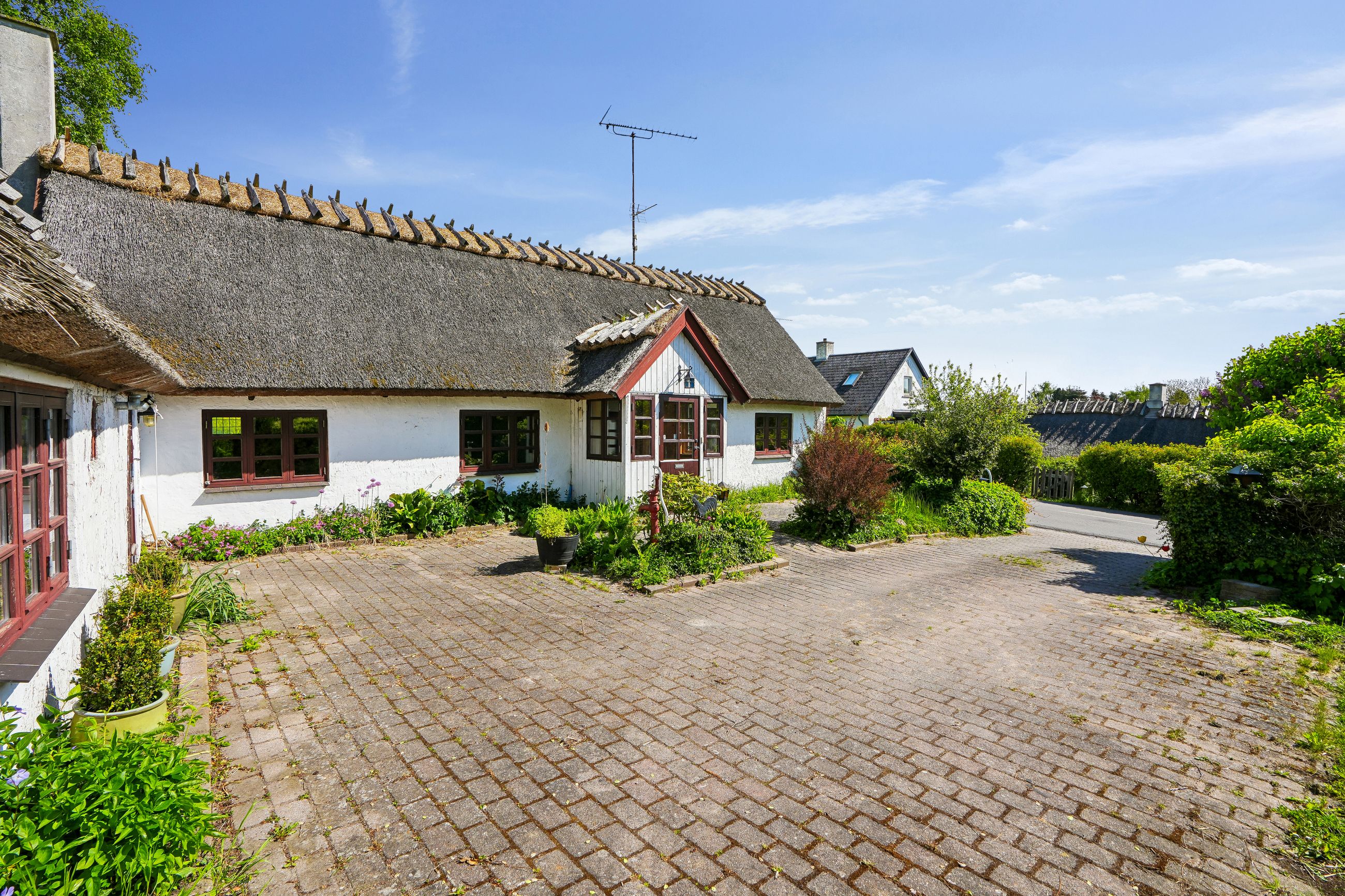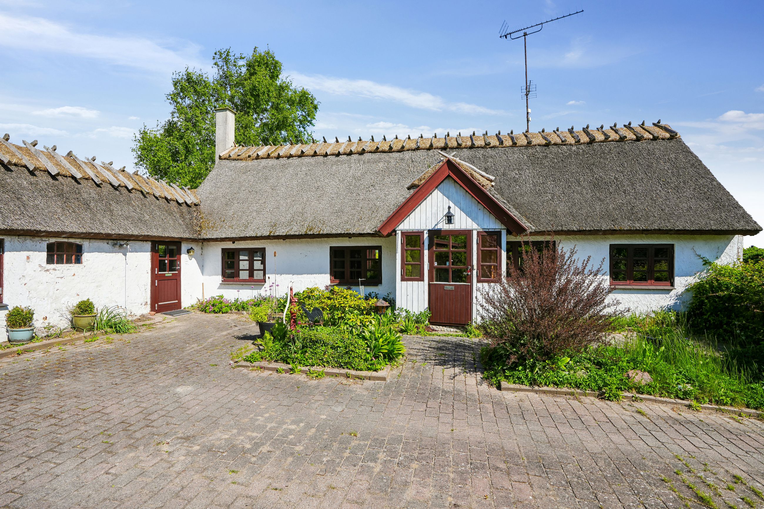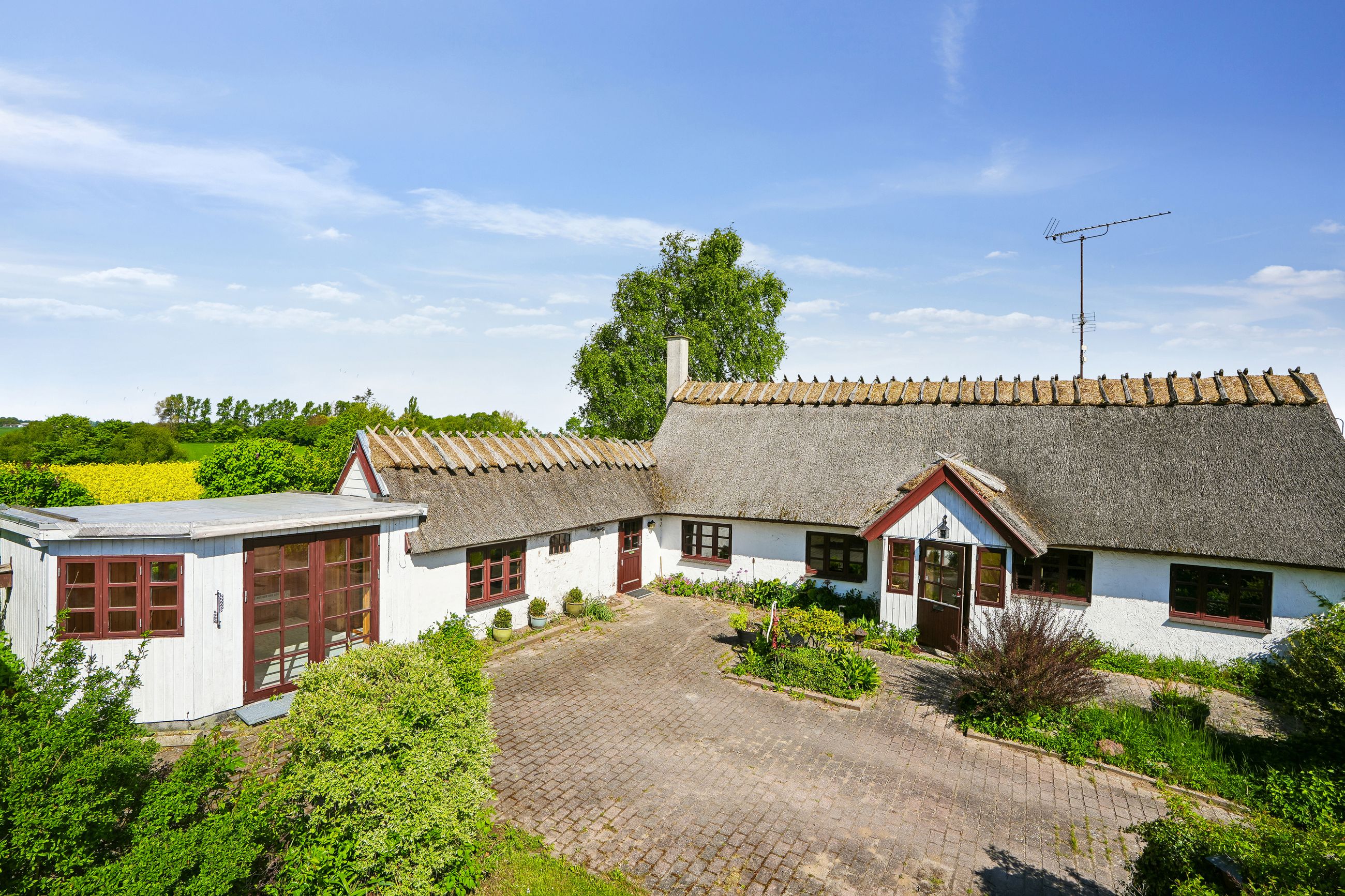 Hyggelig landhus fra 1827 med sprossede vinduer, hvidmalede facader og stråtag (fra ca. 2015). Beliggende på stor veltilplantet grund med mange træer, buske og blomster. Foran huset findes en fin gårdsplads/terrasse og bag ved huset ligger der åbne marker på to af husets sider. Desuden findes en stor garage, havestue og udhus.