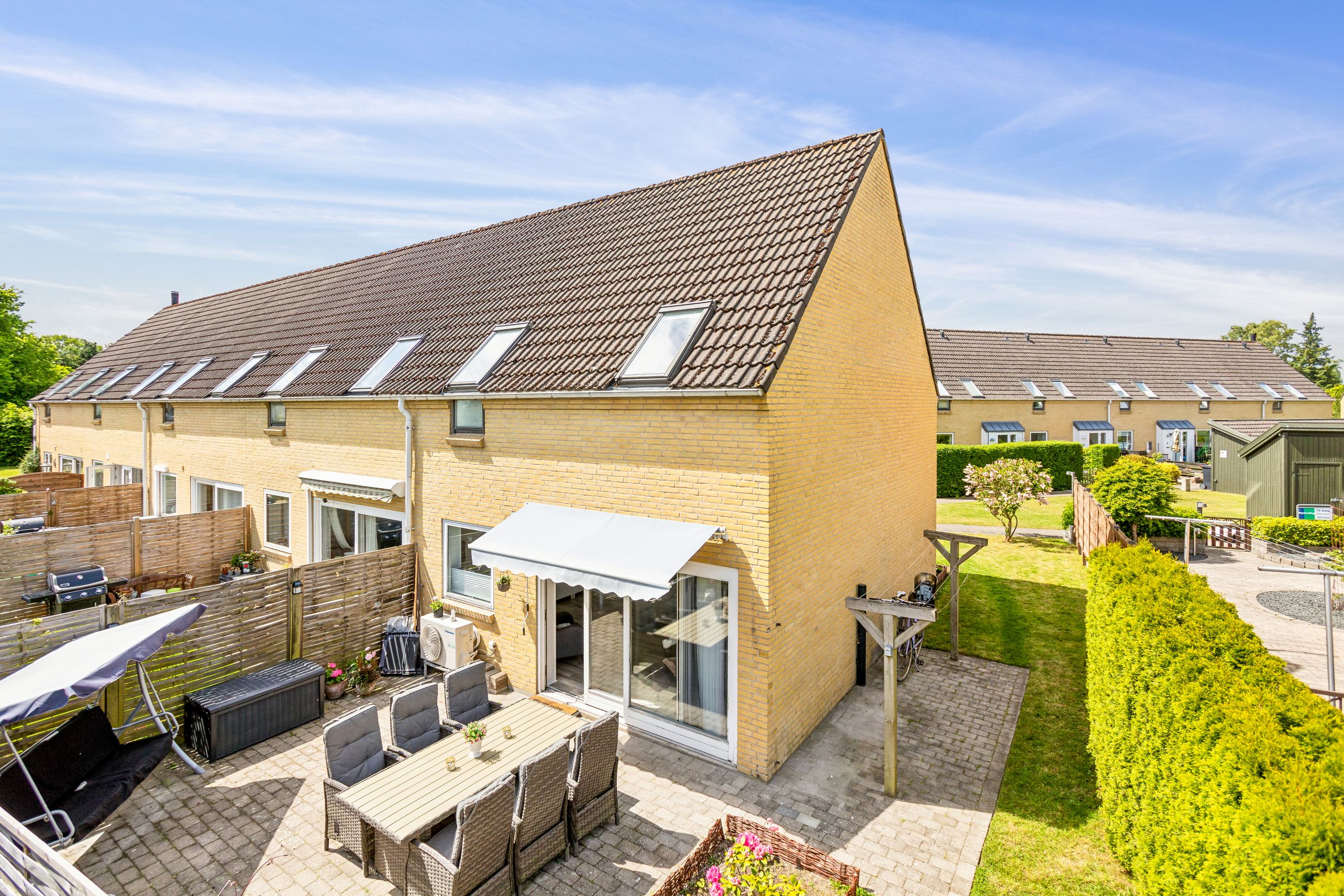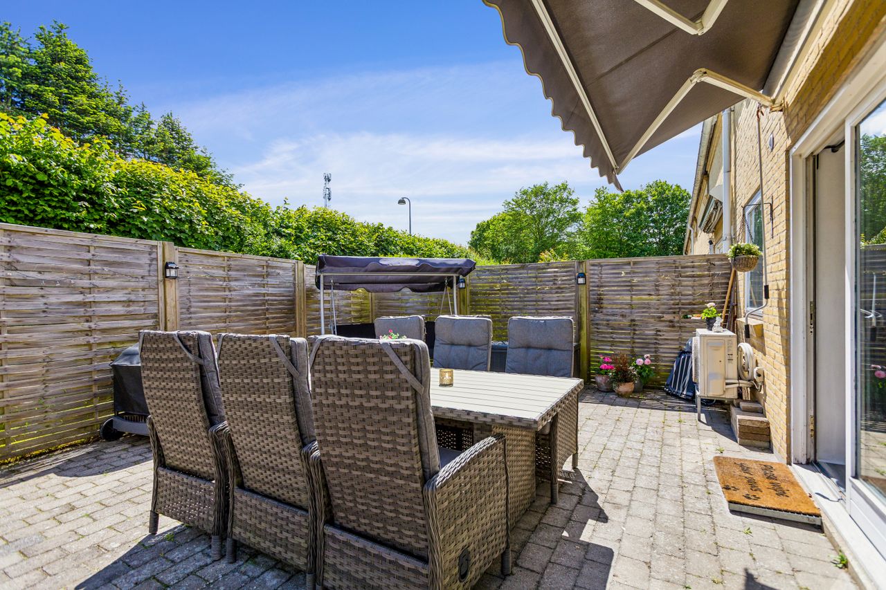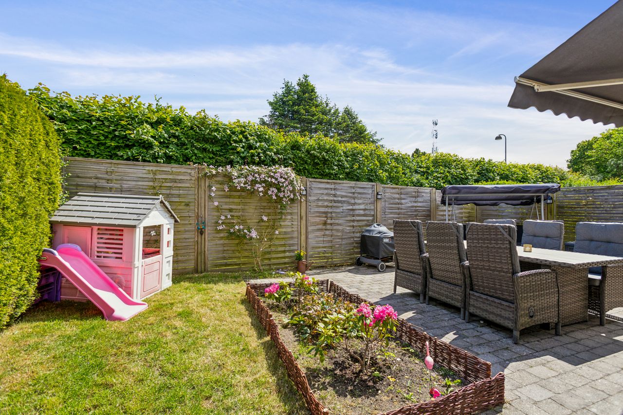 Vedligeholdt og gennemført ende rækkehus i 1½ plan som bare er totalt indflytningsklart. Tredimensionel flisebelagt terrasse med markise indbyder til megen hygge, samt et overskuelig græsareal med fint plantebed.