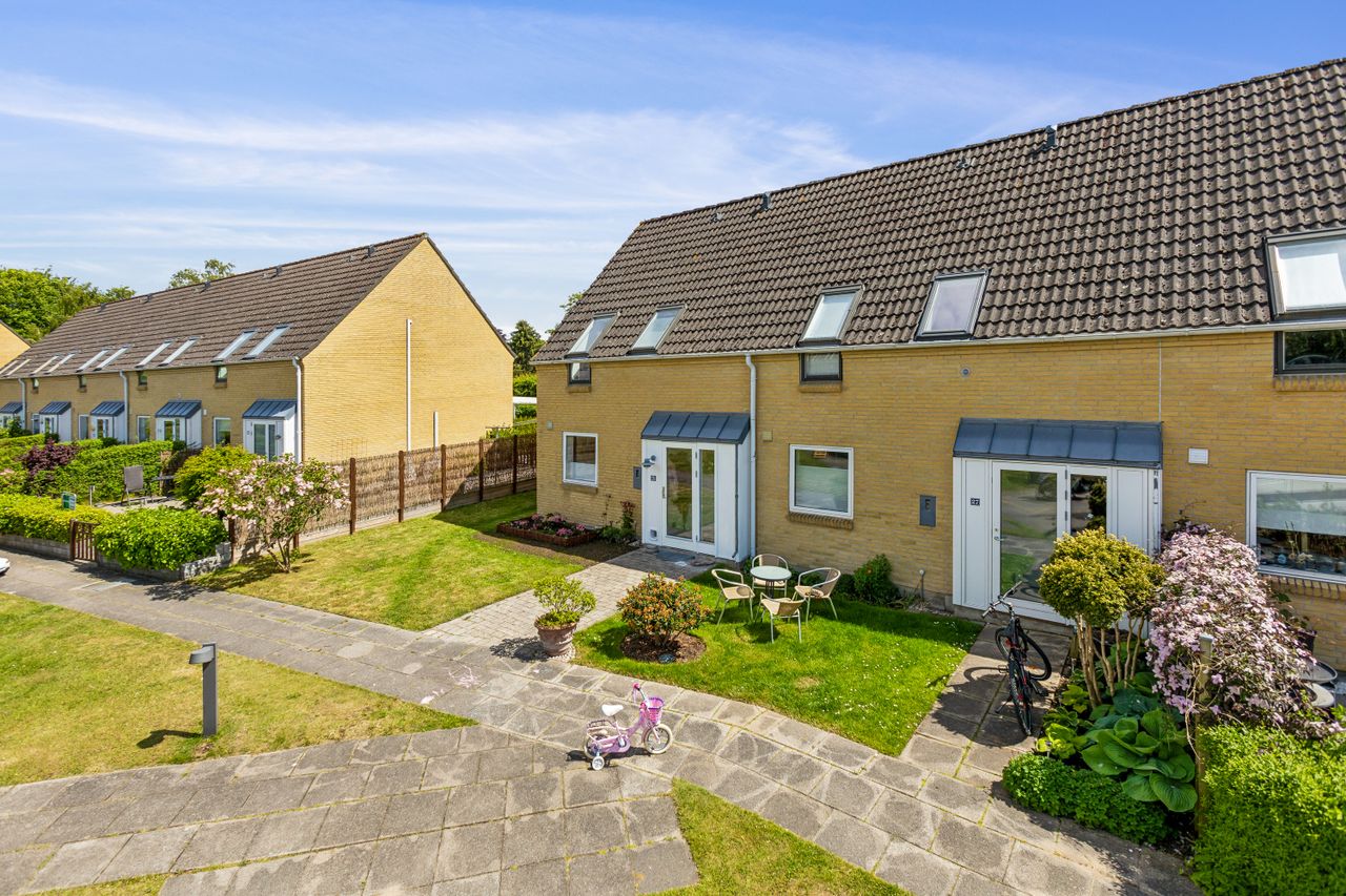 Beliggende i et helt fortryllende rækkehusmiljø i Dronningmølle finder man meget mere end bare et hus. Her køber man sig ind i en tilværelse hvor man kommer hinanden ved, men stadigvæk har sit lille palads at trække sig tilbage i, når man ønsker lidt privatliv.