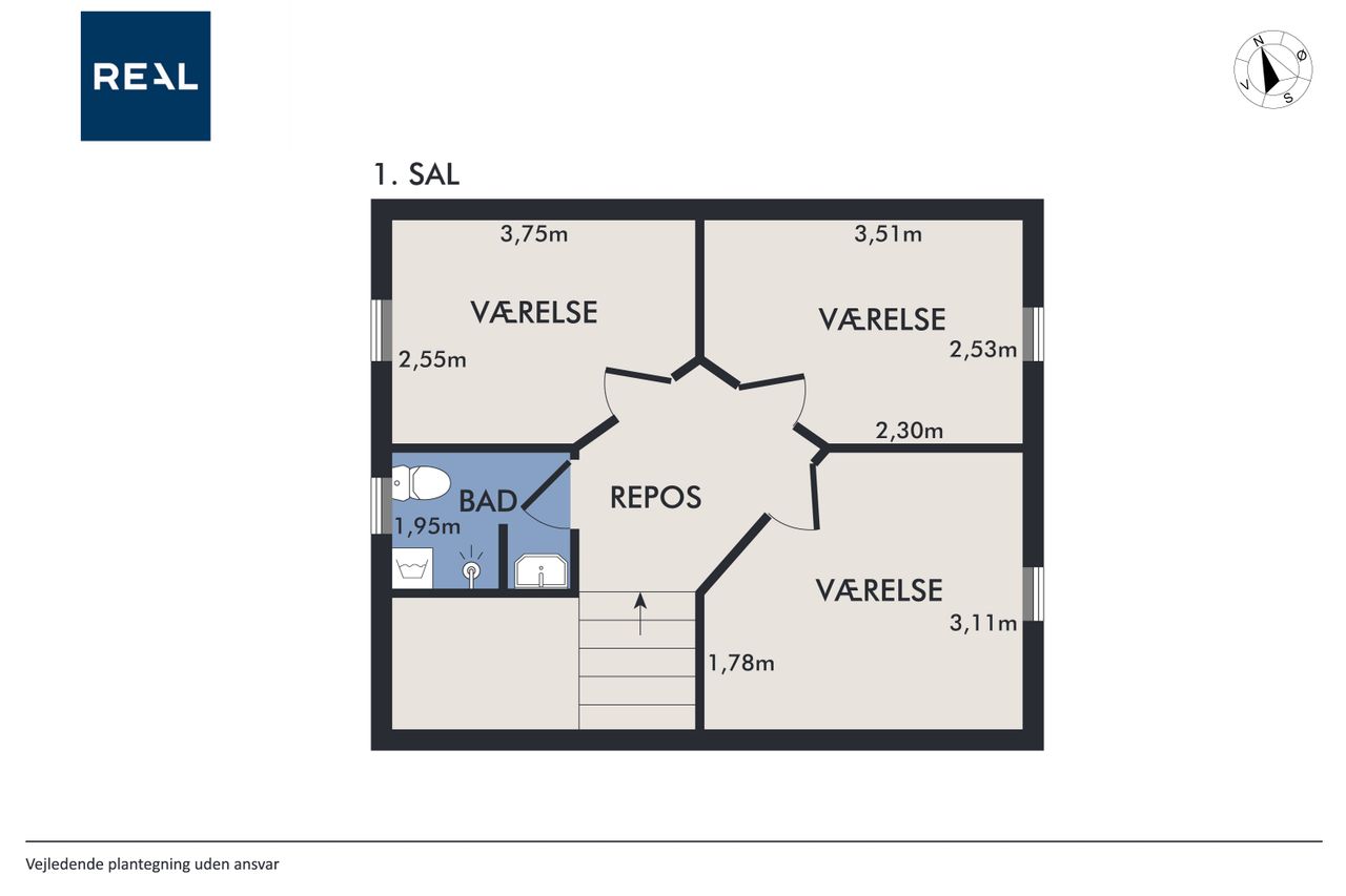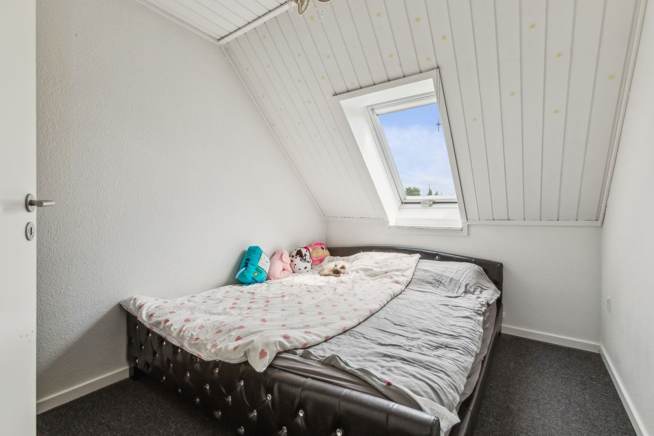 Huset indeholder: Overskuelig entre med garderobe plads. Stort og appetitvækkende køkken/alrum med et flot HTH køkken med masser af skabsplads. Aflang opholdsstue med både glas facade og direkte adgang til terrassen. 1. sal med 3 indbydende soveværelser, alle 3 med Velux tagvinduer. Fint badeværelse med bruseniche og også med Velux tagvindue. Lille loftsrum