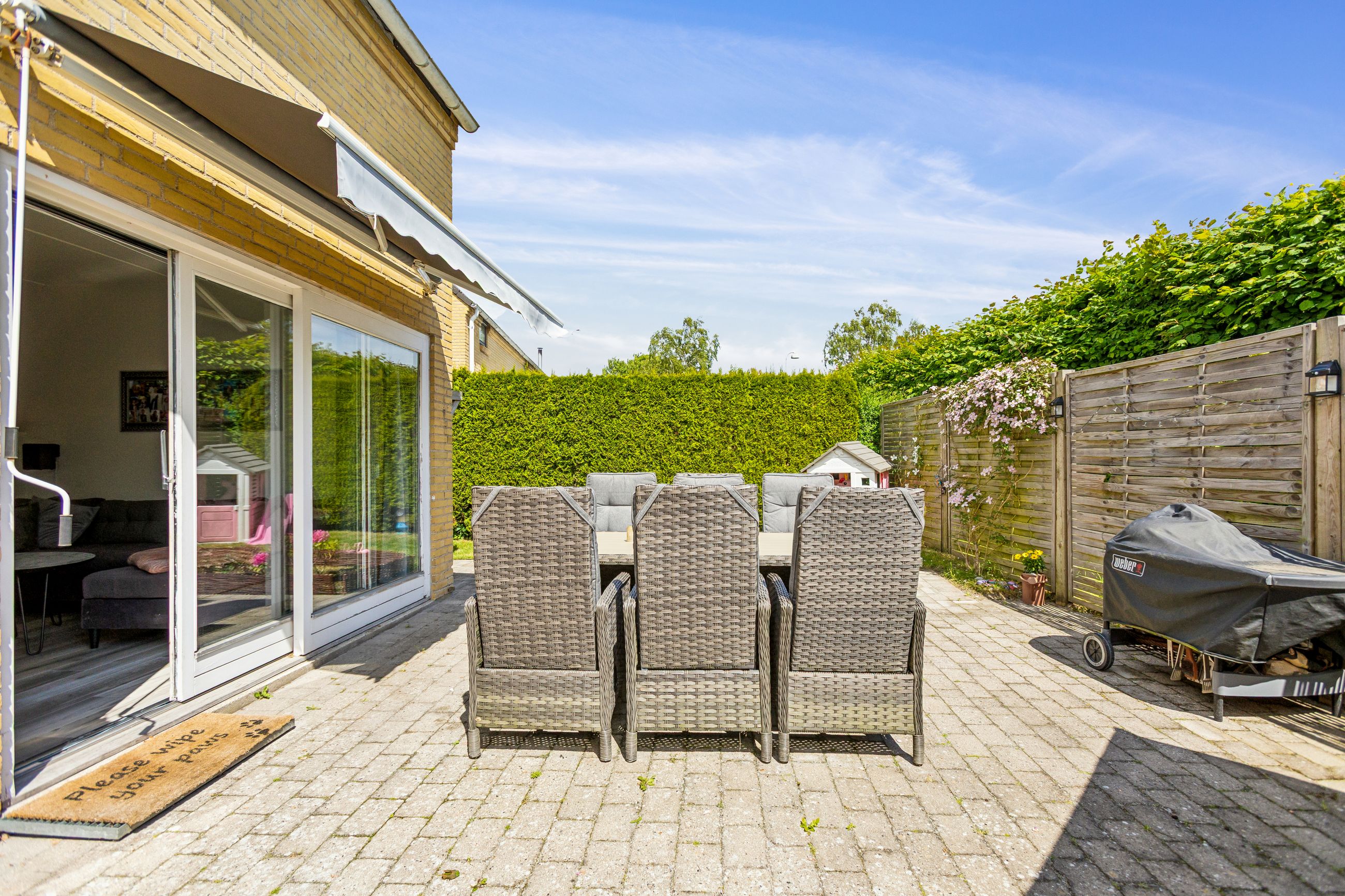 Udendørs tørrestativ og cykel p-plads findes på siden af ejendommen