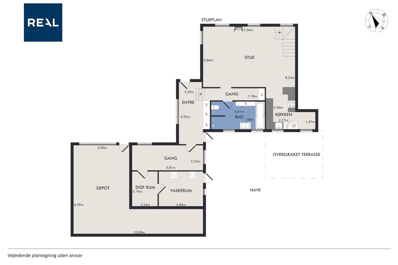 Huset indeholder: Aflang entre med god garderobe plads og klinkegulv med gulvvarme. Mellemgang med skab samt nedgang til høj krybekælder (vinkælder). Stort badeværelse med både badekar, muret bruseniche og klinkegulv med gulvvarme. Skøn opholdstue med god spiseplads og gulvvarme. Åbent og gennemført køkken med vinduer direkte ud til terrassen, samt gulvvarme. 2 rum som kan benyttes som teenage afdeling begge med gulvvarme, samt rummeligt vaskerum/fyrrum.