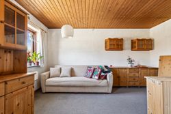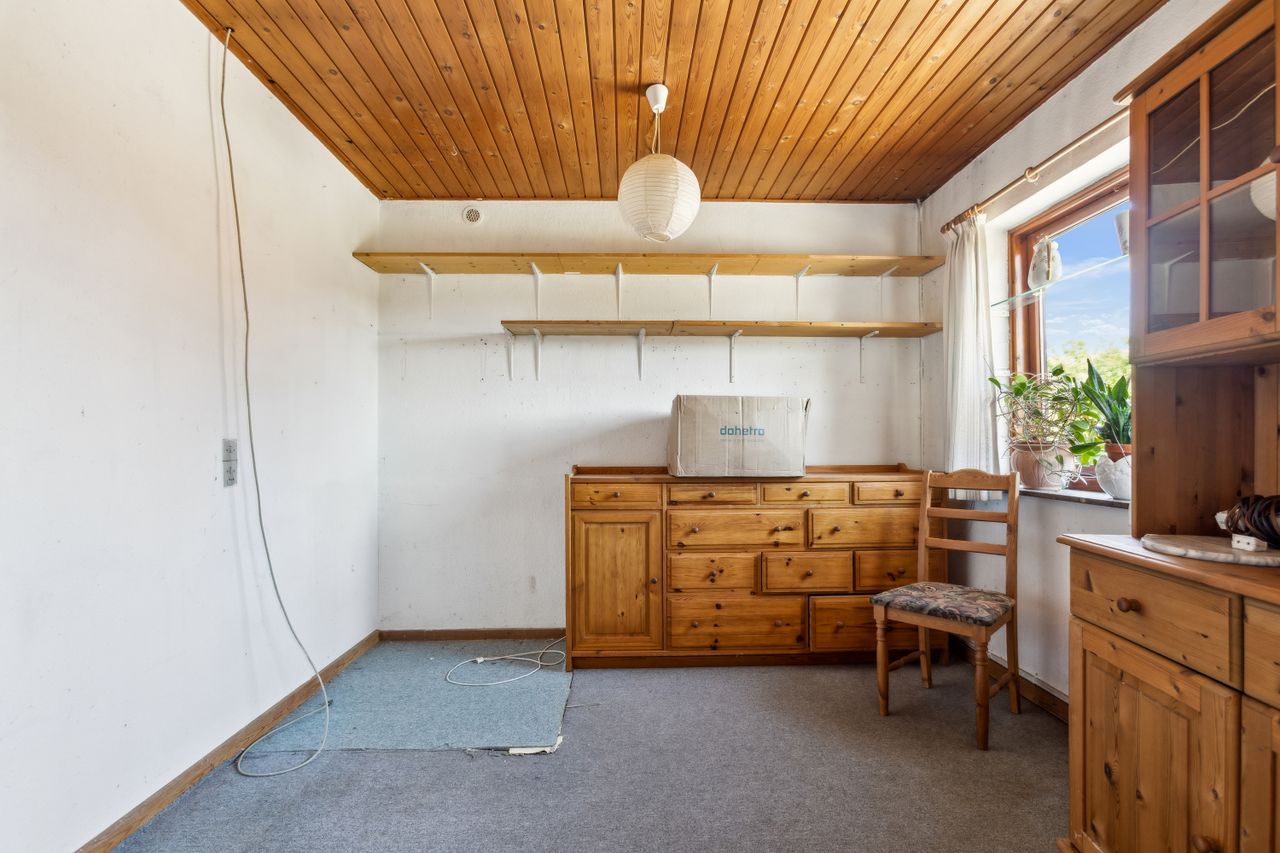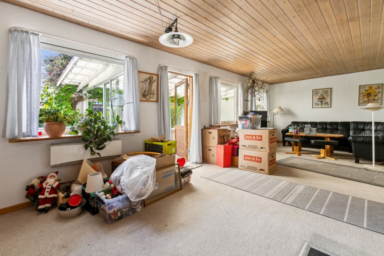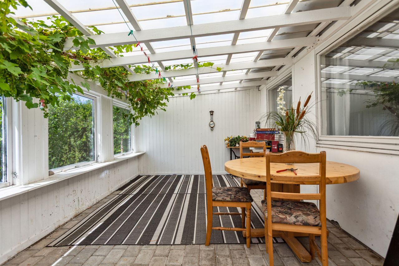 Huset indeholder: Entre med garderobeplads. Bryggeres med egen indgang. Pænt køkken med spiseplads. Stilrent flisebadeværelse med muret bruseniche. 2 gode værelser, hvor det ene oprindeligt var 2. Stor stue med mange muligheder og med direkte adgang til overdækket terrasse.