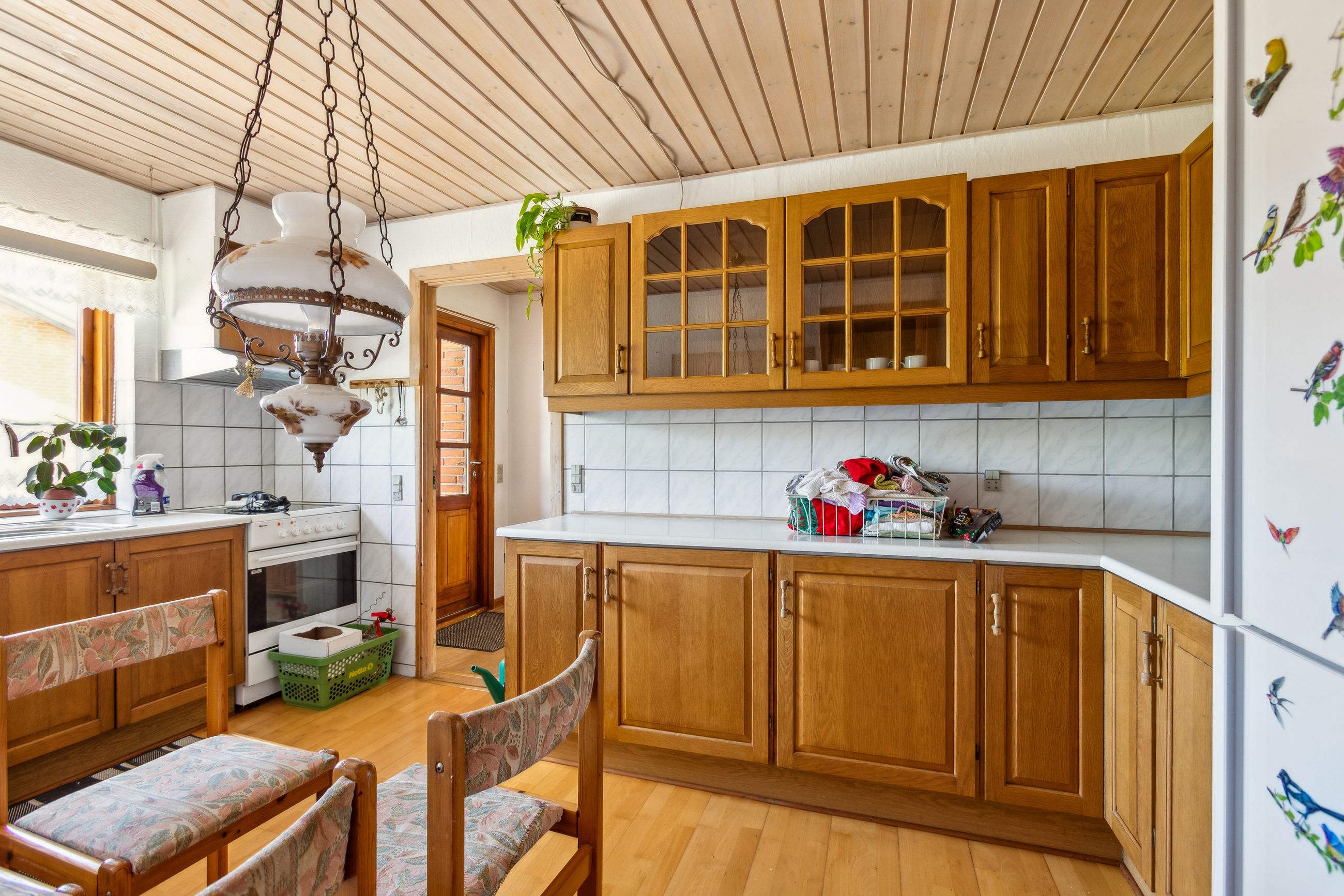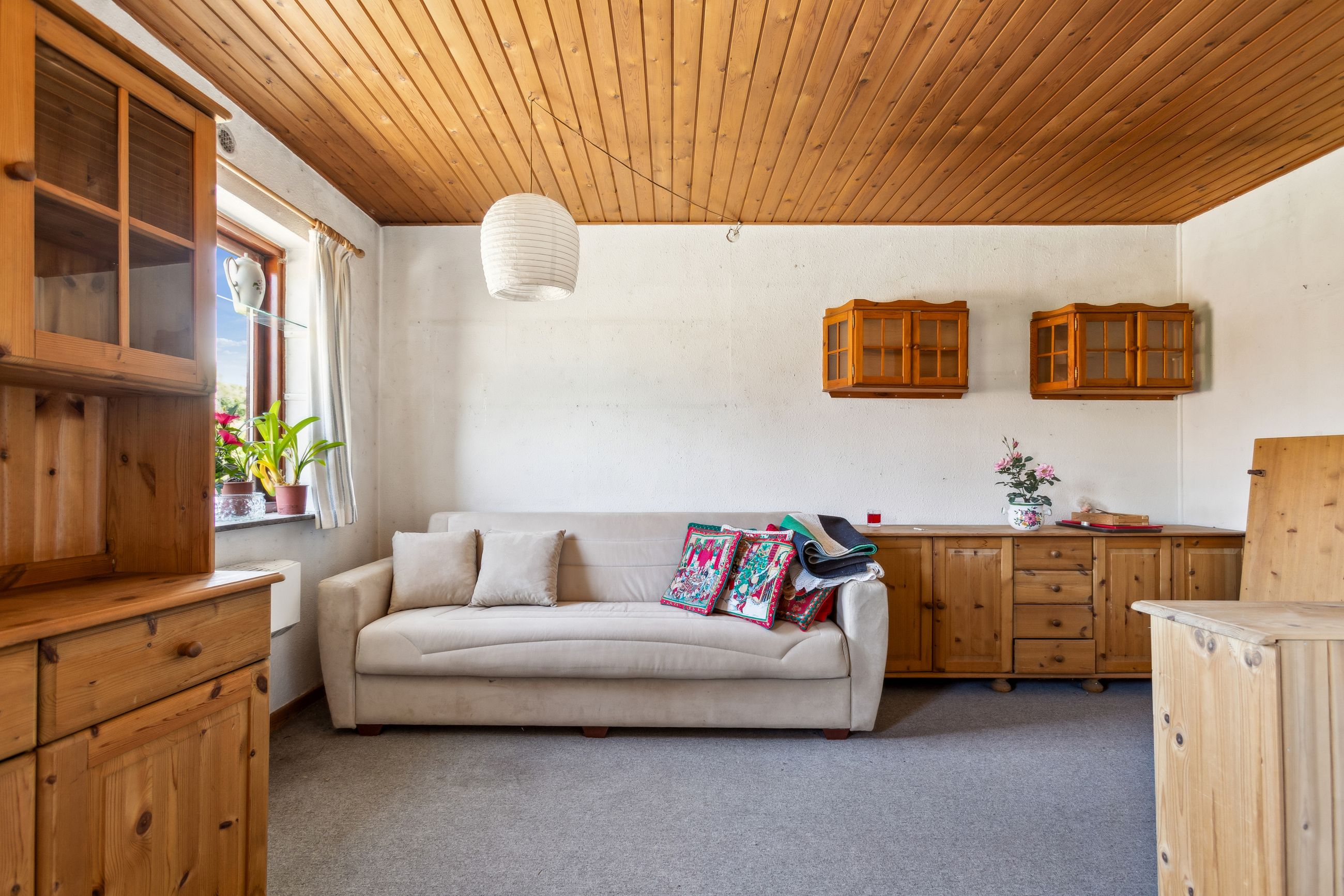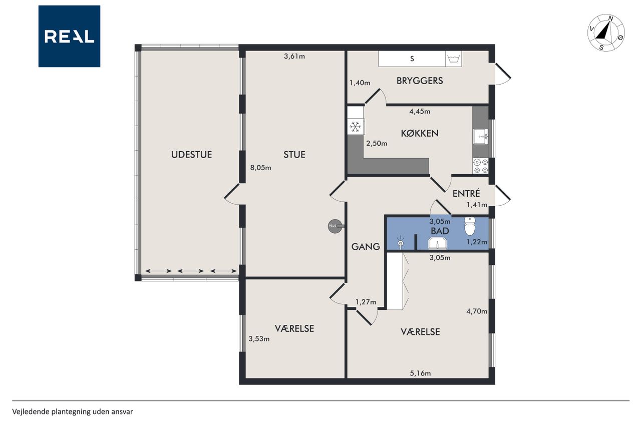 Huset indeholder: Entre med garderobeplads. Bryggeres med egen indgang. Pænt køkken med spiseplads. Stilrent flisebadeværelse med muret bruseniche. 2 gode værelser, hvor det ene oprindeligt var 2. Stor stue med mange muligheder og med direkte adgang til overdækket terrasse.