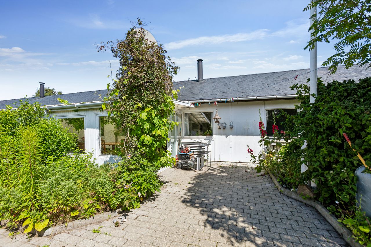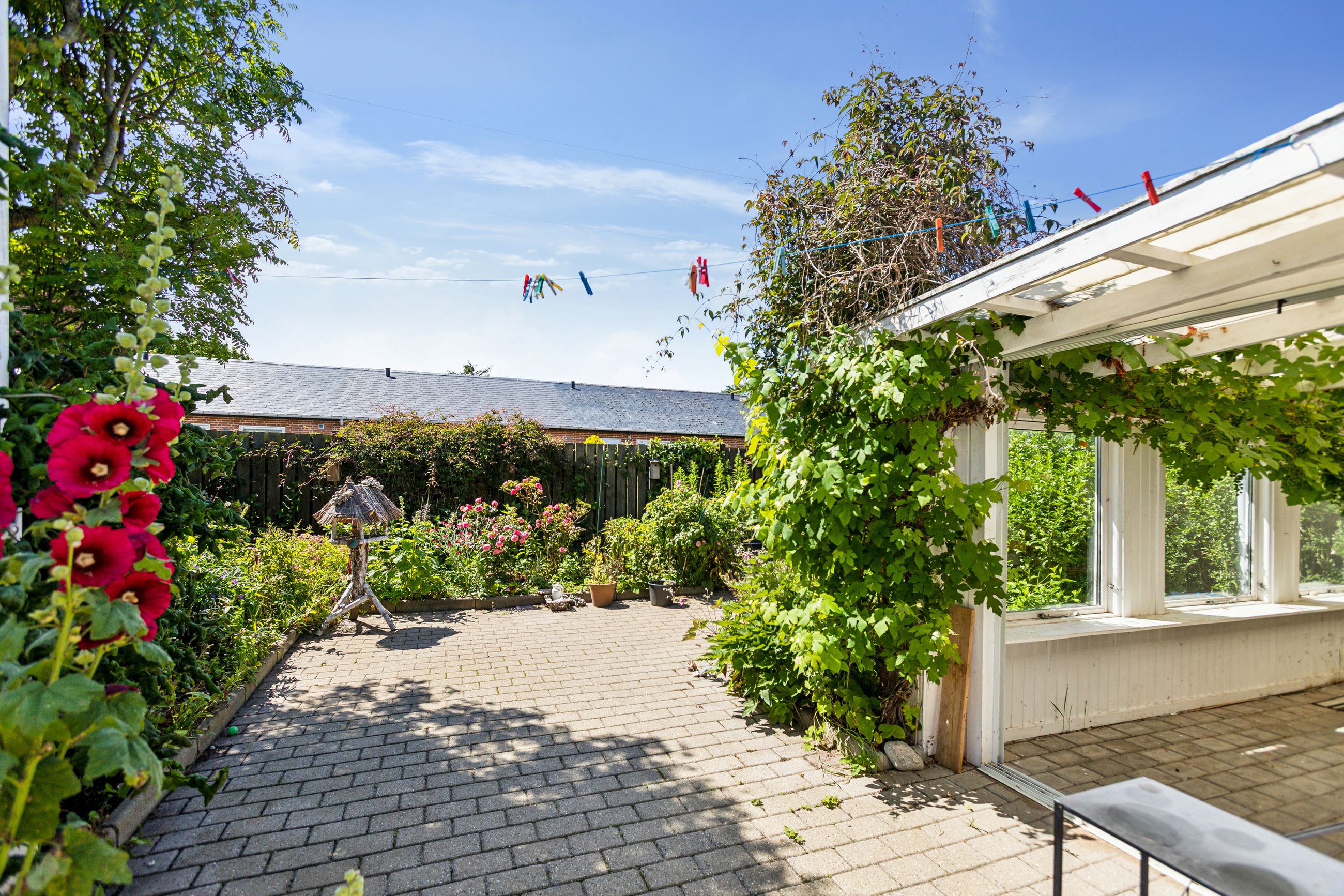 103 m2. rækkehus hvor man virkelig føler alt bliver udnyttet. En frodig have til med hyggeligt stisystem igennem og en bagindgang. Praktisk redskabsskur og overdækket terrasse. Rigtig gode parkerings forhold fordelt rundt med privat parkering.